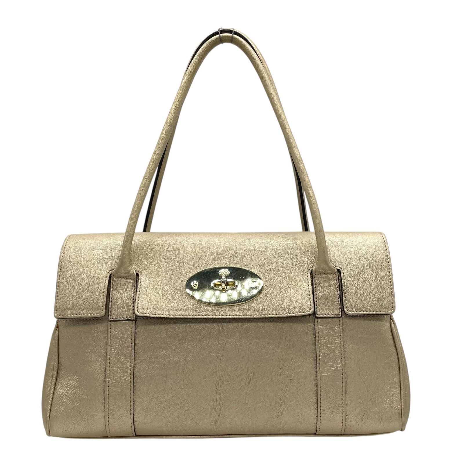 美品 マルベリー mulberry ベイズウォーター ハンドバッグ レザー 本革 ゴールドカラー ベージュ ゴールド金具 レディース フラップ ターンロック クラシック 通勤 通学 K12