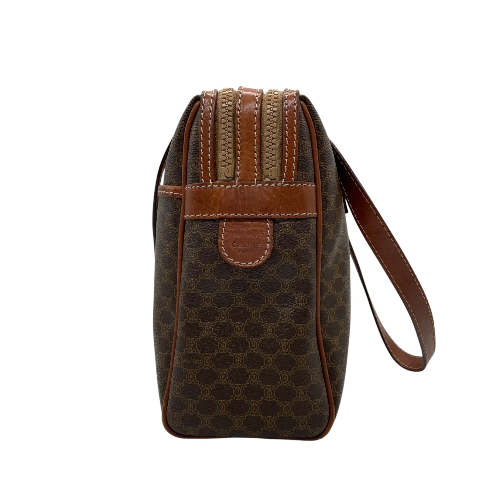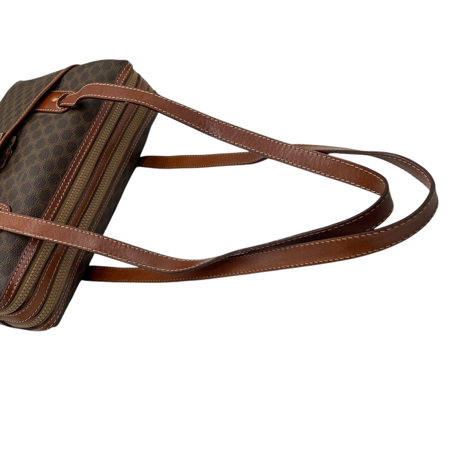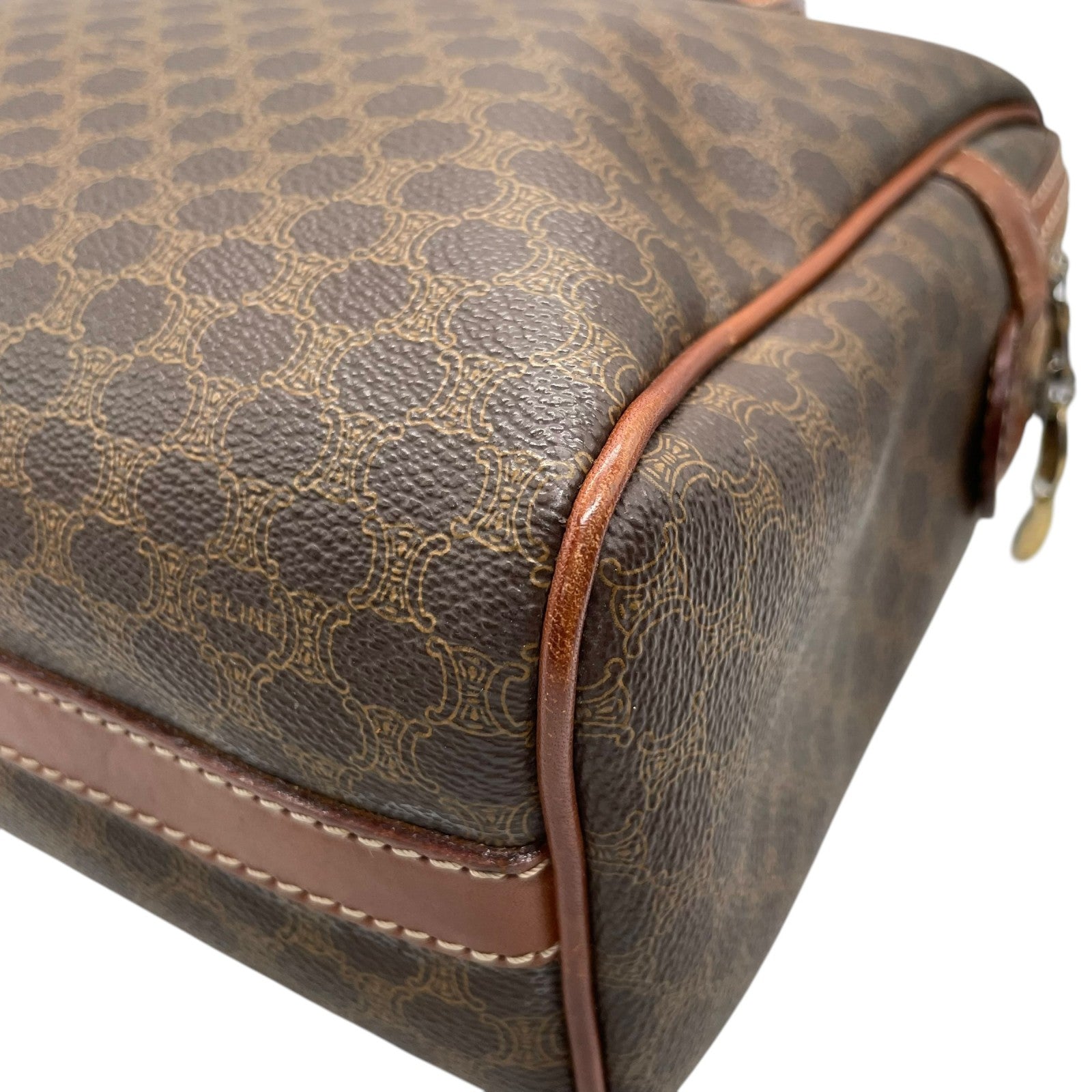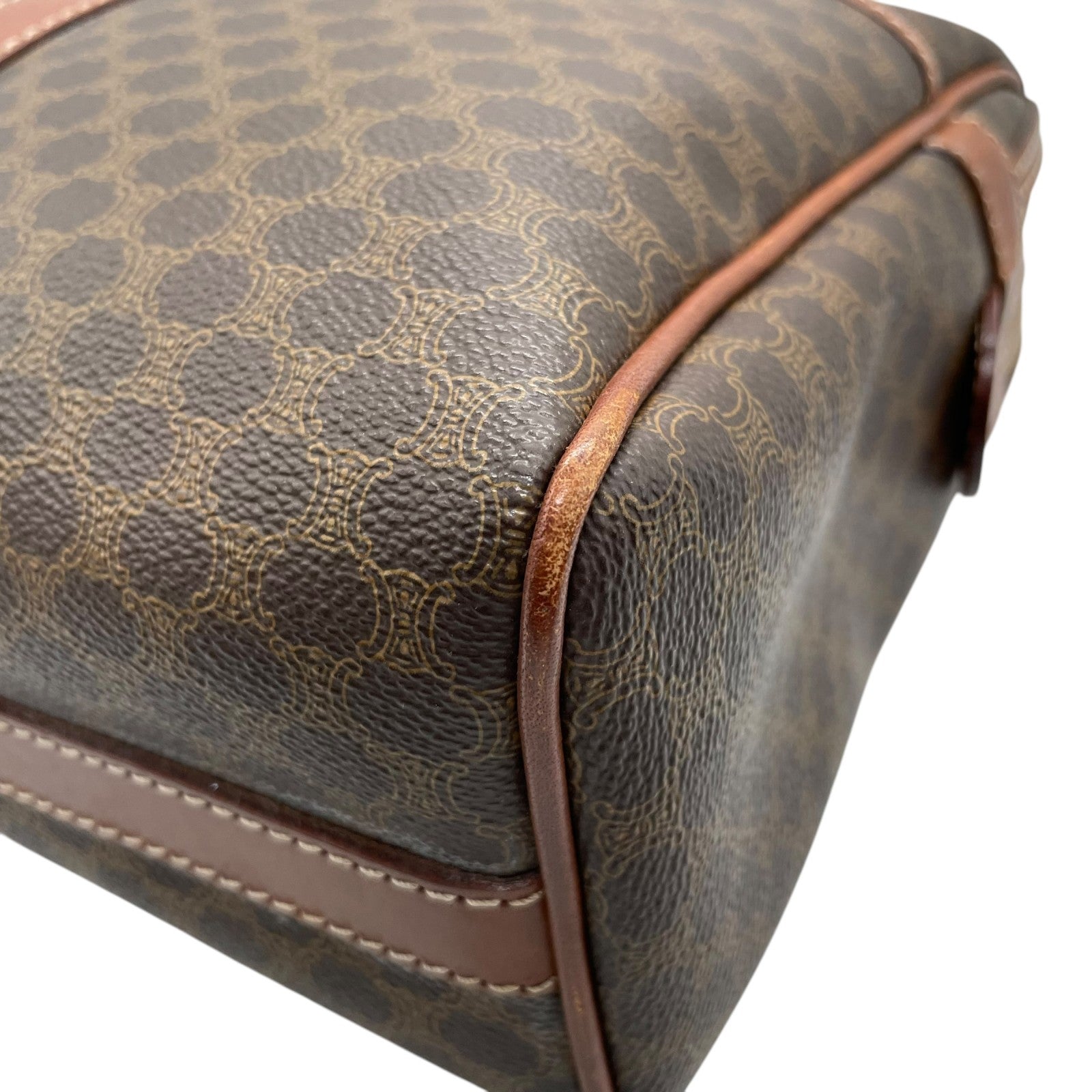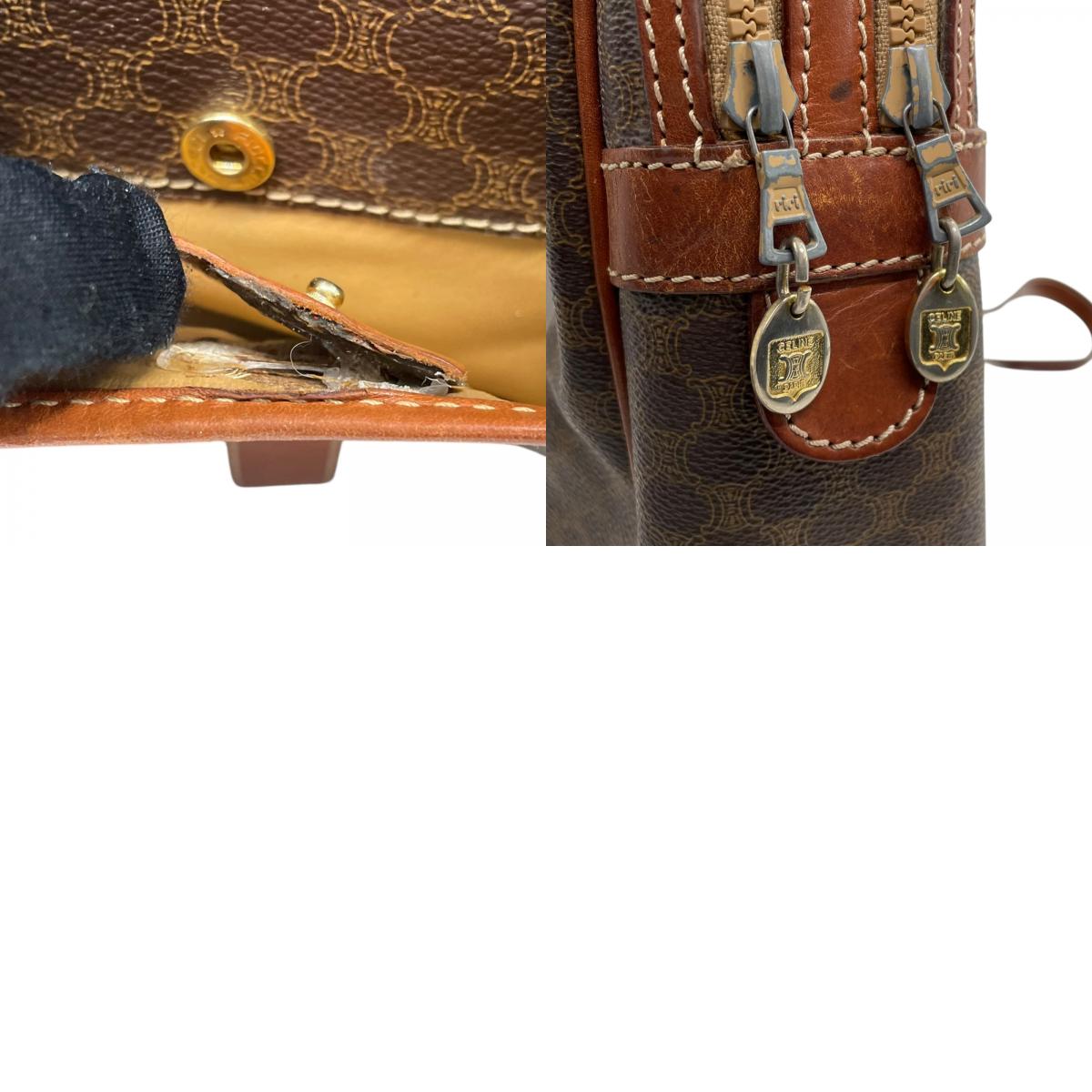 CELINE セリーヌ オールドセリーヌ マカダム柄 ハンドバッグ ショルダーバッグ ワンショルダー 肩掛け PVC レザー 本革 ブラウン 茶色 ゴールド金具 ファスナー開閉 ヴィンテージ K12