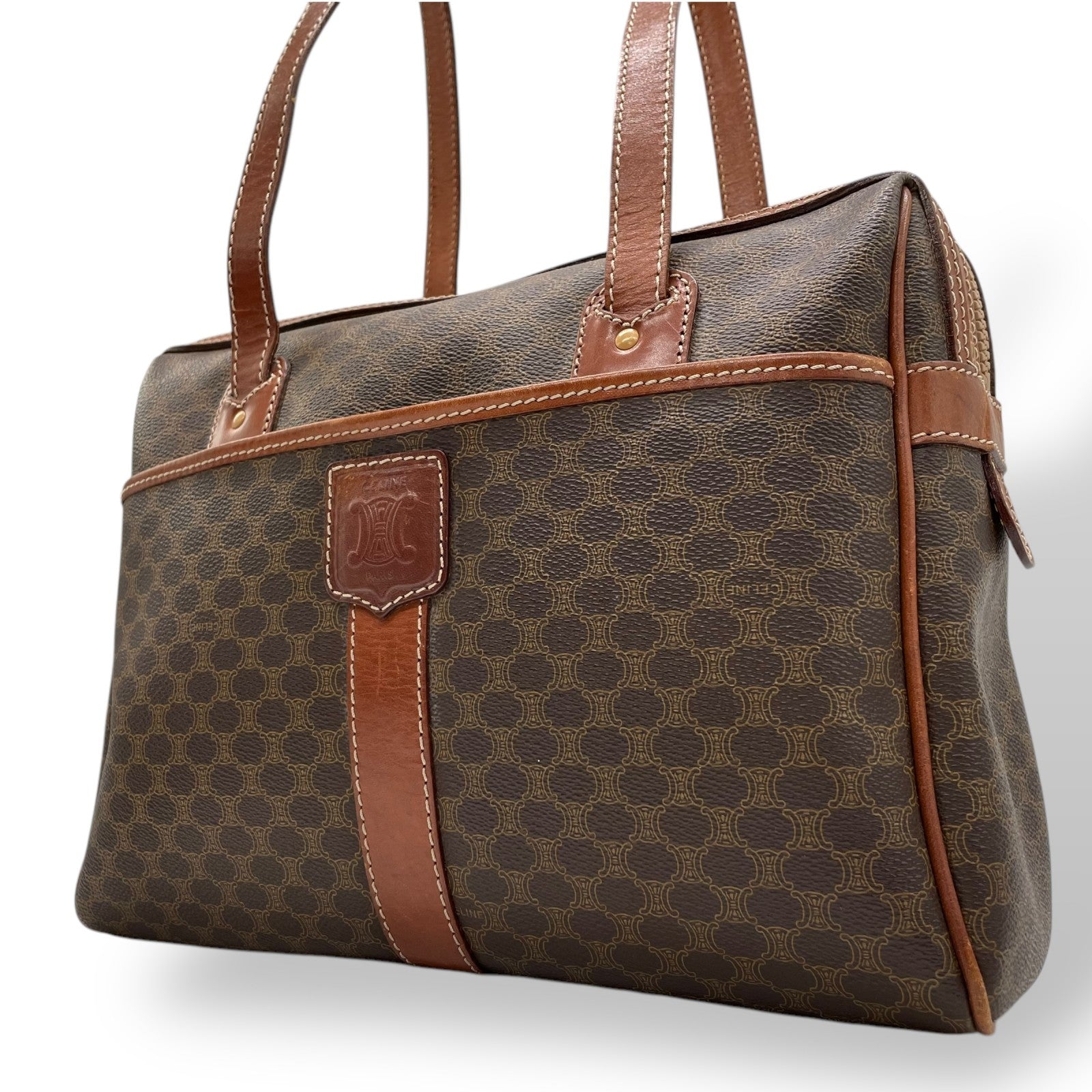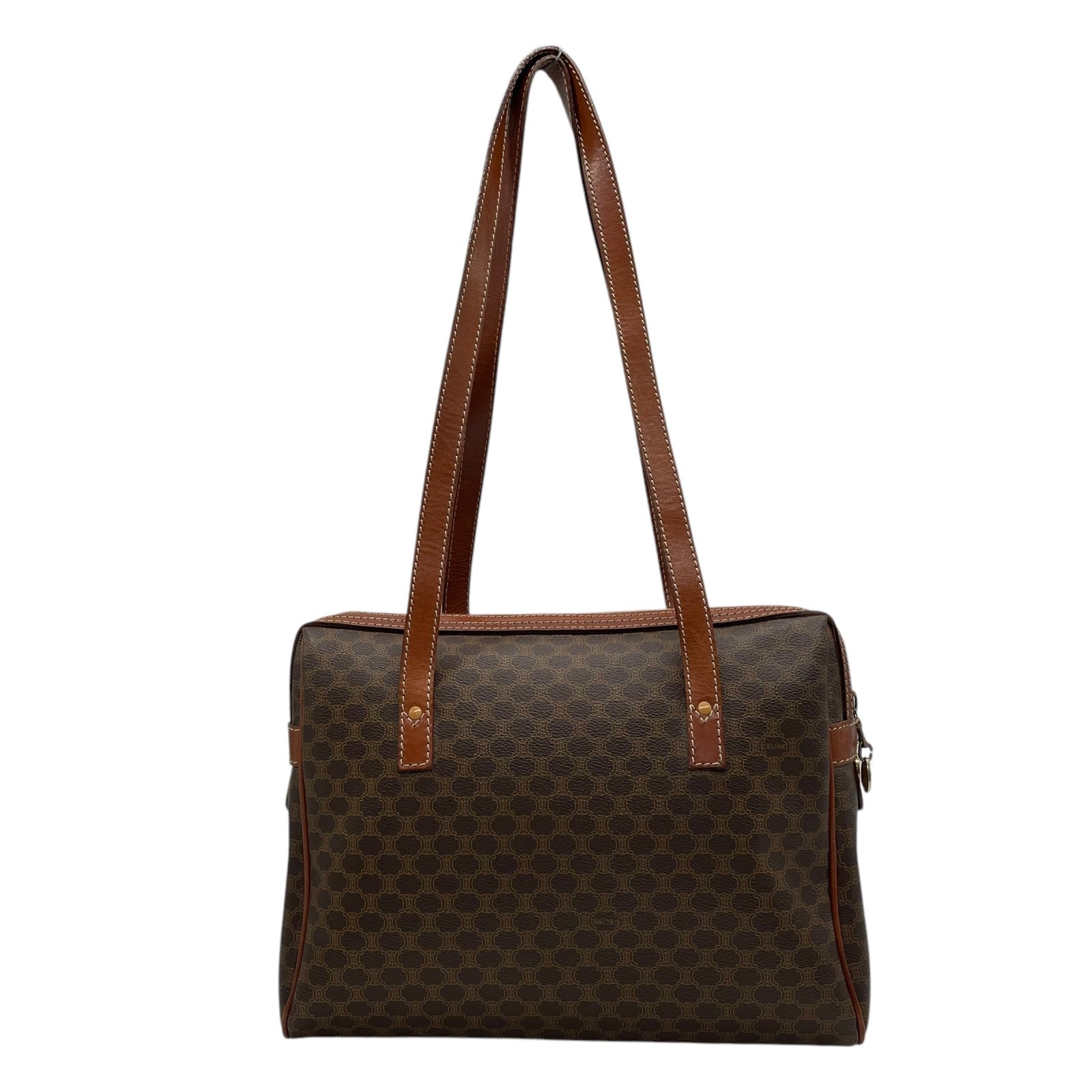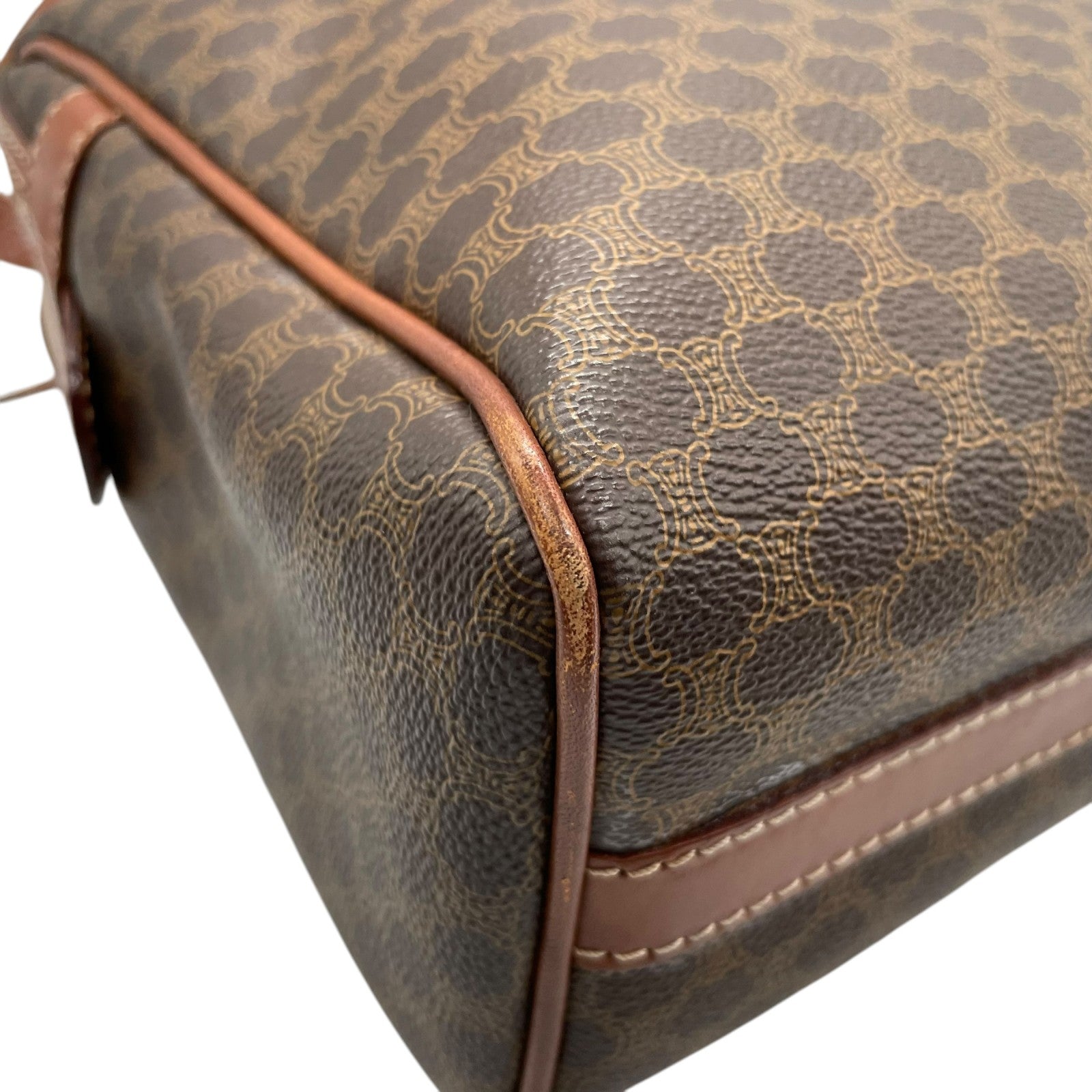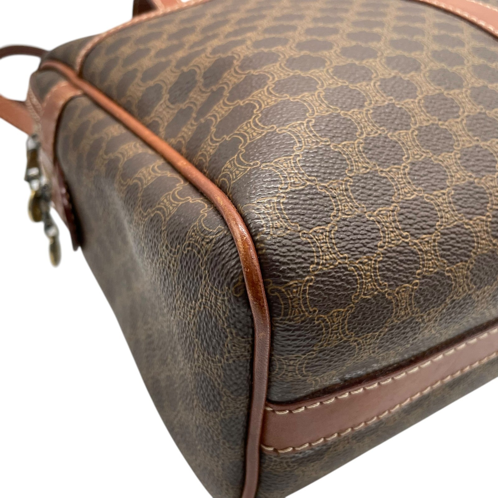 CELINE セリーヌ オールドセリーヌ マカダム柄 ハンドバッグ ショルダーバッグ ワンショルダー 肩掛け PVC レザー 本革 ブラウン 茶色 ゴールド金具 ファスナー開閉 ヴィンテージ K12