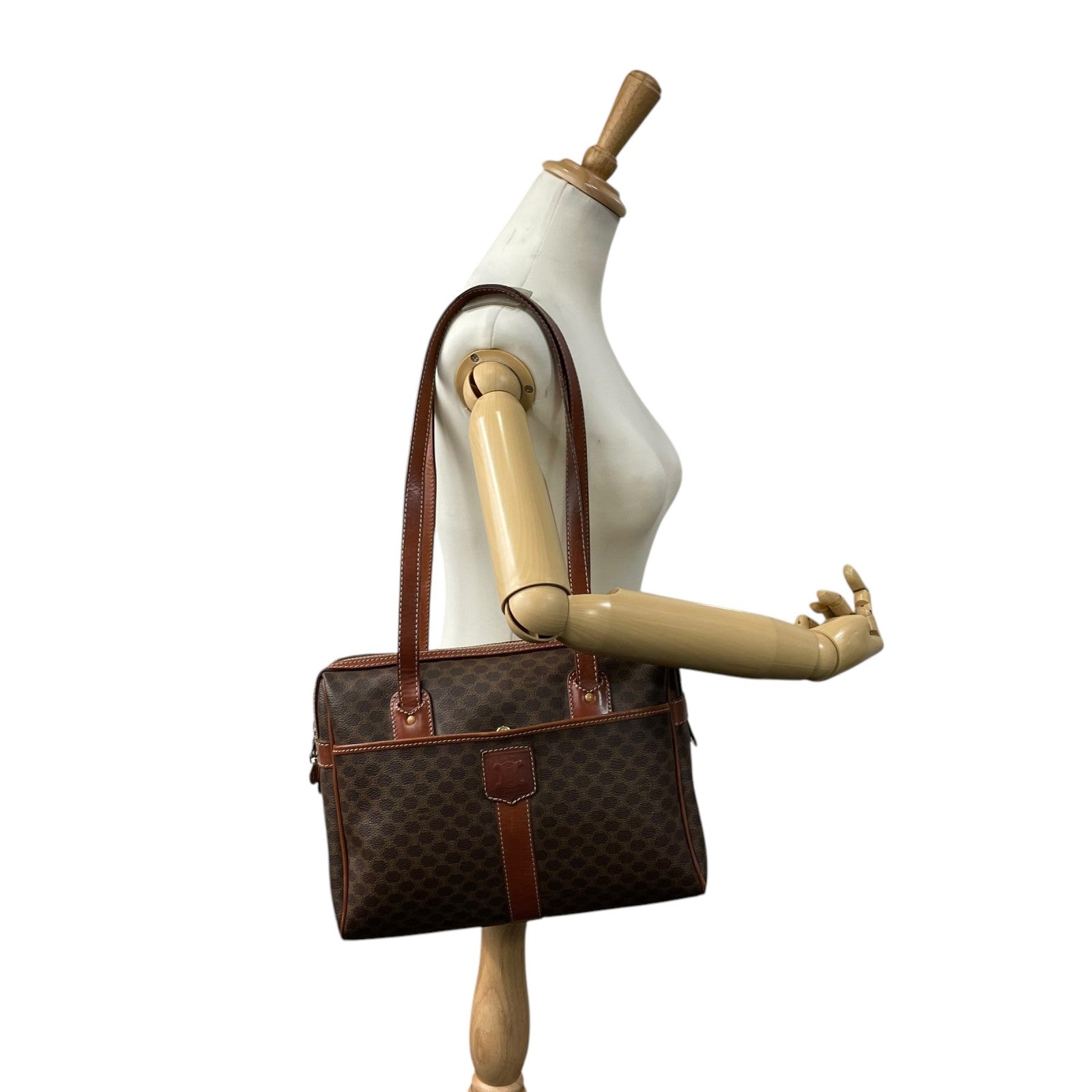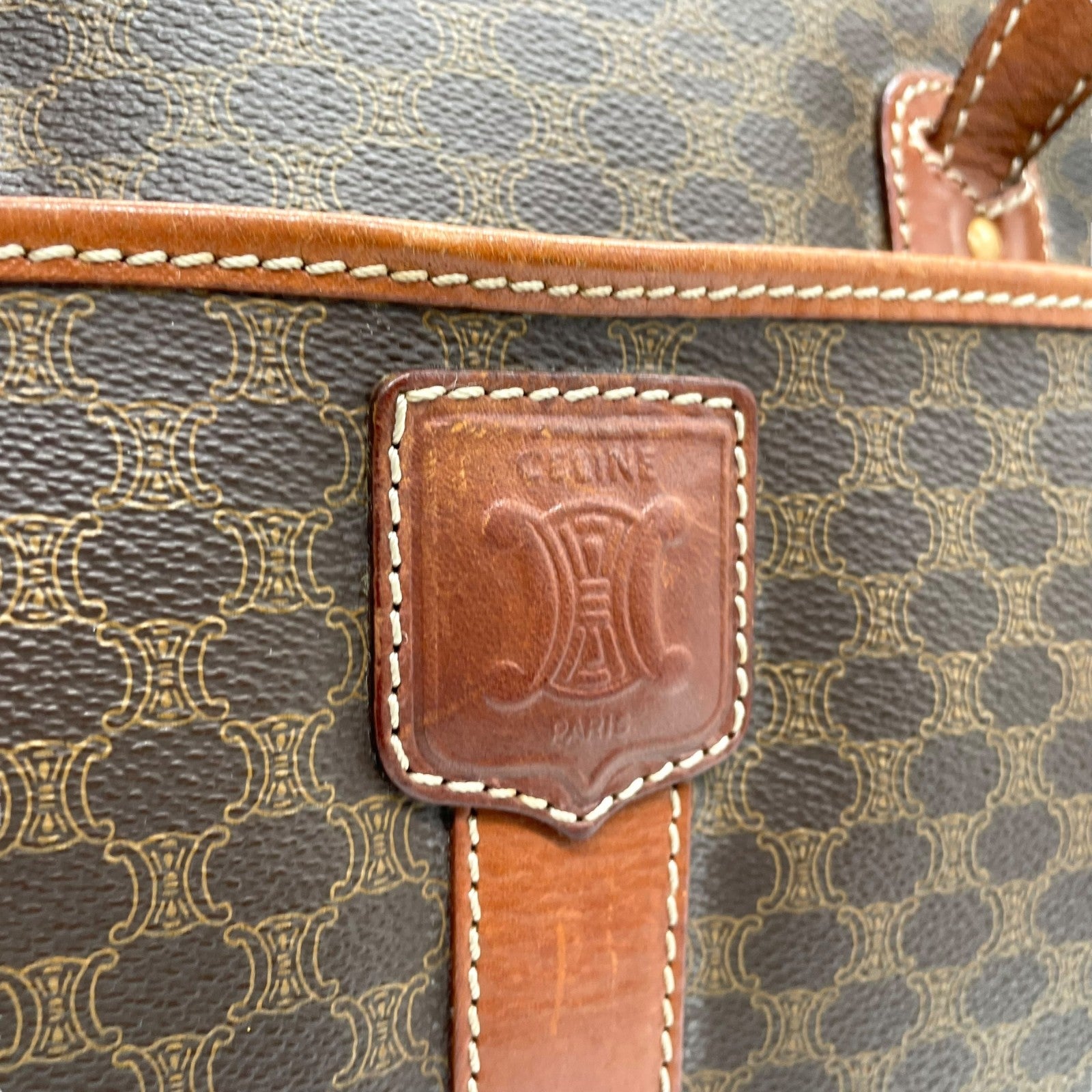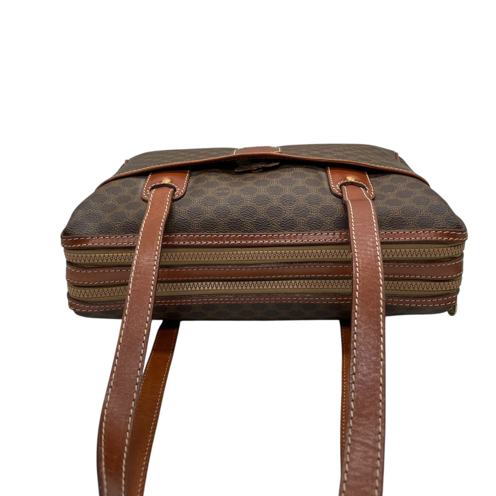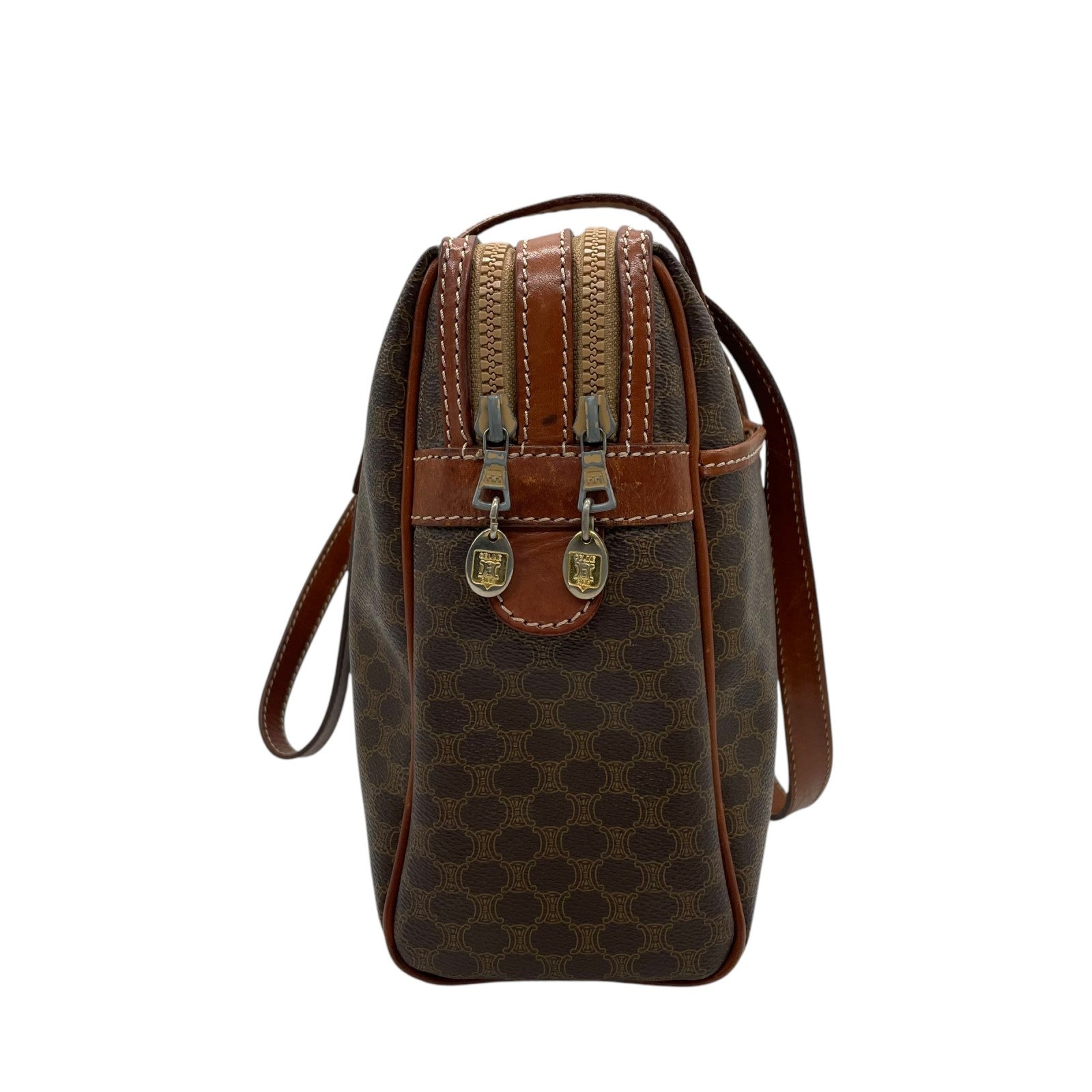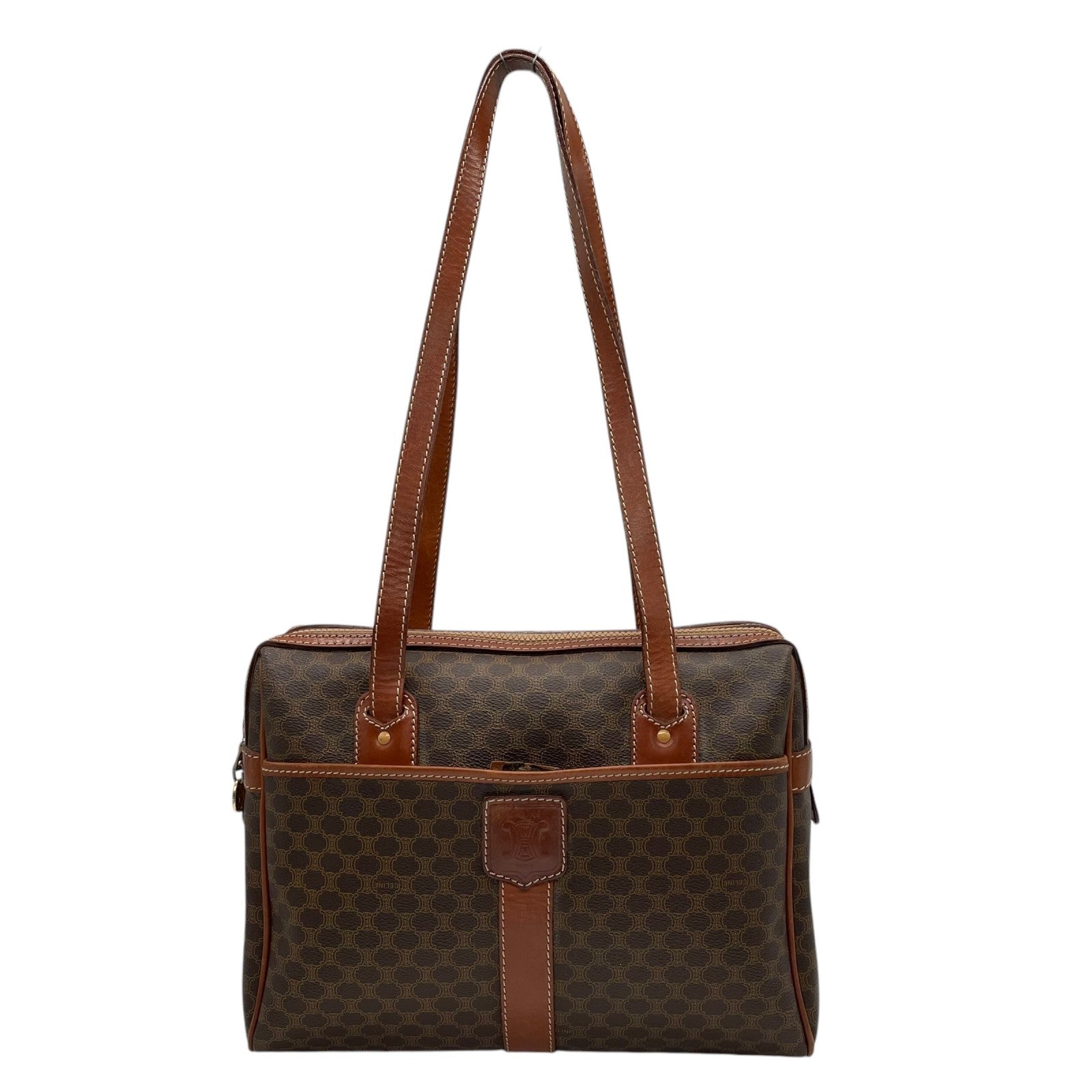 CELINE セリーヌ オールドセリーヌ マカダム柄 ハンドバッグ ショルダーバッグ ワンショルダー 肩掛け PVC レザー 本革 ブラウン 茶色 ゴールド金具 ファスナー開閉 ヴィンテージ K12