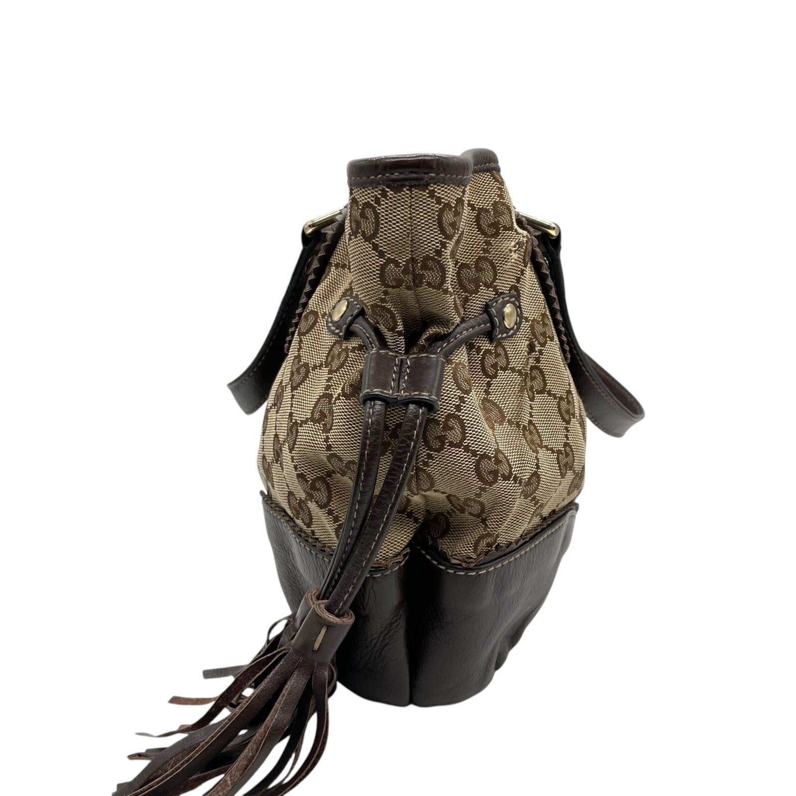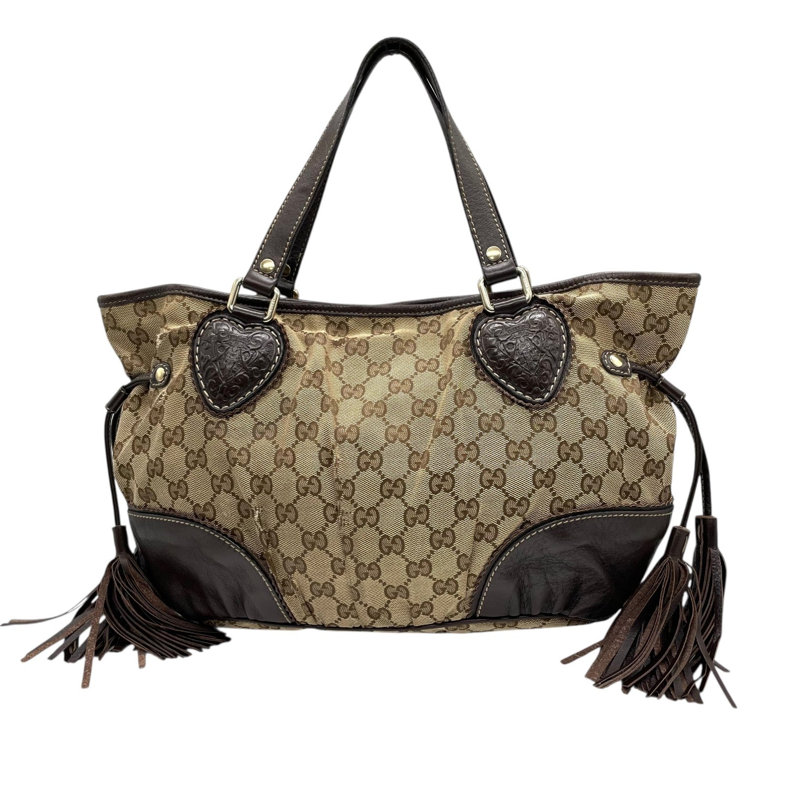 GUCCI グッチ GGキャンバス ハート タッセル トートバッグ ブラウン レザー トリム ショルダー ハンドバッグ 211955 レディース