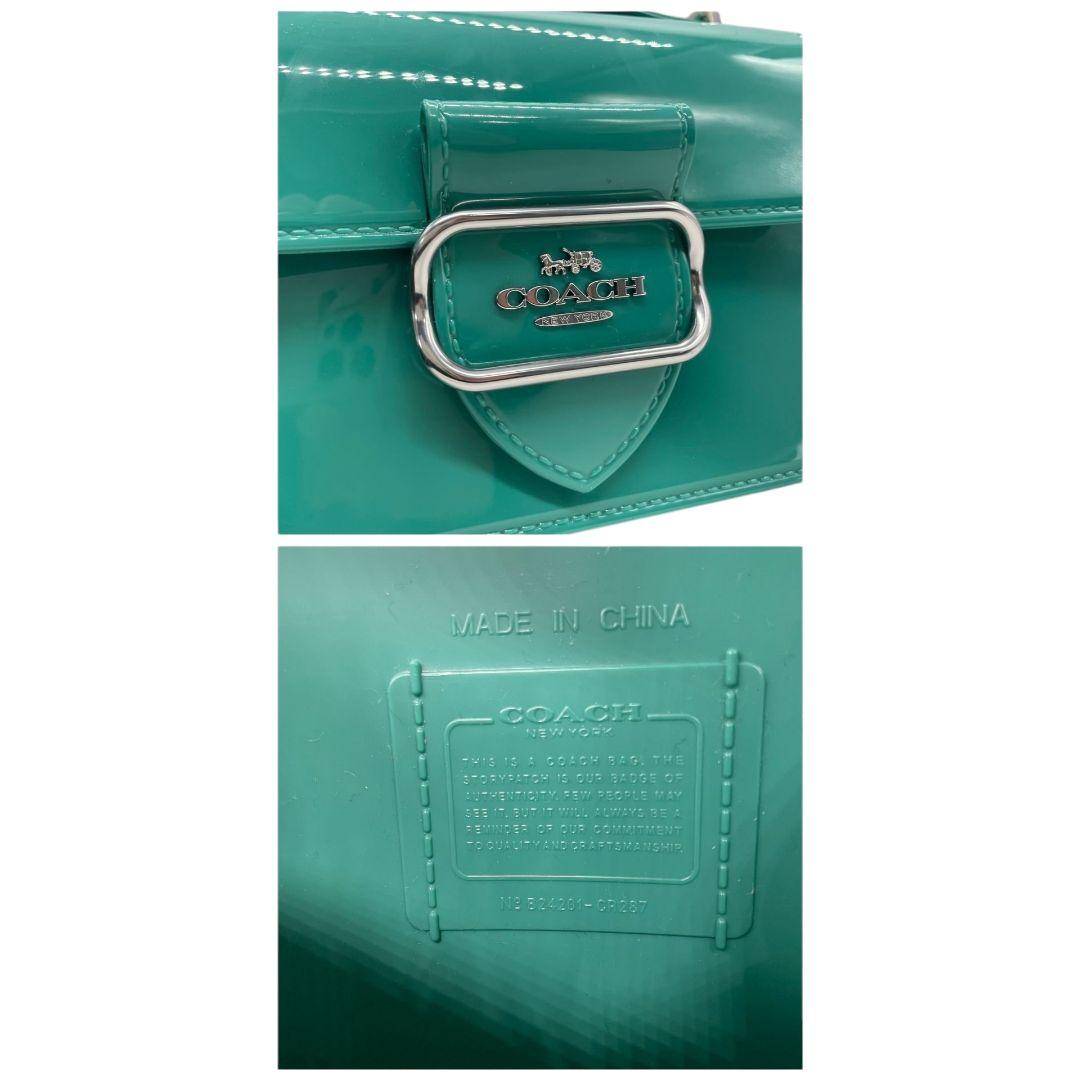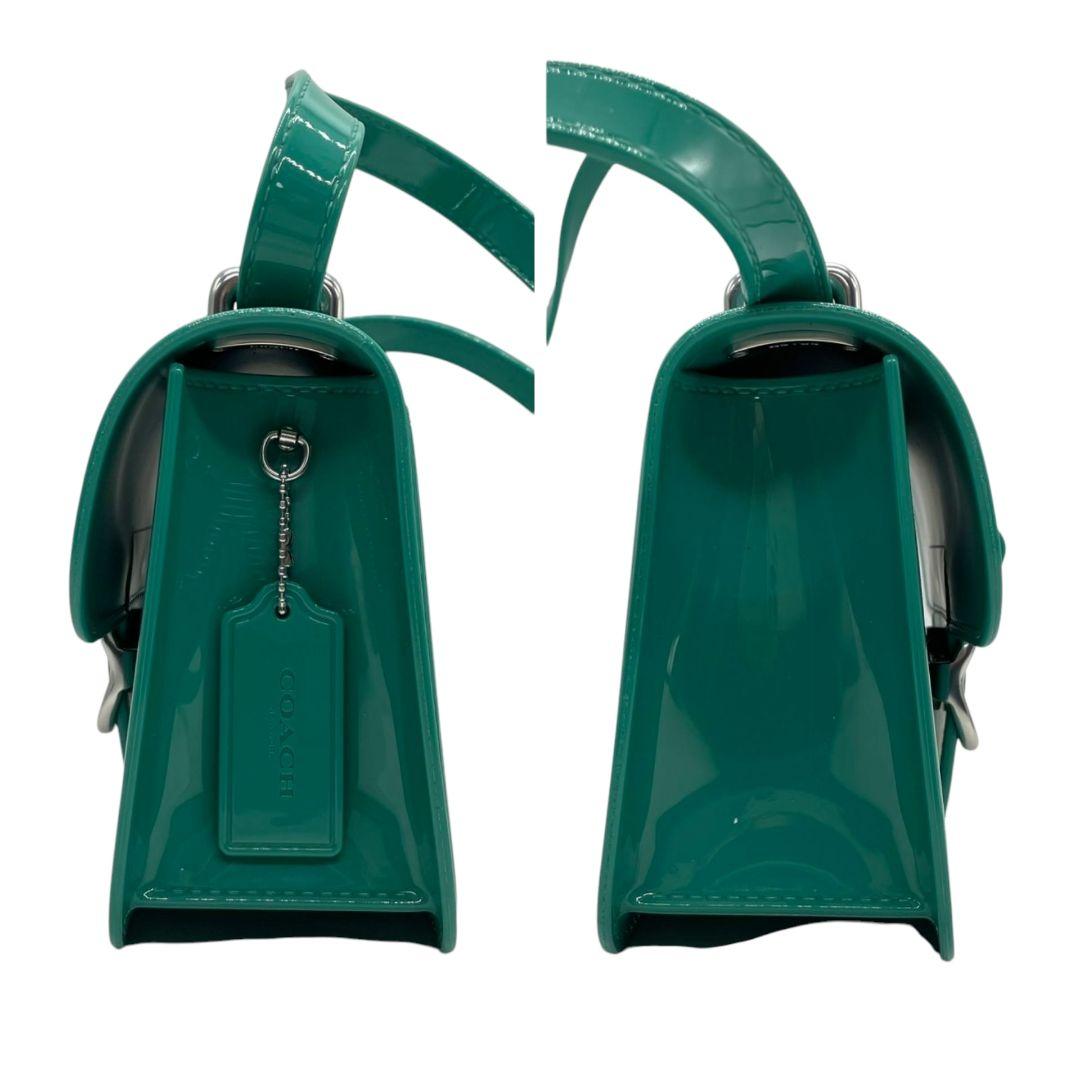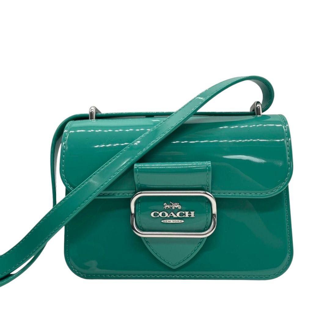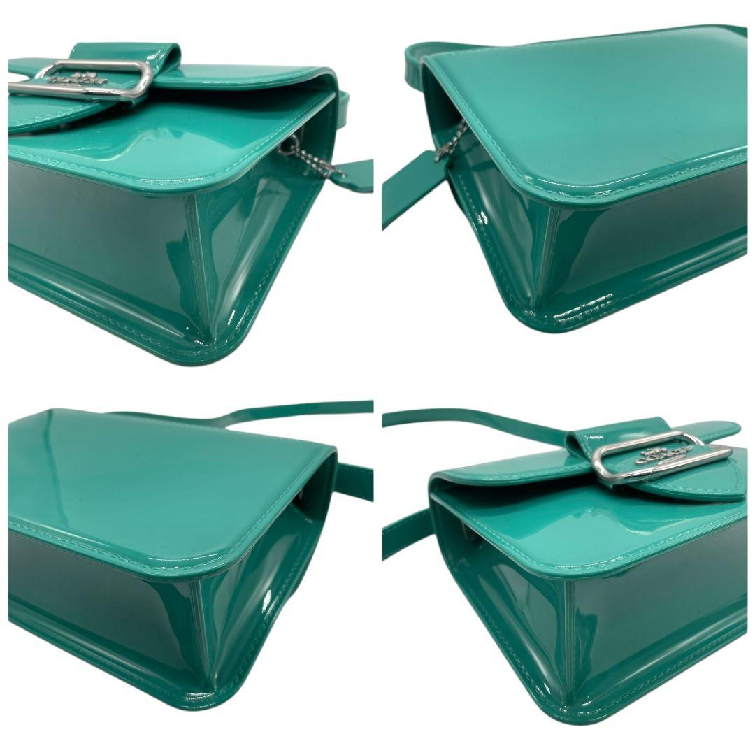 美品 コーチ ショルダーバッグ 緑 エメラルドグリーン パテントレザー エナメル フラップ ロゴチャーム 斜め掛け可 バンディット 自立可 シルバー金具 本物保証 鑑定済 COACH CR287 K