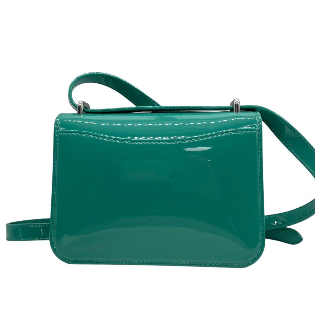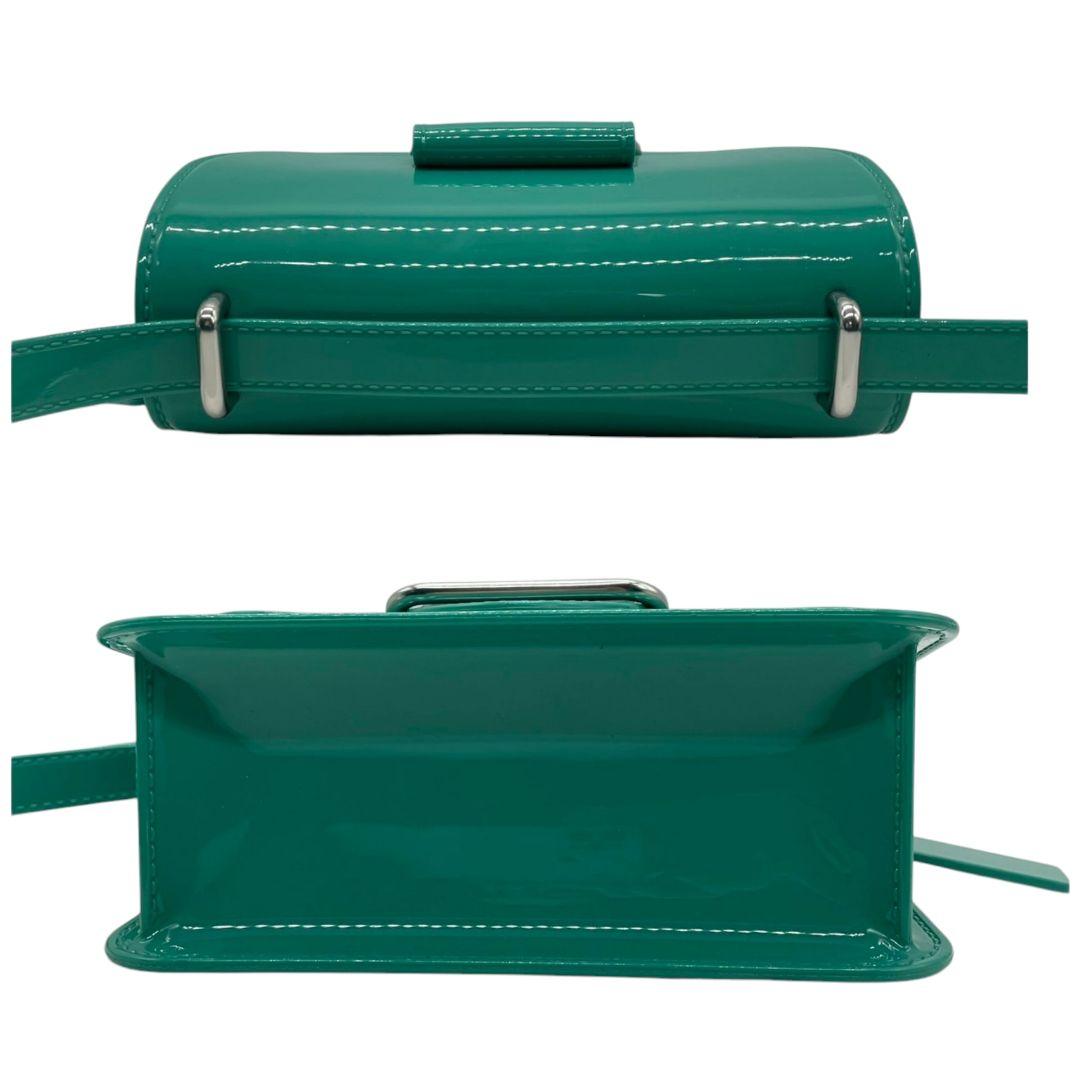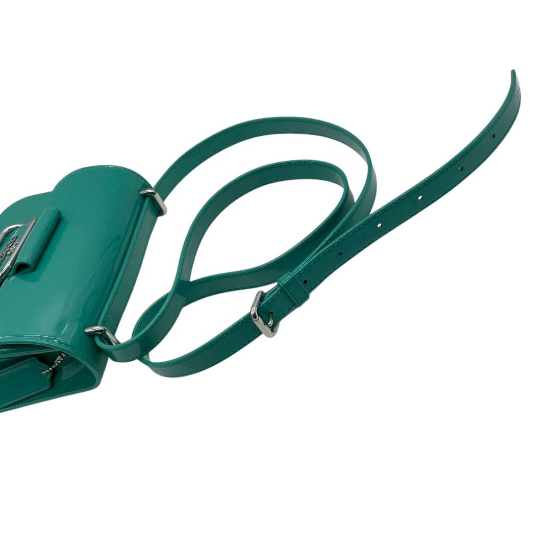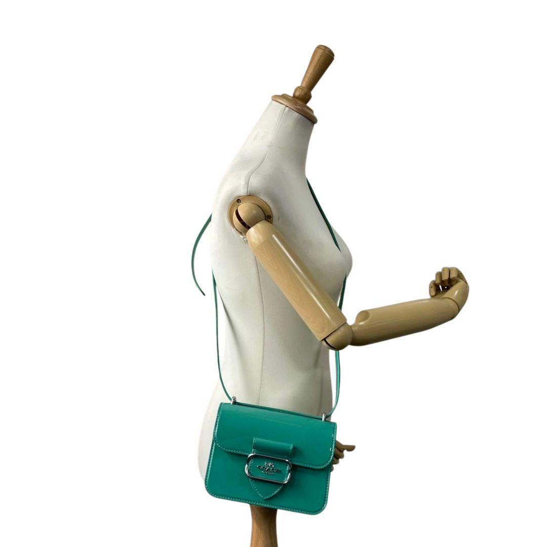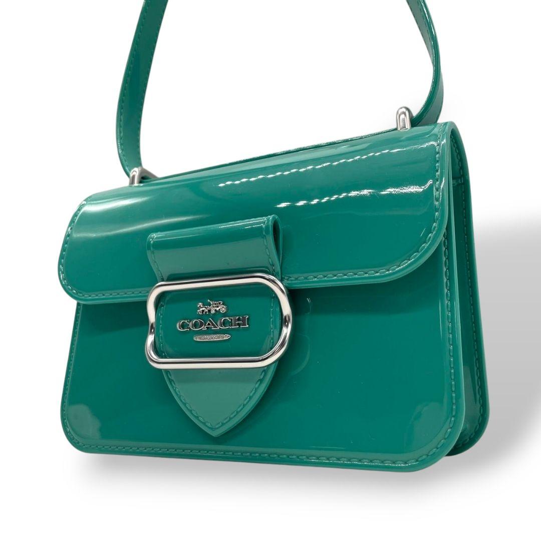 美品 コーチ ショルダーバッグ 緑 エメラルドグリーン パテントレザー エナメル フラップ ロゴチャーム 斜め掛け可 バンディット 自立可 シルバー金具 本物保証 鑑定済 COACH CR287 K