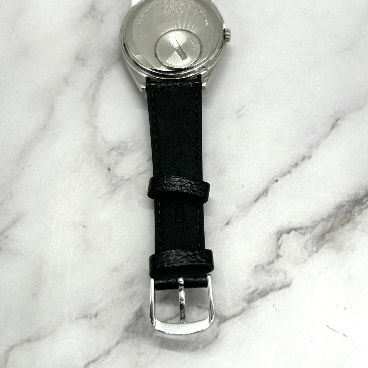 | Production features | [Beautiful condition/battery replaced] This product is a SEIKO men's watch, TYPE II. The Ref. 0903-8110 features a practical and classic design with a highly visible white dial and a silver round case. It is equipped with a convenient day-date display function (switchable between Japanese and English) and is designed for ease of use in everyday life. The black leather strap tightens the overall look and is suitable for a wide range of occasions, from business to casual. The battery has been replaced and cleaned, so it is ready to use. SEIKO TYPE II 0903-8110 Men's Watch Quartz Analog White Dial Silver Stainless Steel Case Black Leather Strap Day-Date Display Round Vintage Classic Cleaned Battery Replaced Feature Brand: SEIKO Model: TYPE II 0903-8110 Movement: Quartz Display Type: Analog Case Shape: Round Case color: Silver Dial Color: White Belt color: black Case material: Stainless Steel Belt material: leather Specifications: Day/date display (Japanese/English) Condition: Working / Cleaned / Battery replaced (2025/4/23) Seiko TYPE II is simple yet highly functional. Equipped with a reliable Japanese quartz movement, this is a watch that you can enjoy for a long time. |