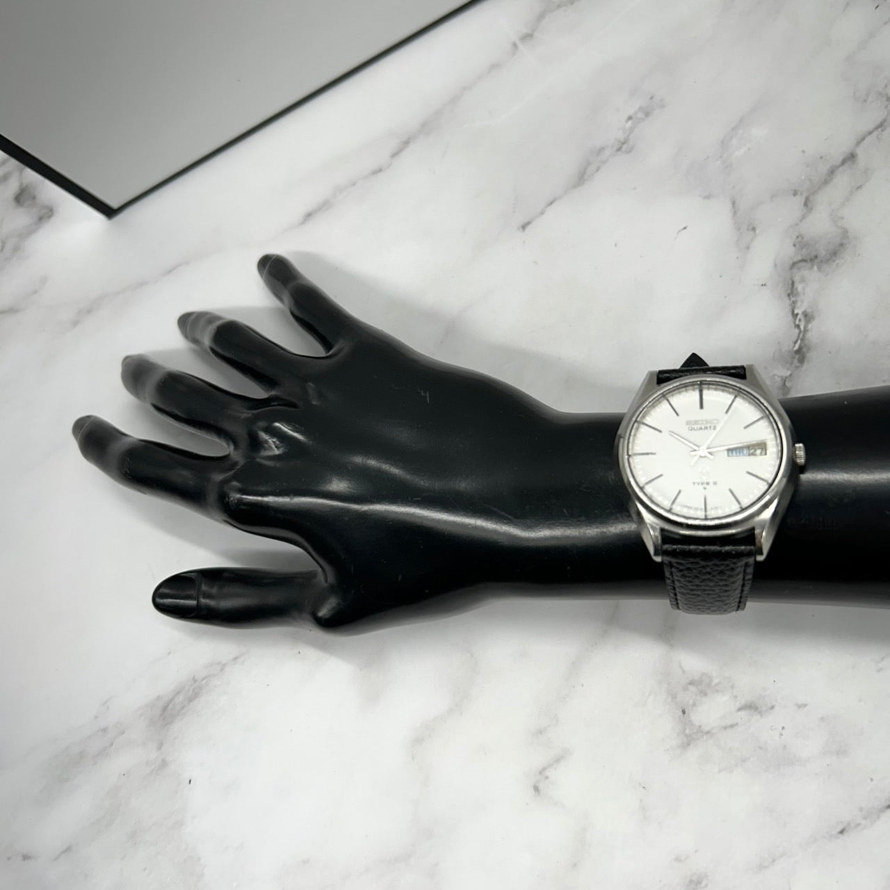 Authentic SEIKO TYPE II 0903-8110 Mens Watch White Dial Silver Quartz DayDate