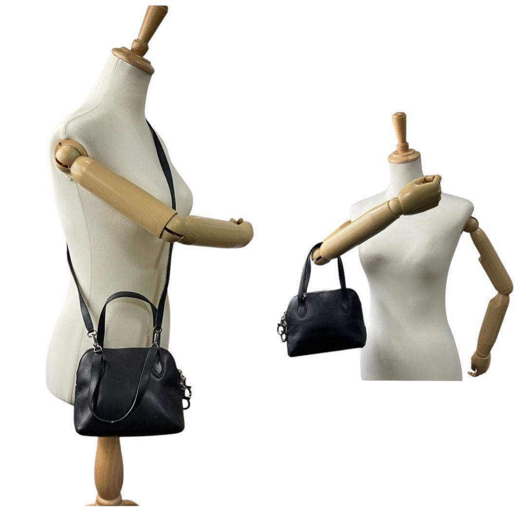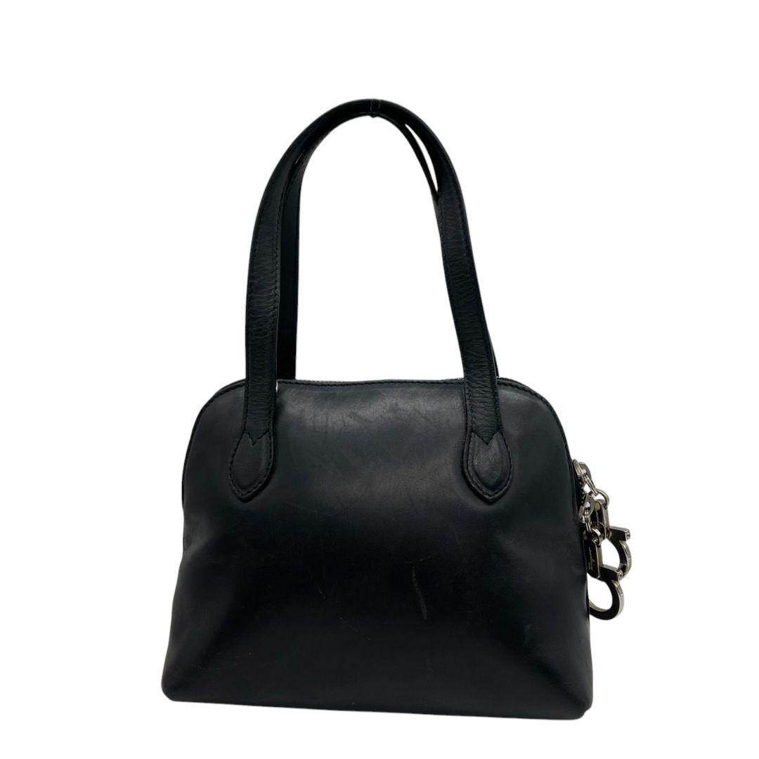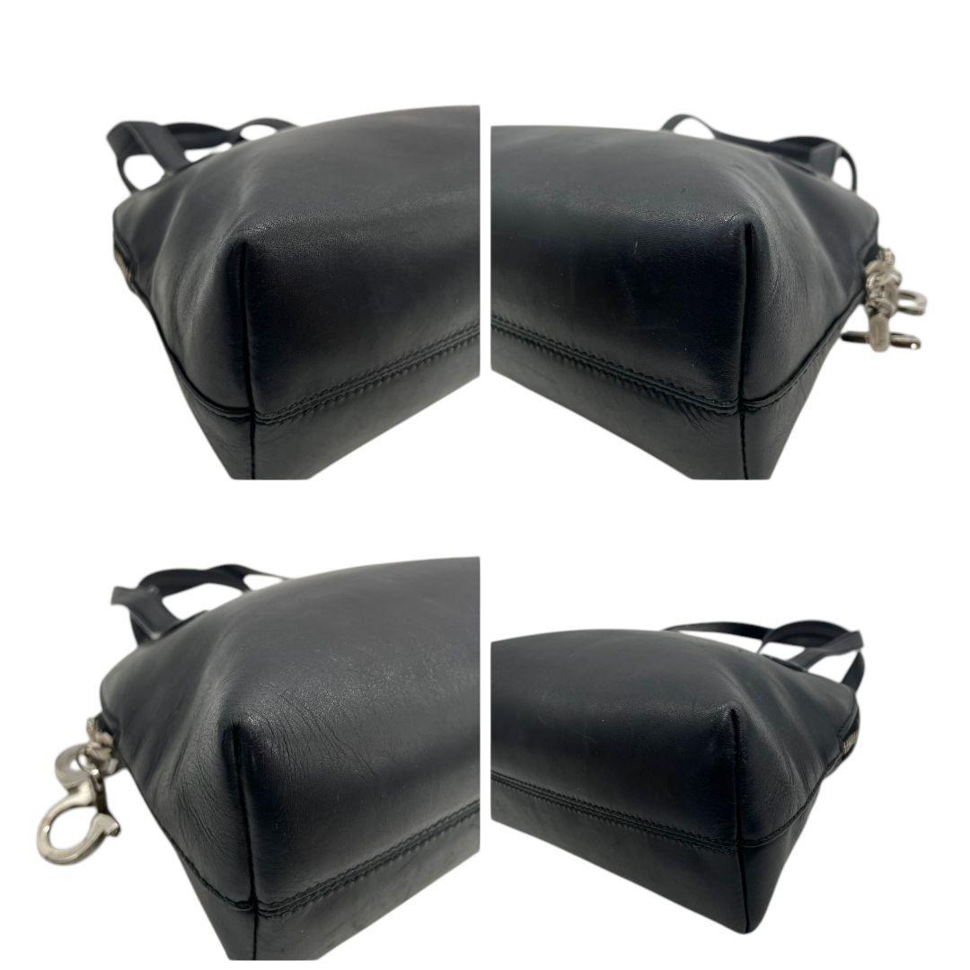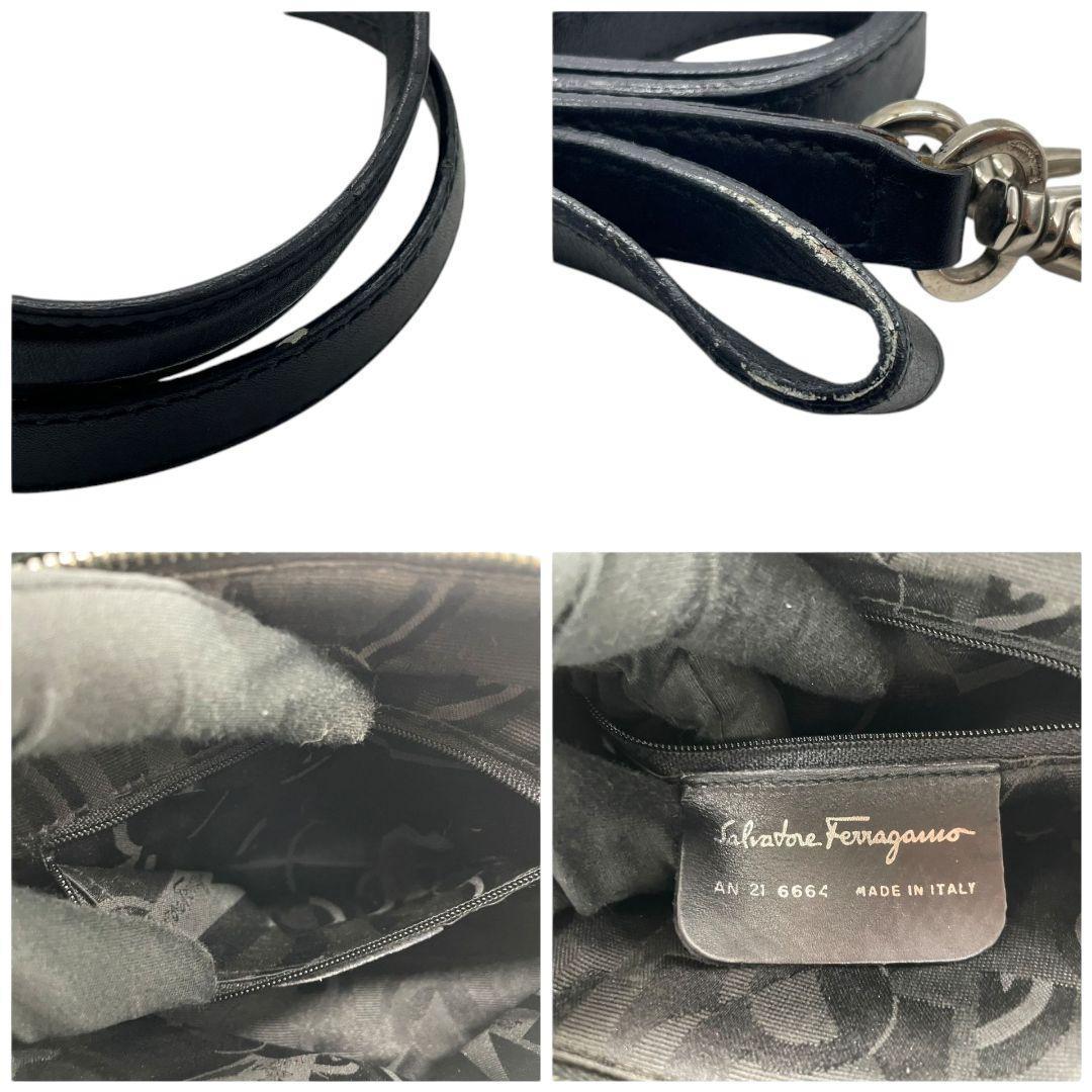 美品 フェラガモ ハンドバッグ 2way 黒 ガンチーニ チャーム付き レザー 本革 ショルダーバッグ 斜め掛け可 自立可 シルバー金具 Salvatore Ferragamo ブラック E6 6664
