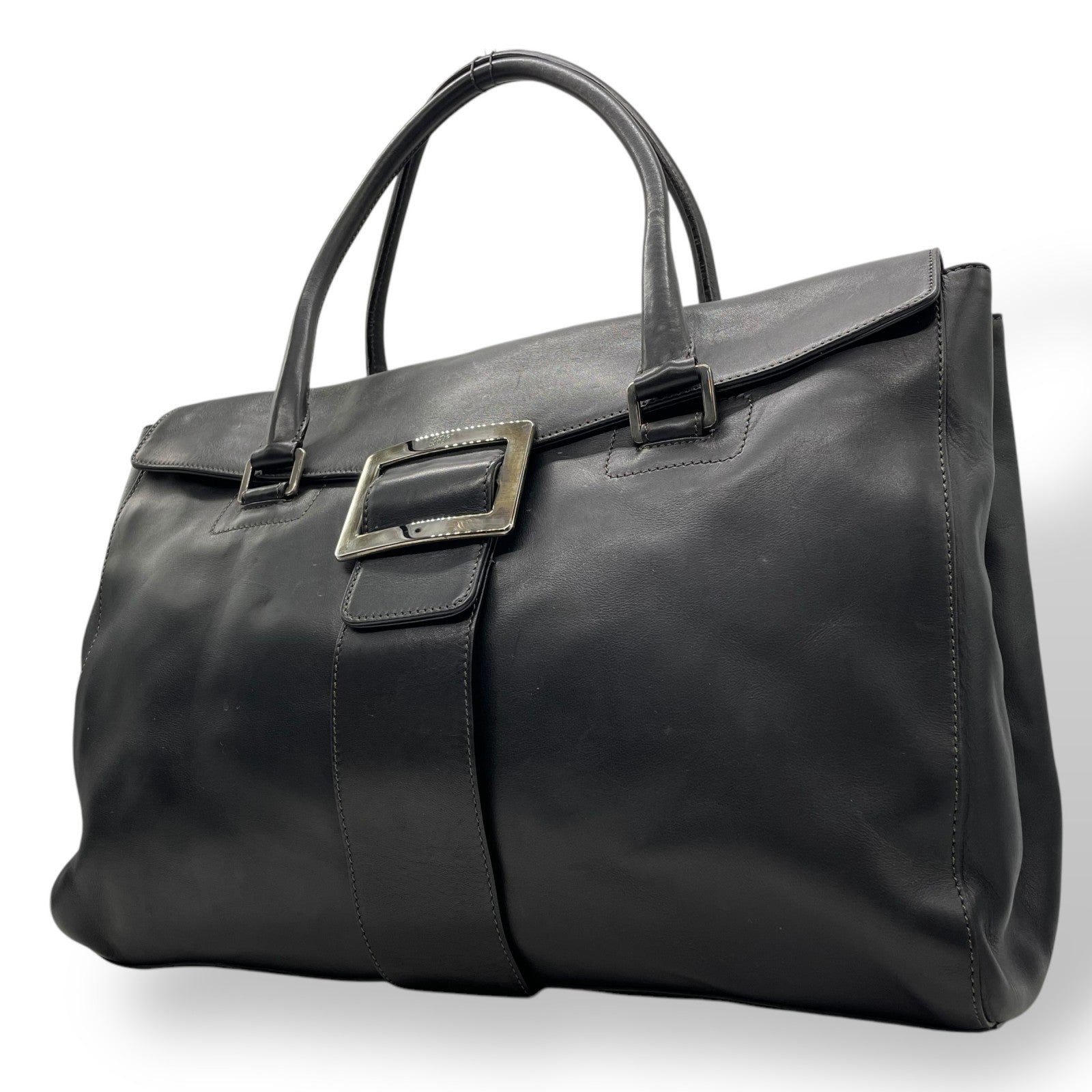 Authentic Roger Vivier Handbag Tote Black Leather Black Hardware Spacious Women's