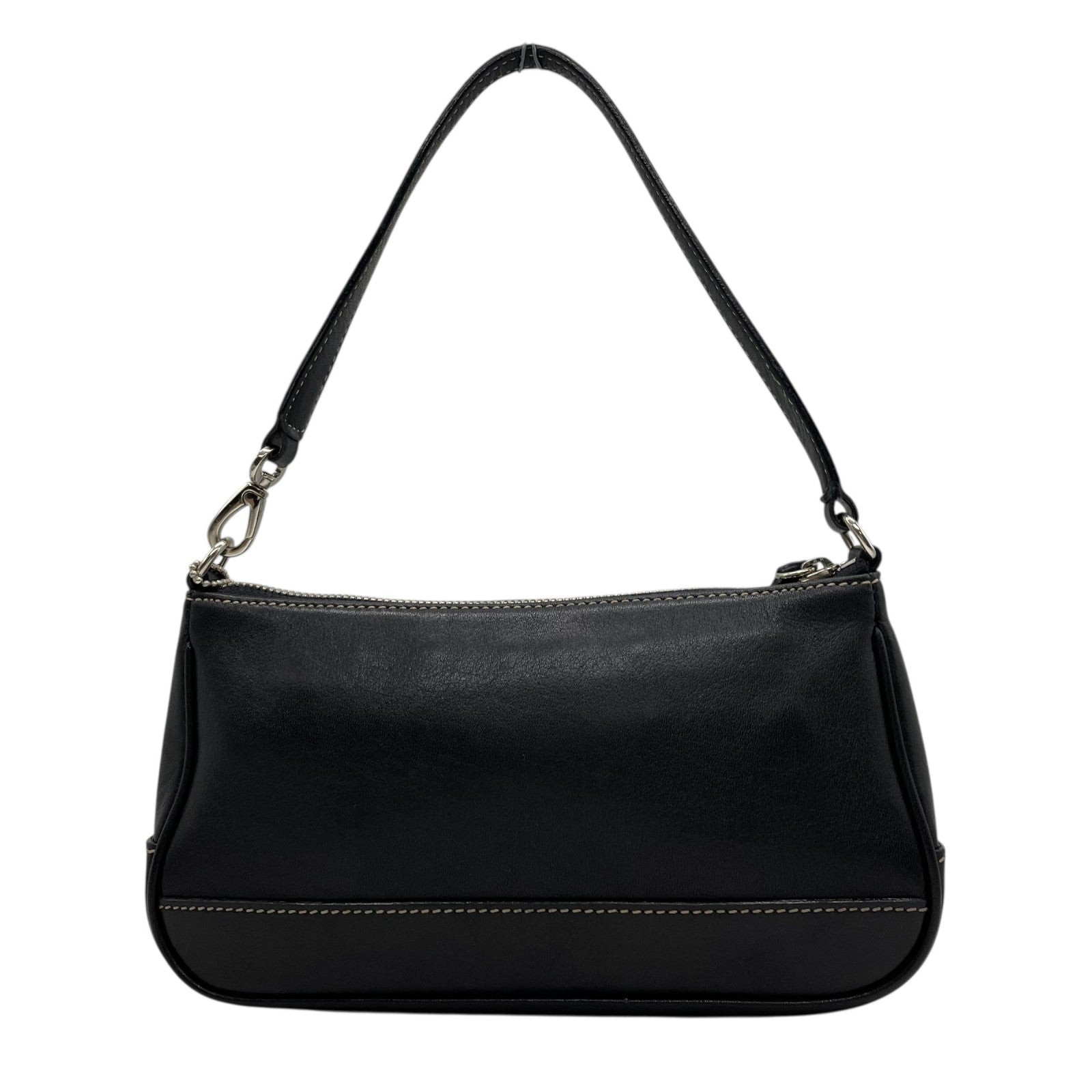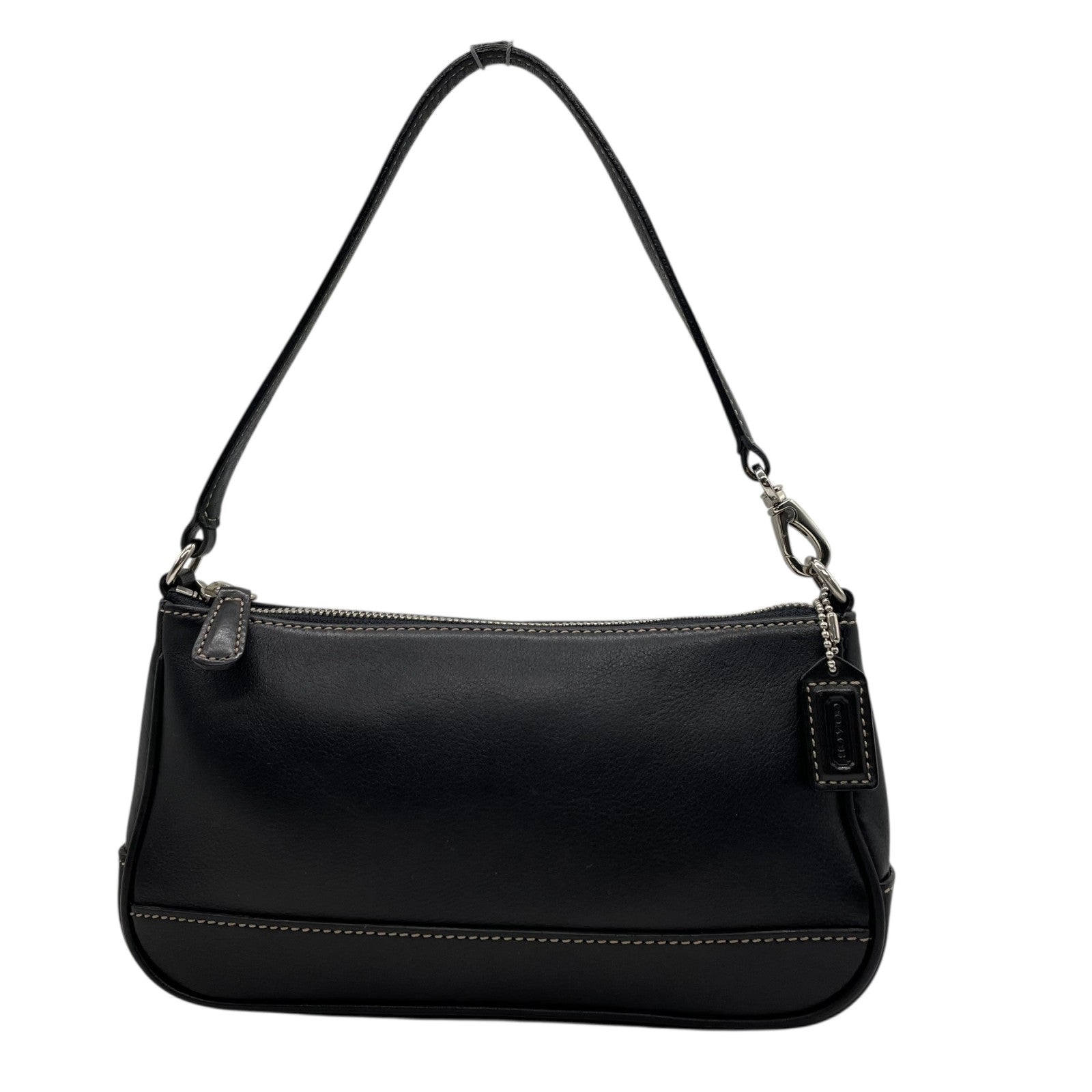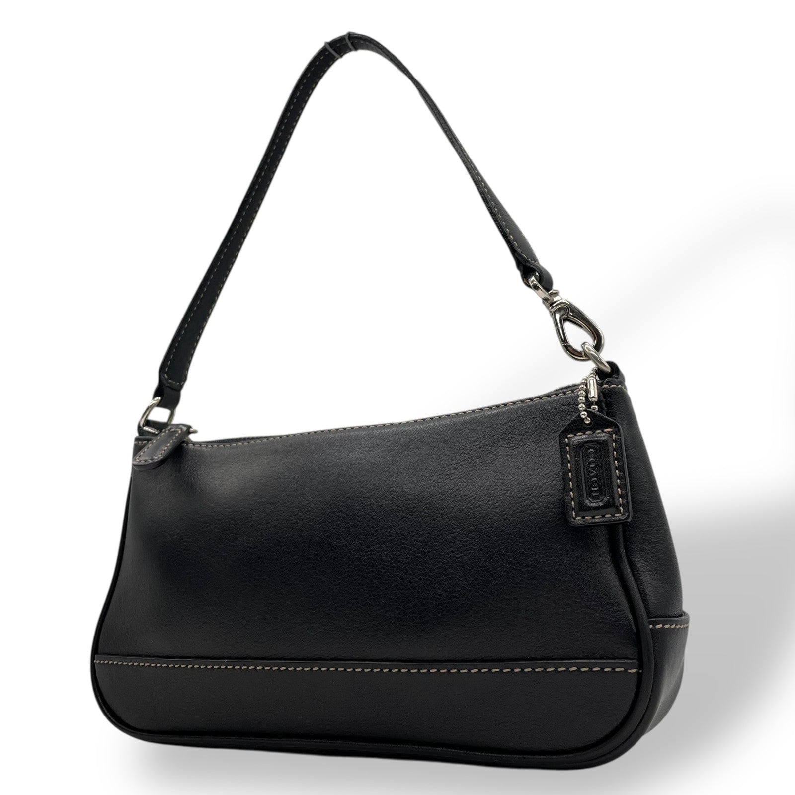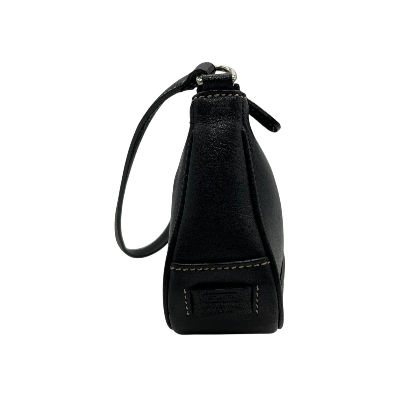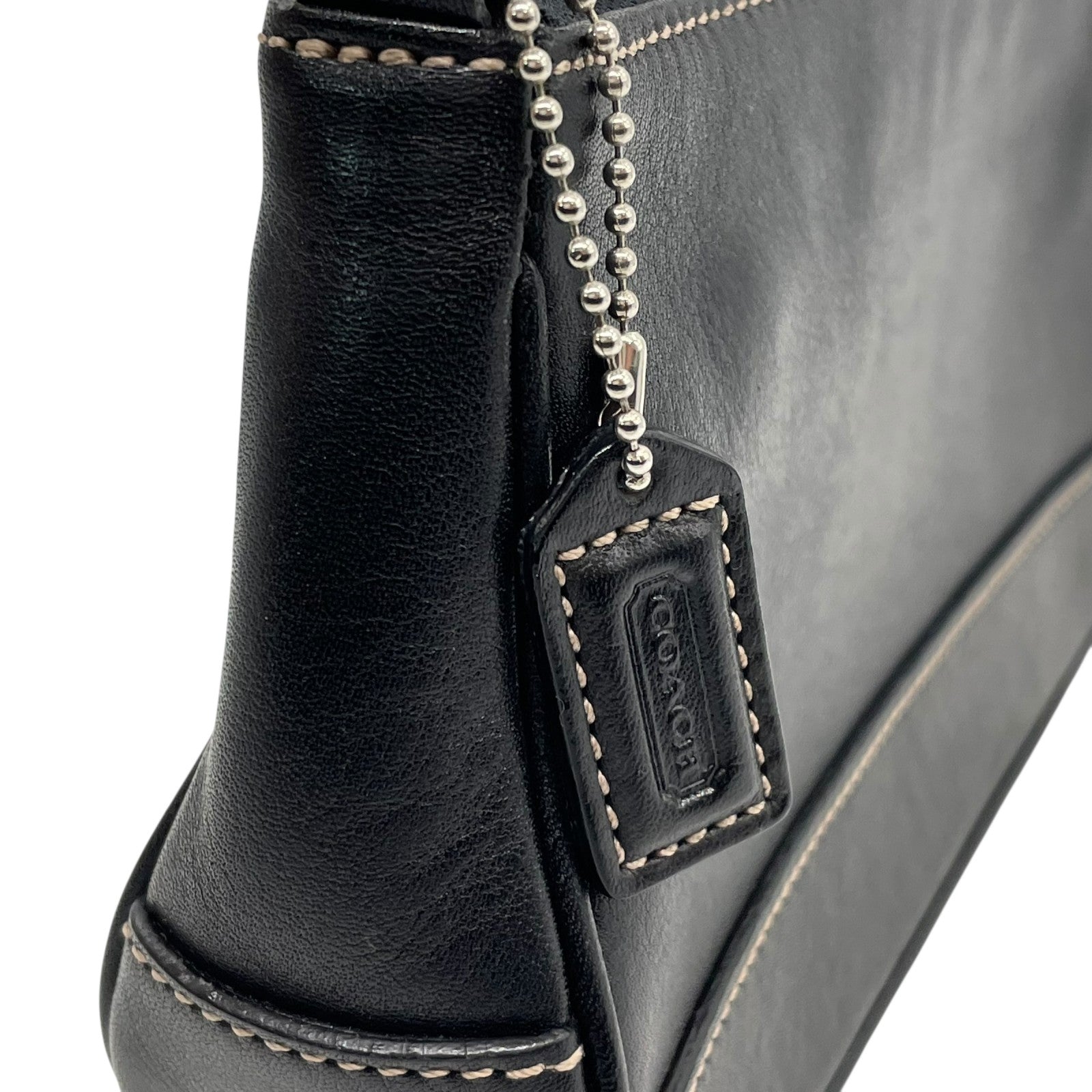 極美品 COACH コーチ アクセサリーポーチ ハンドバッグ ミニバッグ ブラック 黒 オールレザー 本革 7785 レディース ファスナー開閉 シルバー金具 K2