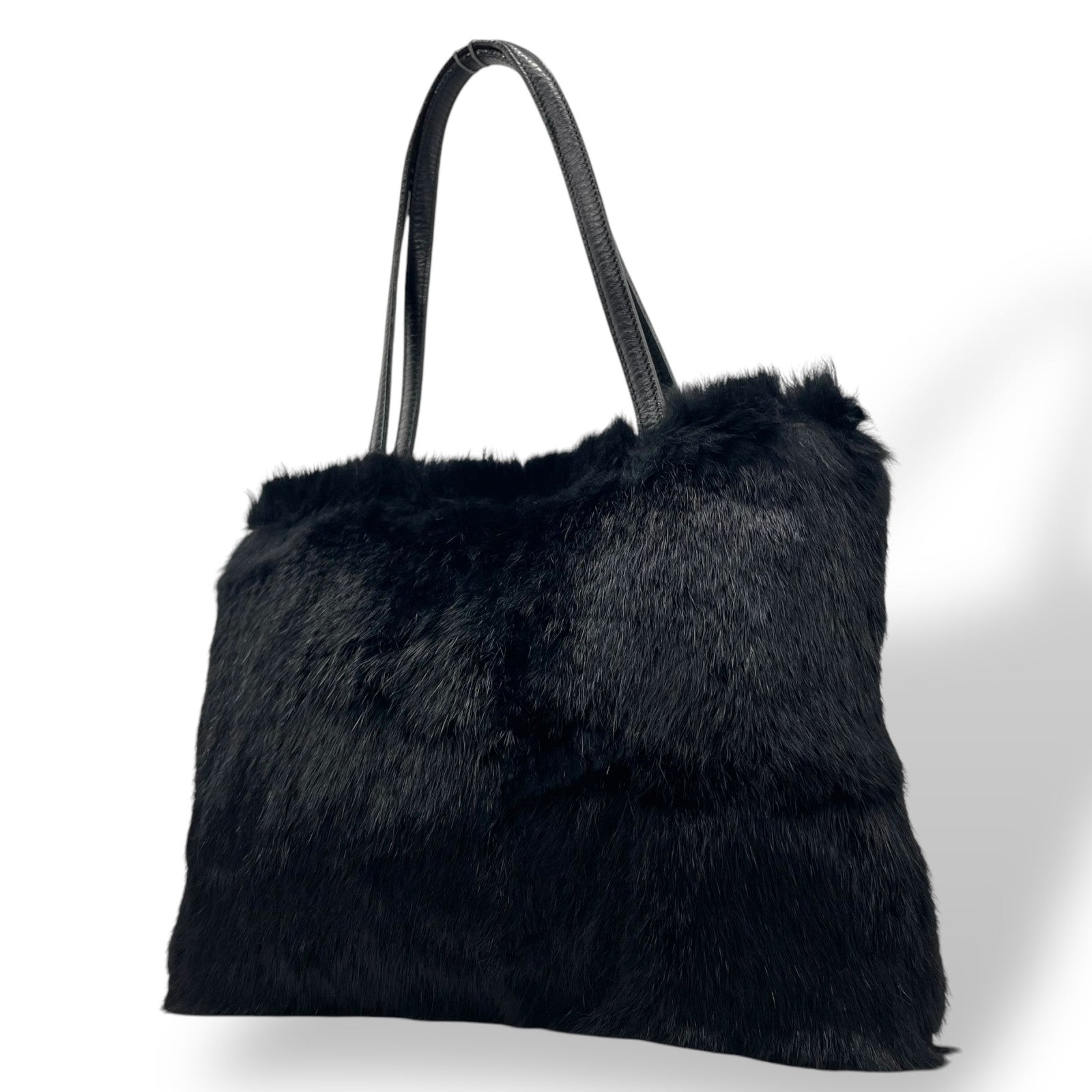 Beautiful BURBERRY Blue Label handbag with fur and leather in black, Nova check interior, women's, K1