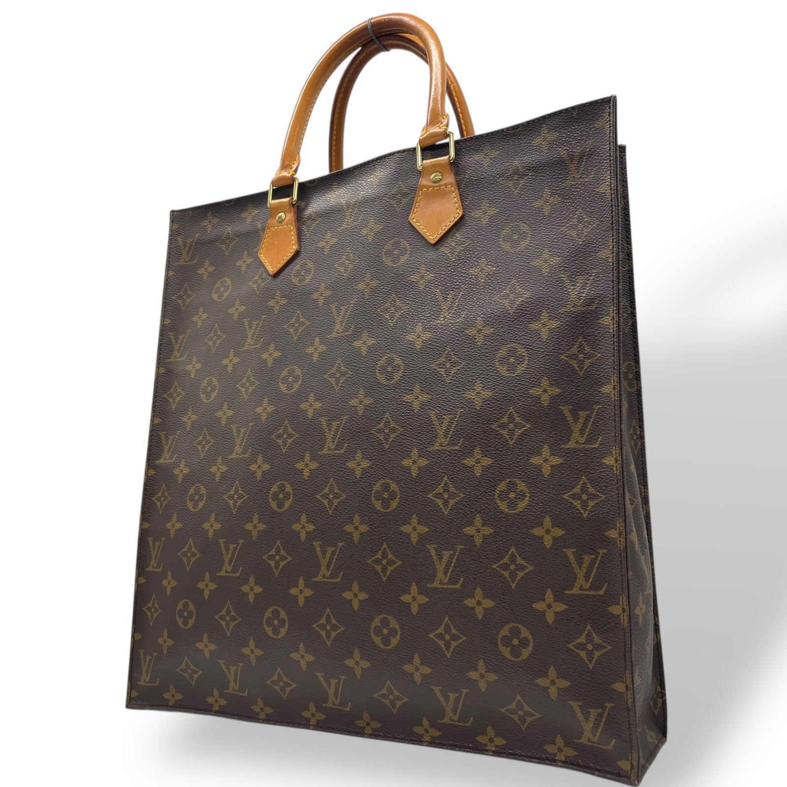 LOUIS VUITTON ルイヴィトン モノグラム サックプラ トートバッグ ハンドバッグ ショッピングバッグ M51140 茶 ブラウン ゴールド金具 PVC レザー 手提げ メンズ レディース E