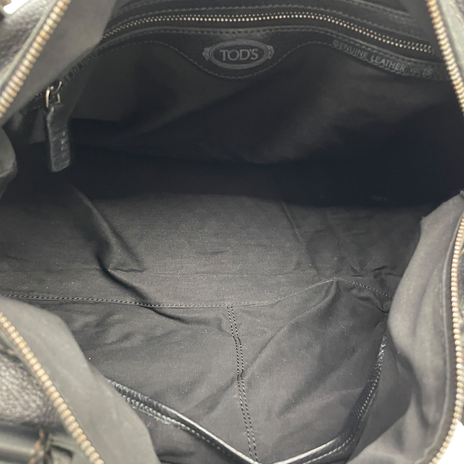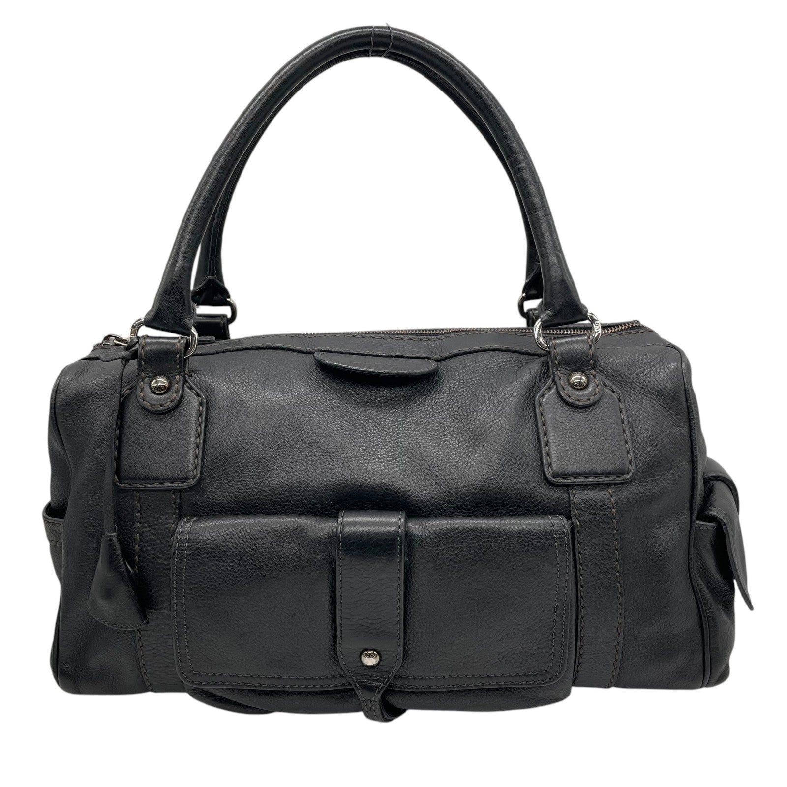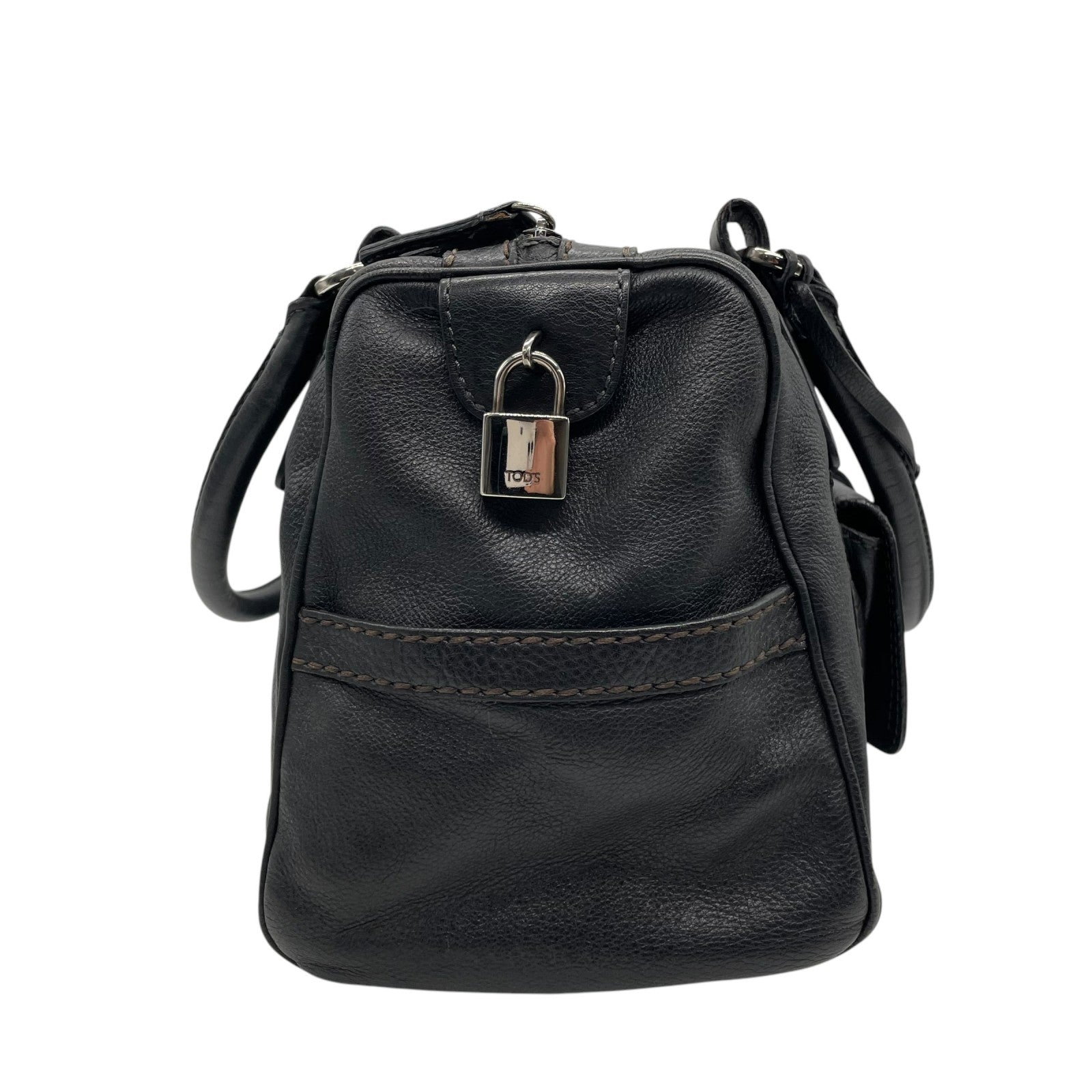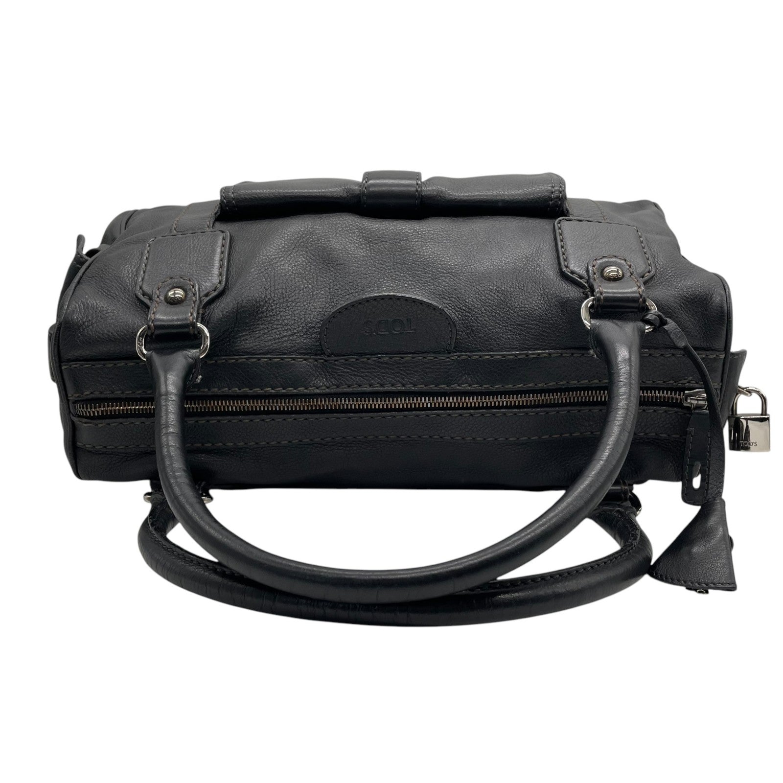 Authentic TOD'S Boston Handbag Leather Black Silver Hardware Padlock Women's