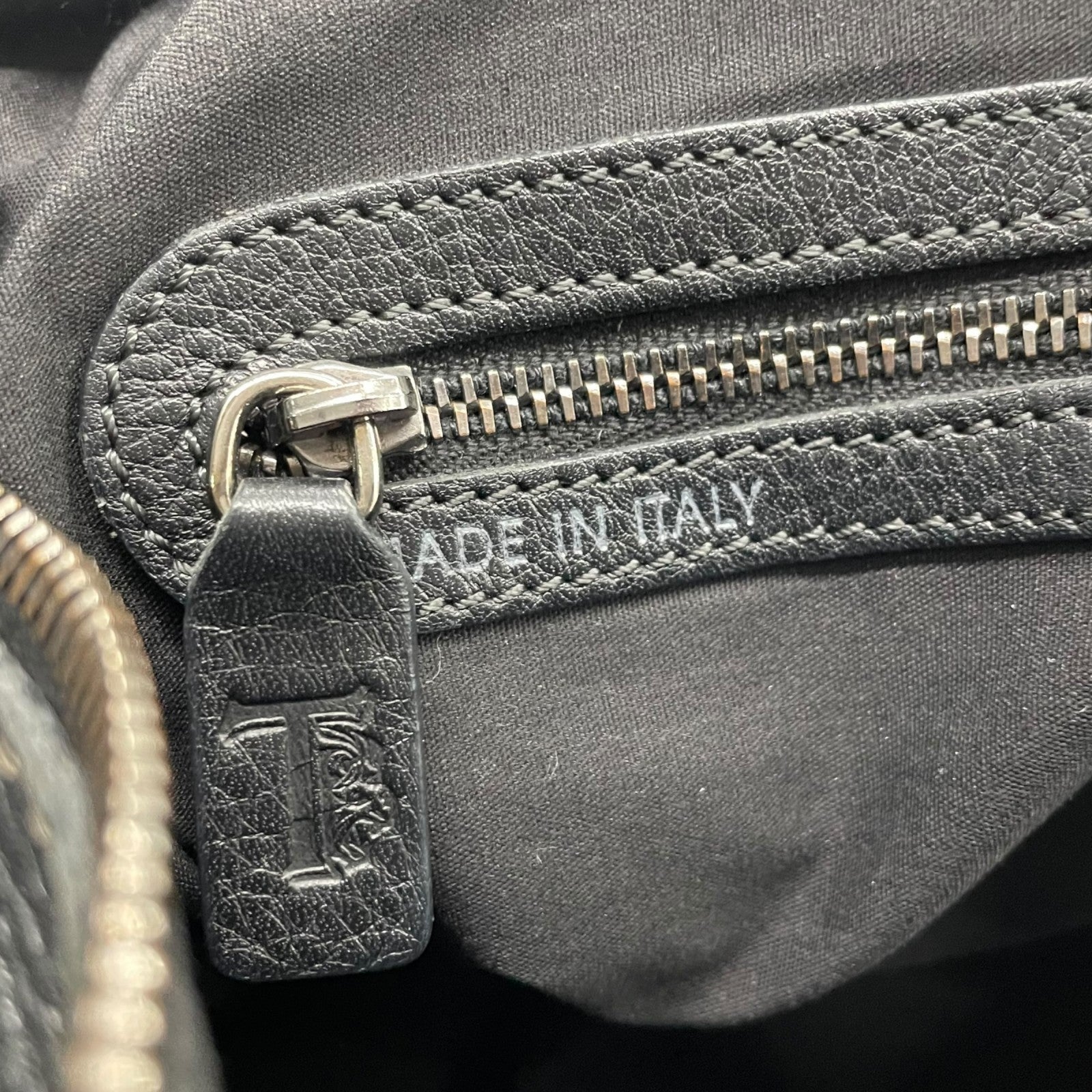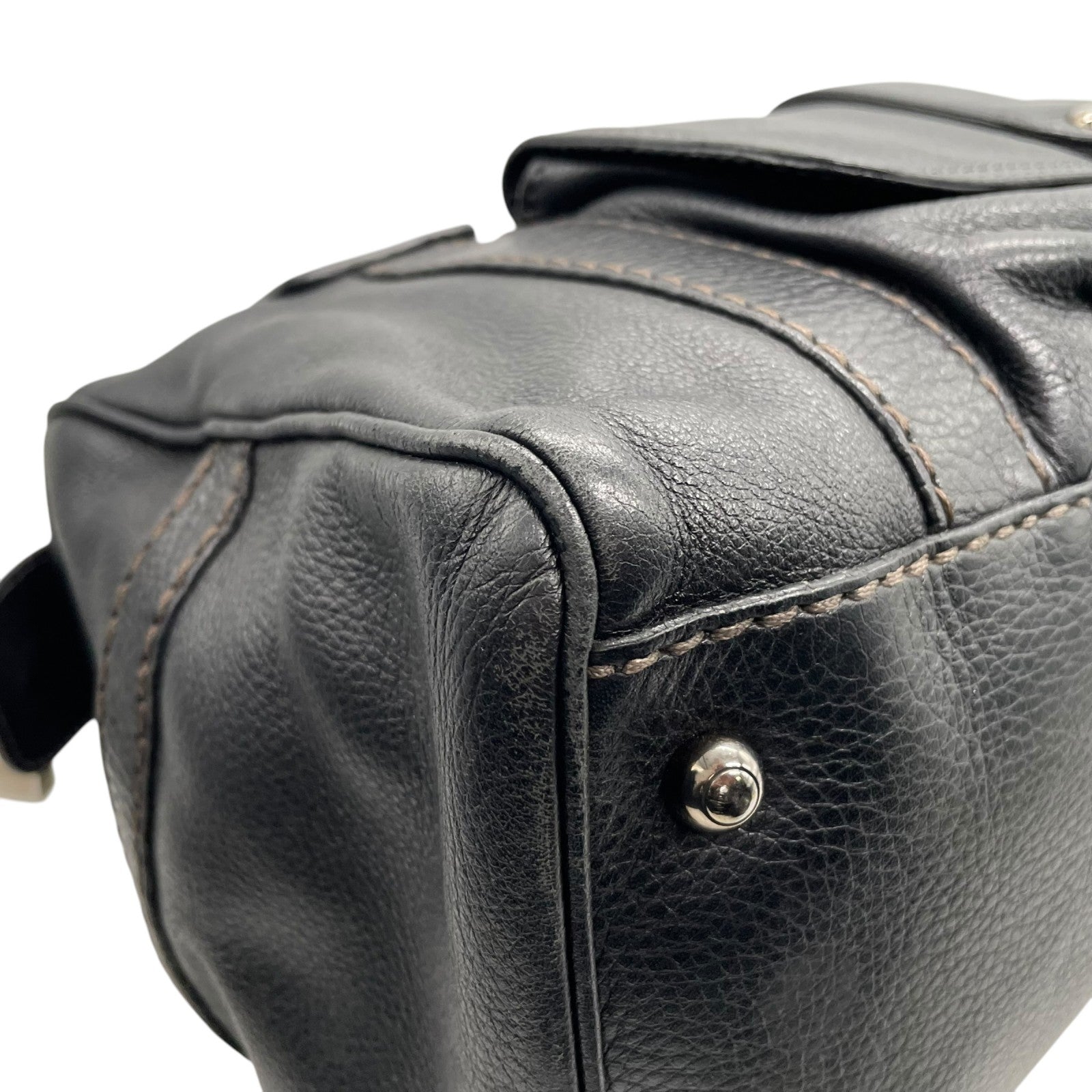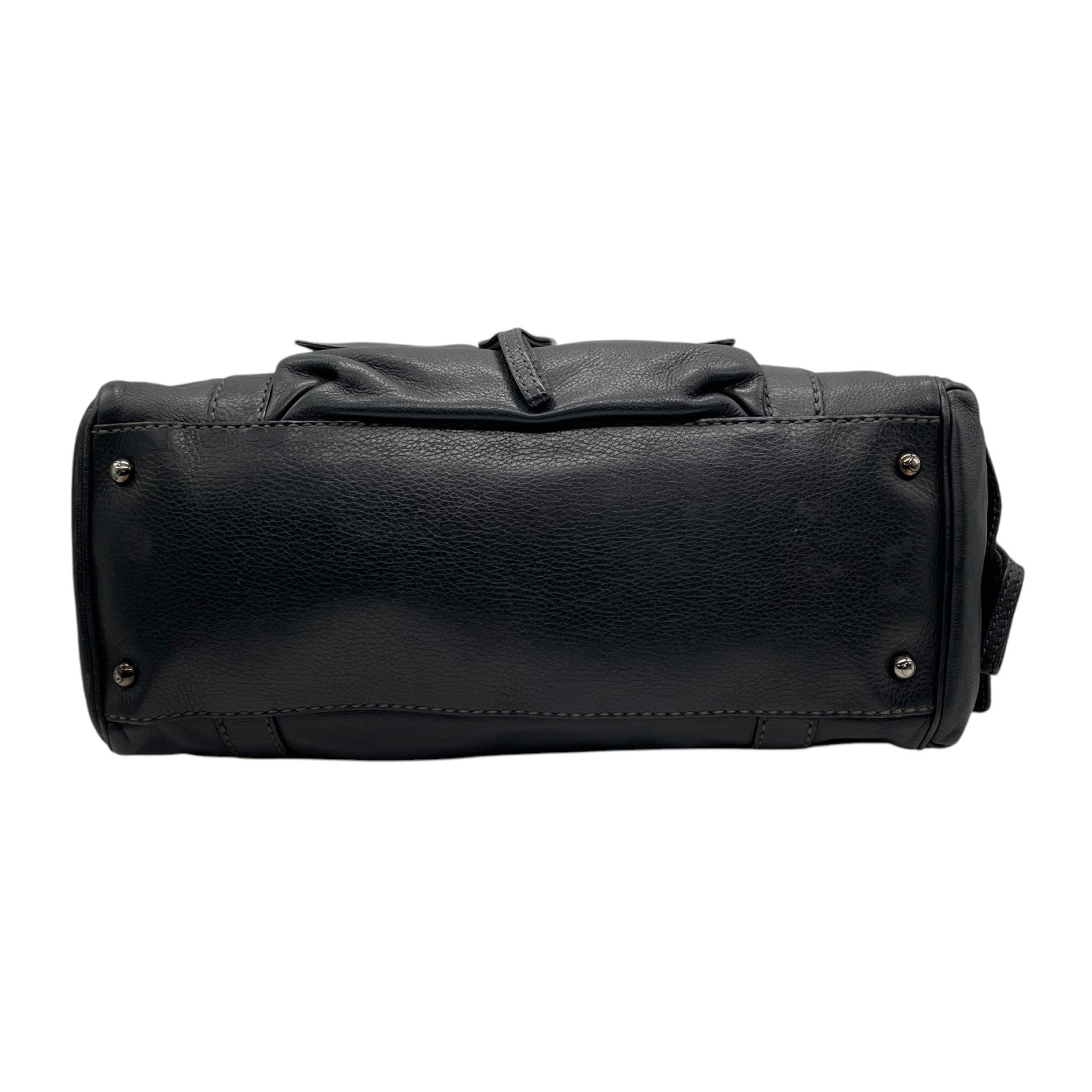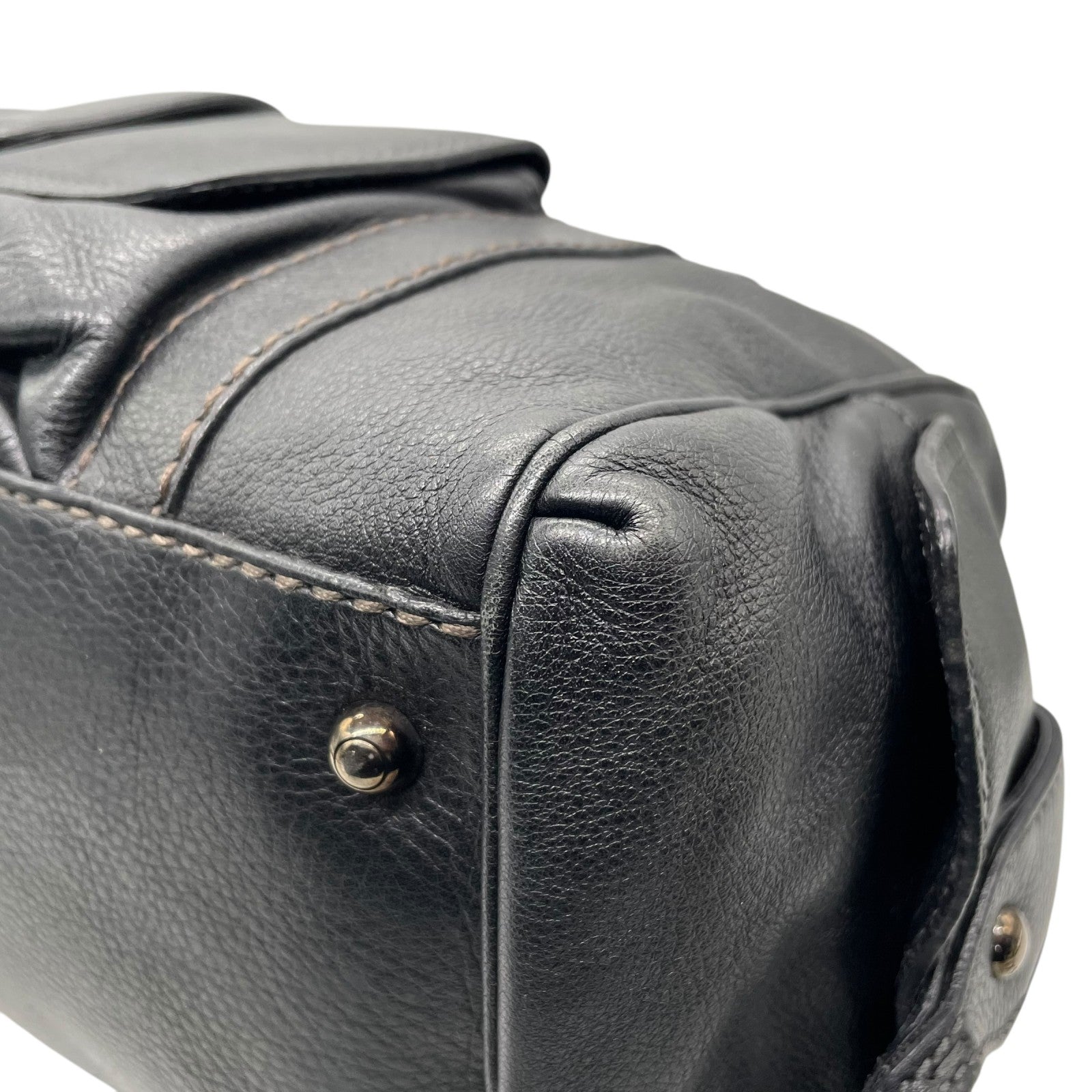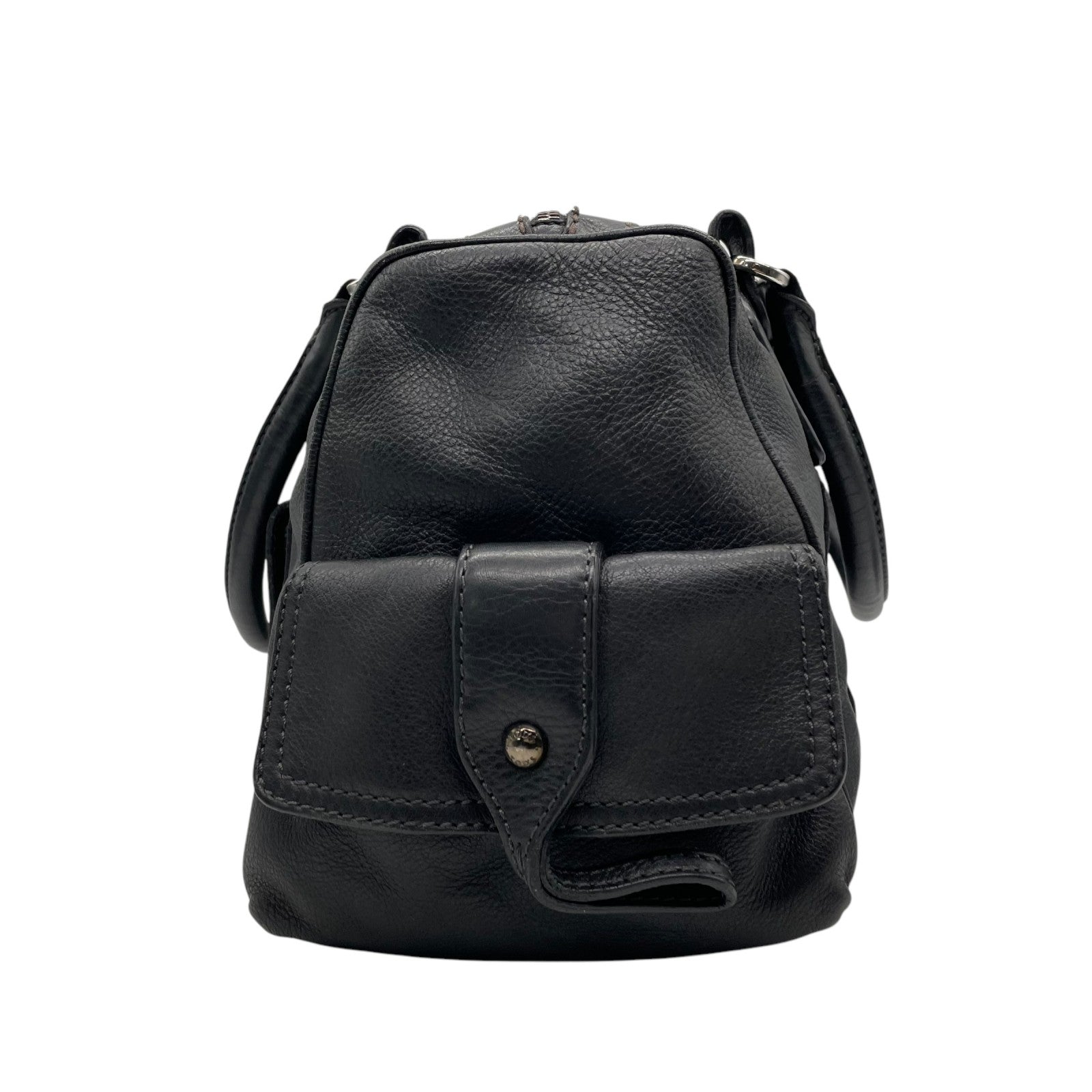 Authentic TOD'S Boston Handbag Leather Black Silver Hardware Padlock Women's