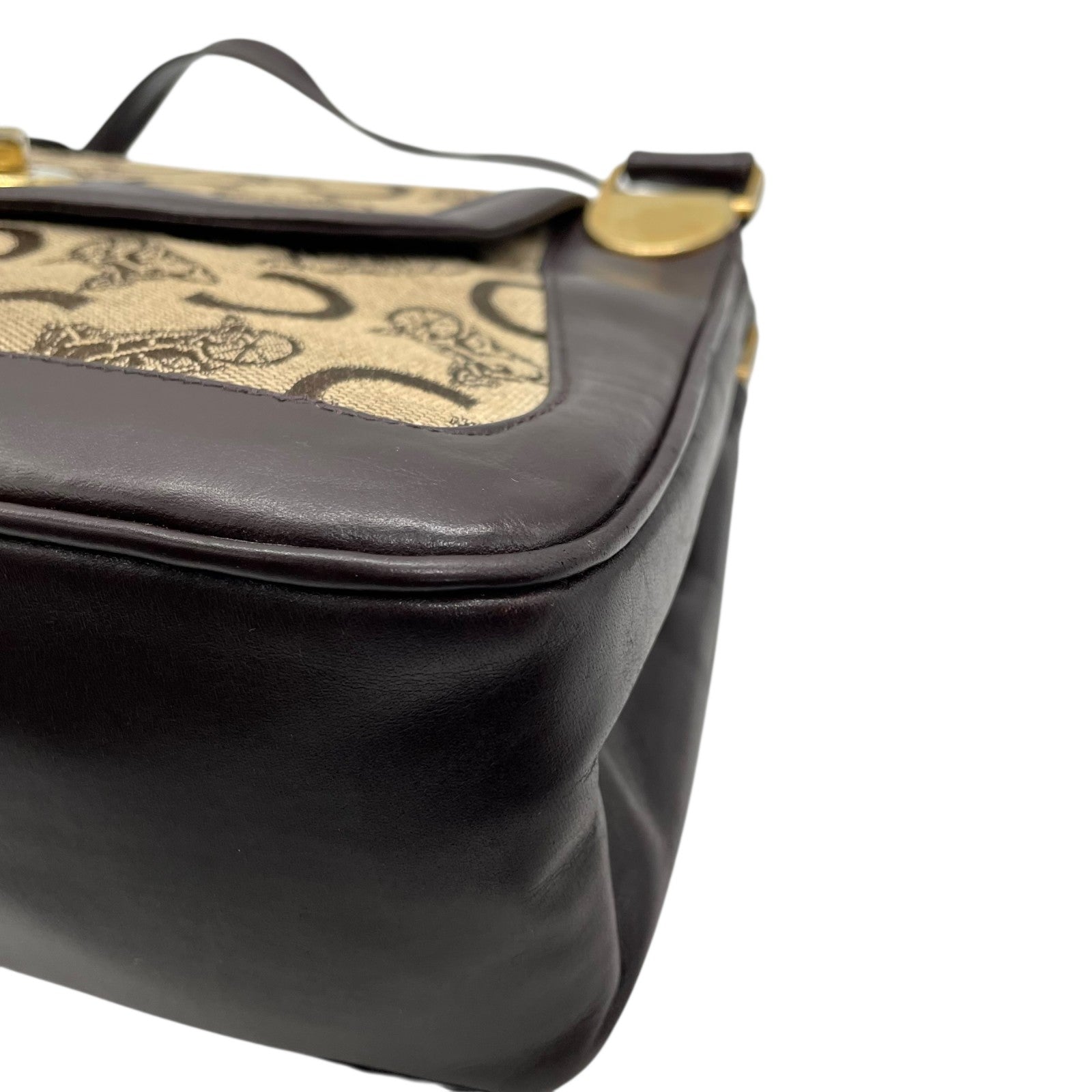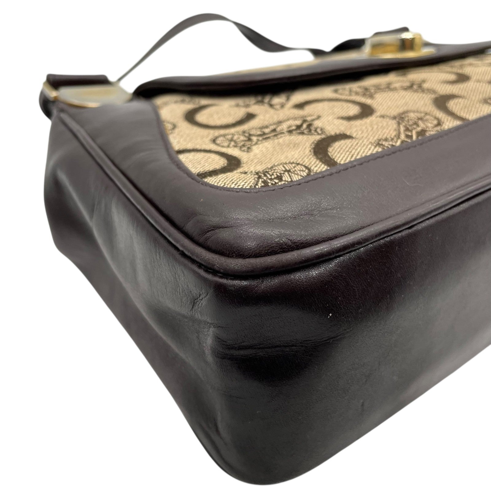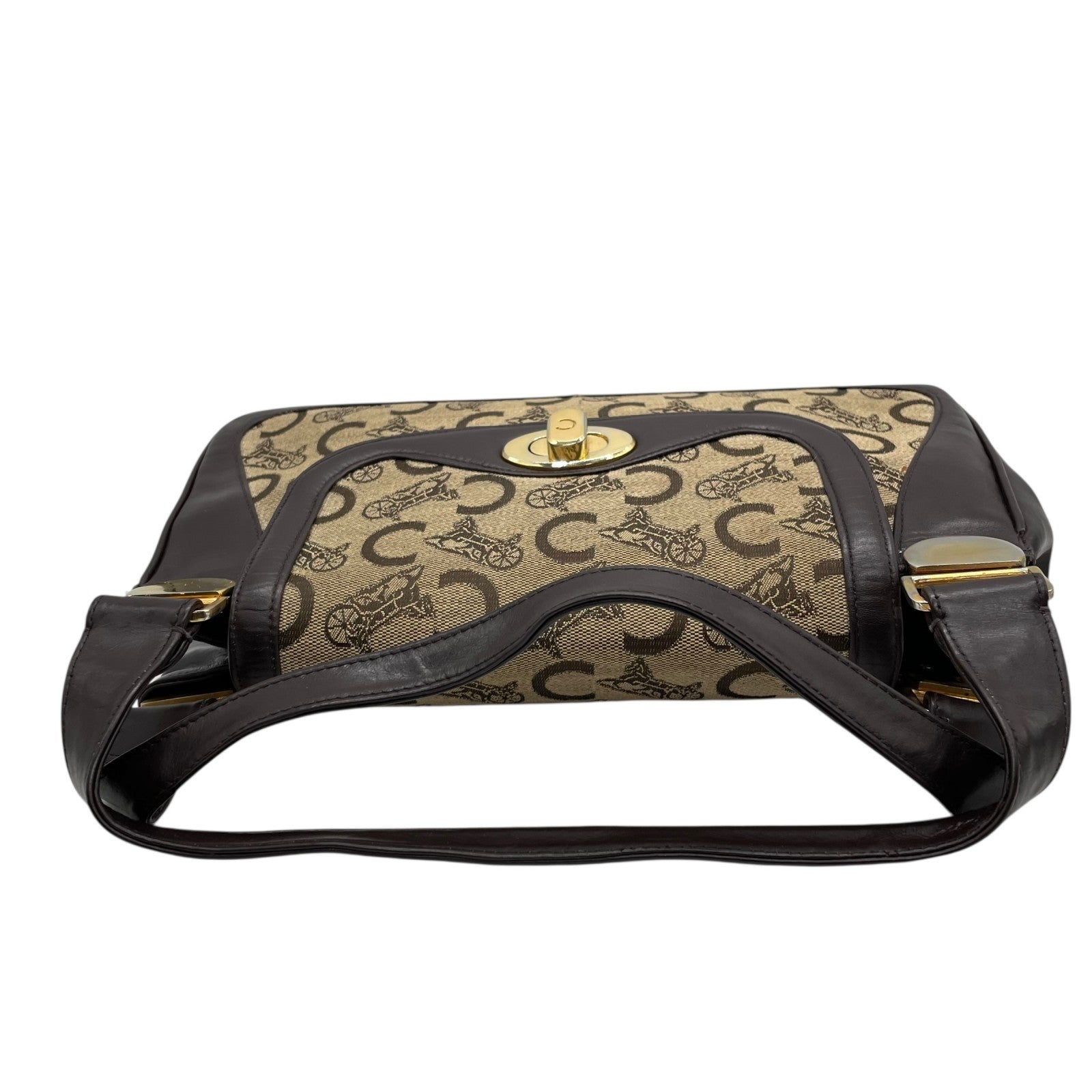 Authentic CELINE C Macadam Turnlock Handbag Canvas Leather Brown Gold Hardware Women