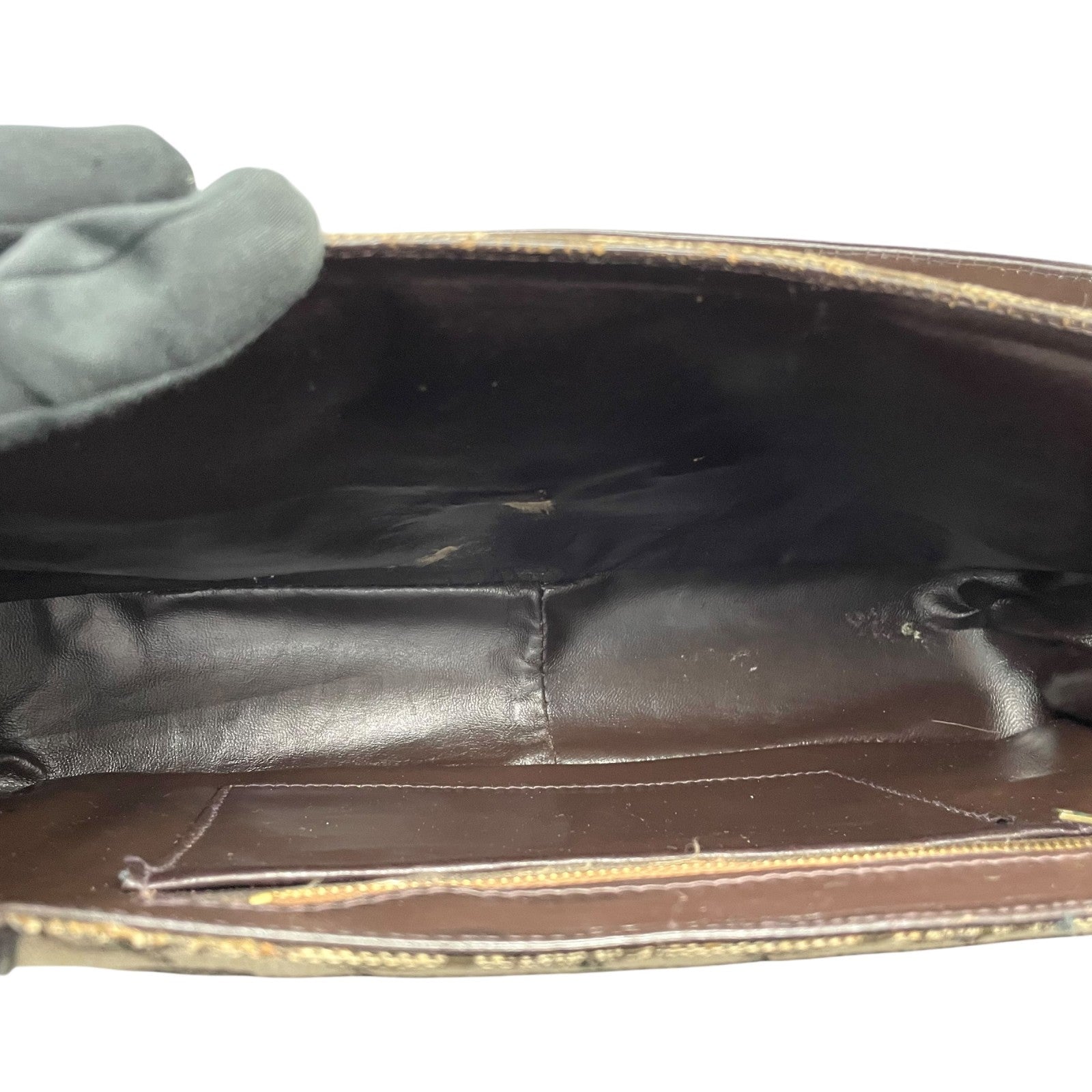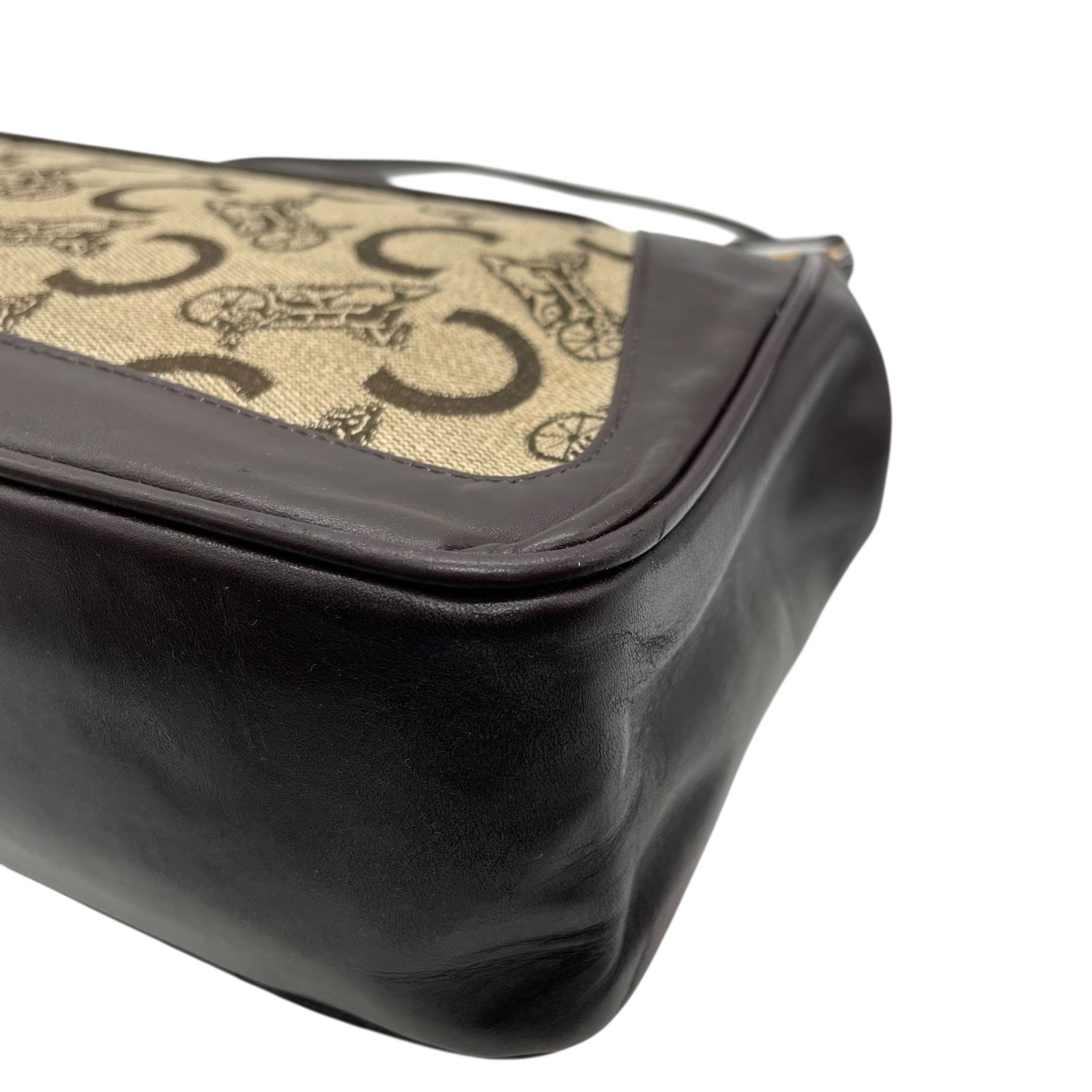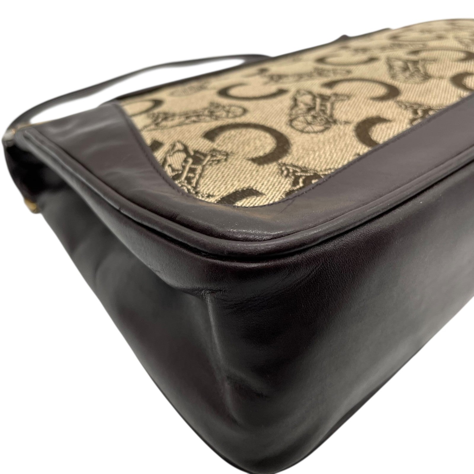 Authentic CELINE C Macadam Turnlock Handbag Canvas Leather Brown Gold Hardware Women