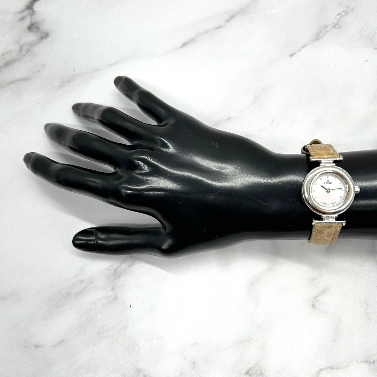 Authentic FENDI 088-320L-019 Ladies Watch White Dial Silver Case StrapUsed