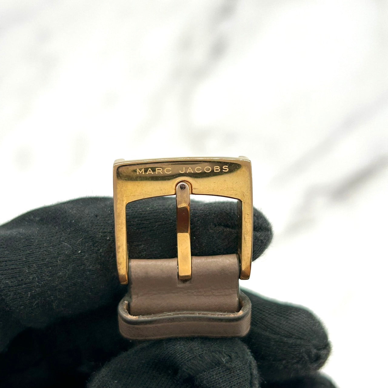 Authentic MARC JACOBS MJ1533 Watch Quartz White Dial Gold Case Brown Leather