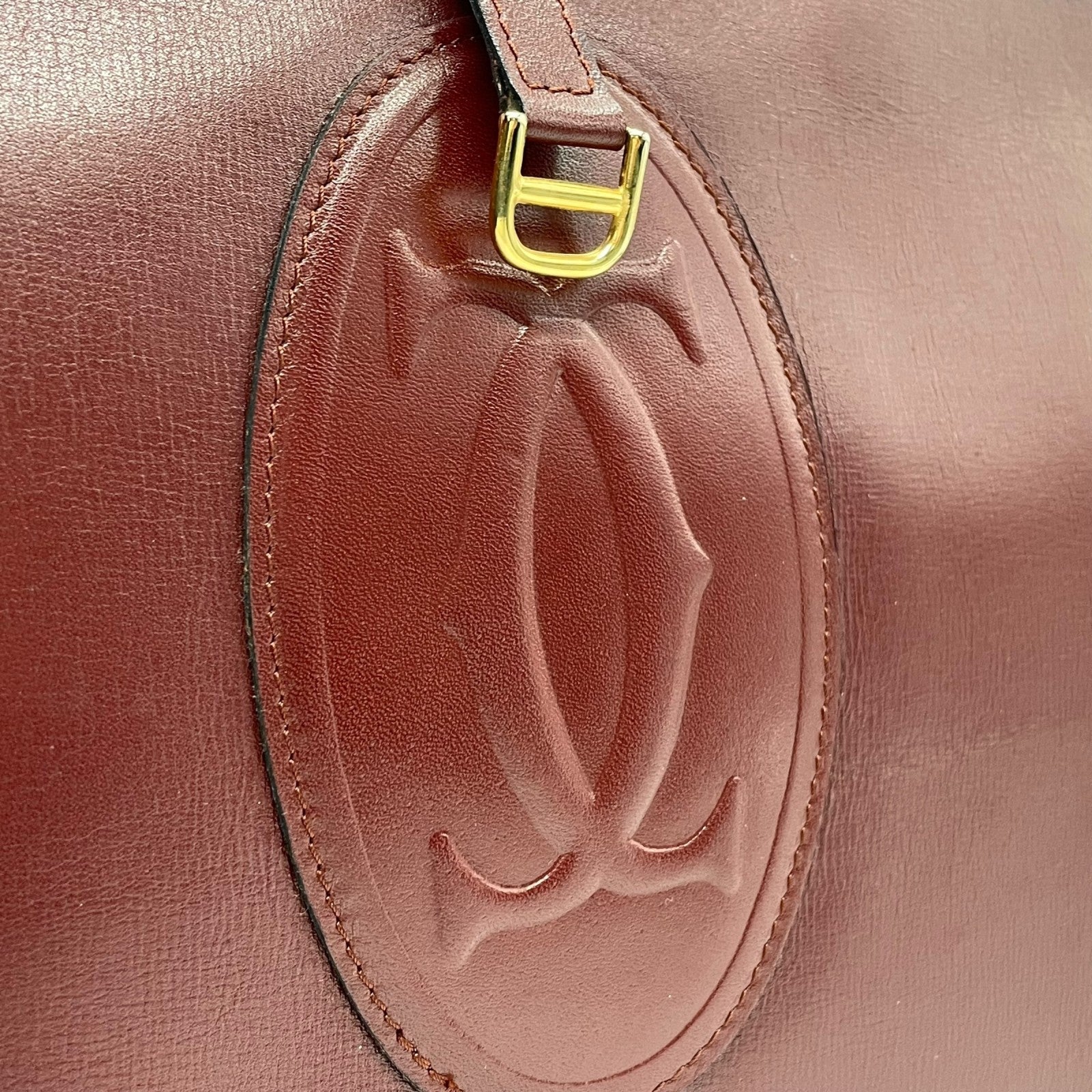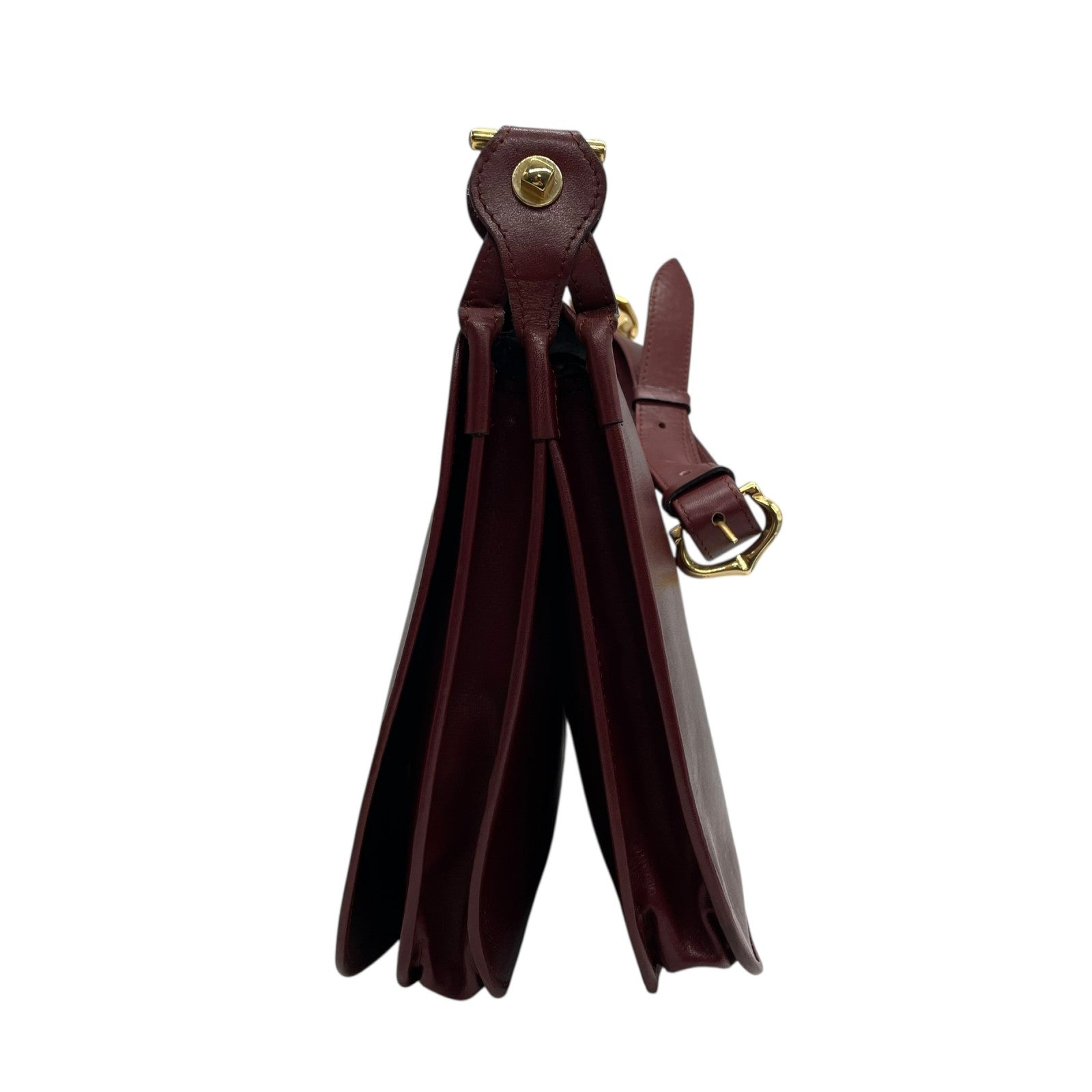 Authentic Cartier Must Line Shoulder Bag Crossbody Burgundy Wine Red Gold Hardware Leather Vintage Women's