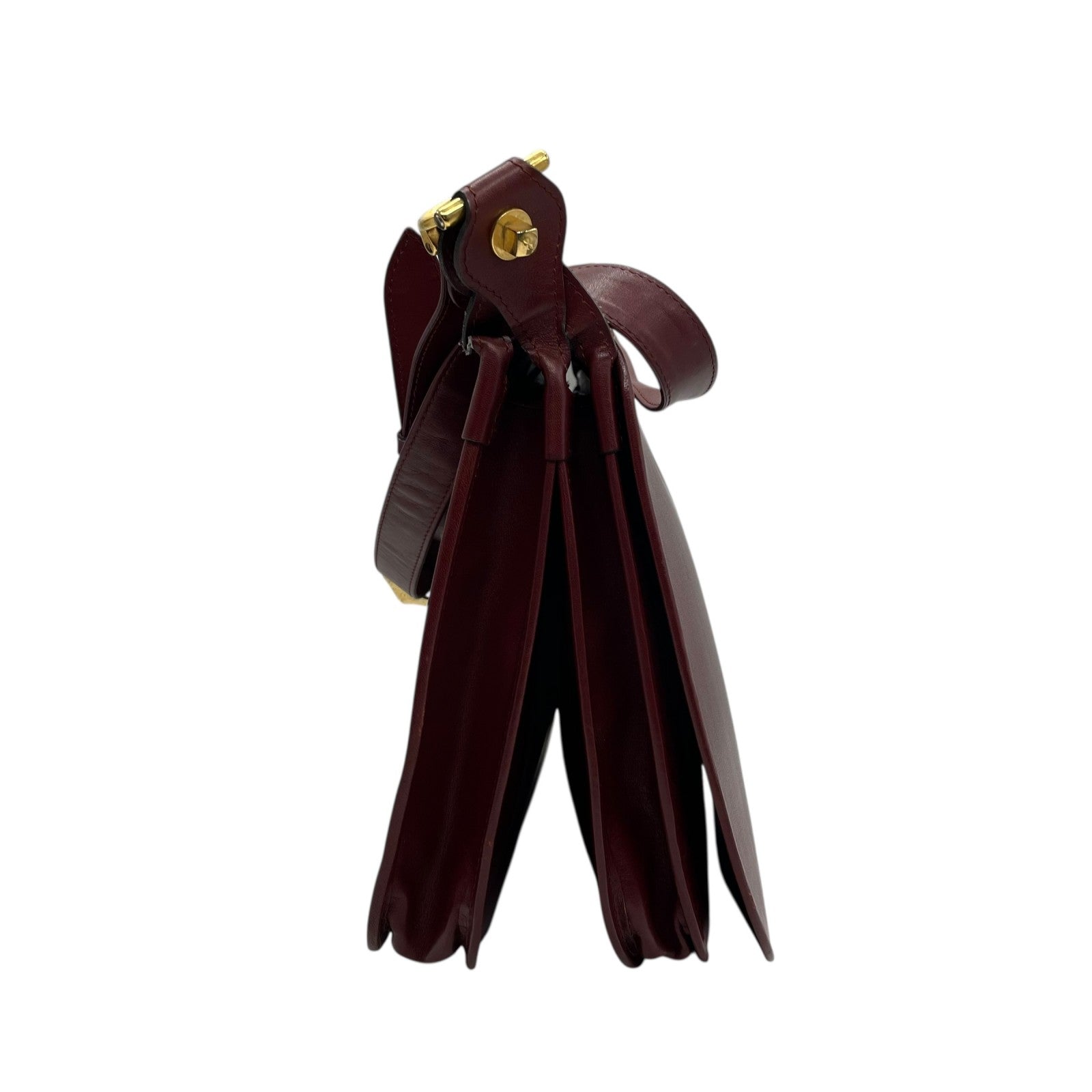 Beautiful Cartier Must Line Shoulder Bag for Women, Bordeaux, Wine Red, and Gold Metallic Leather with a Vintage Cartier Flap, K9 finish.
