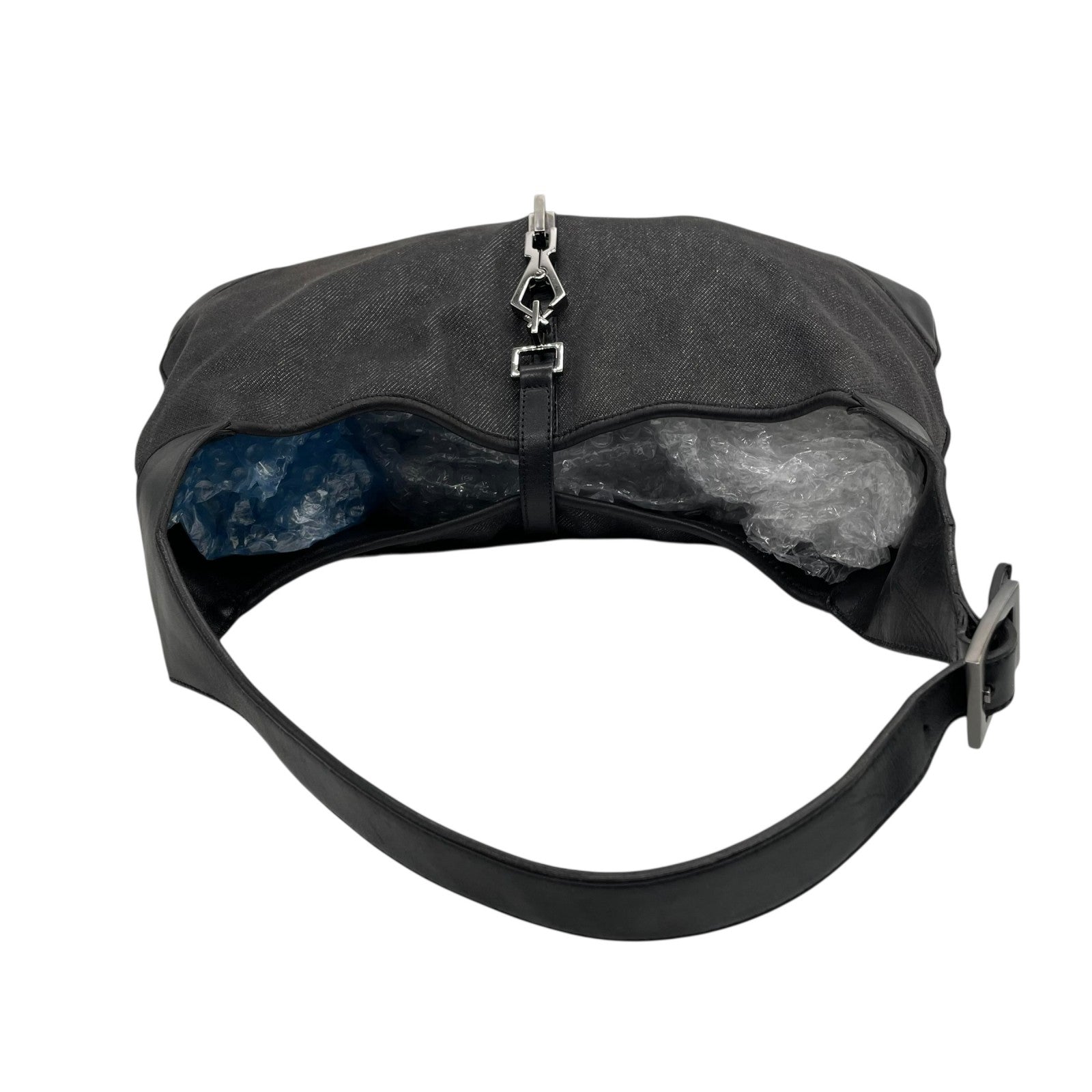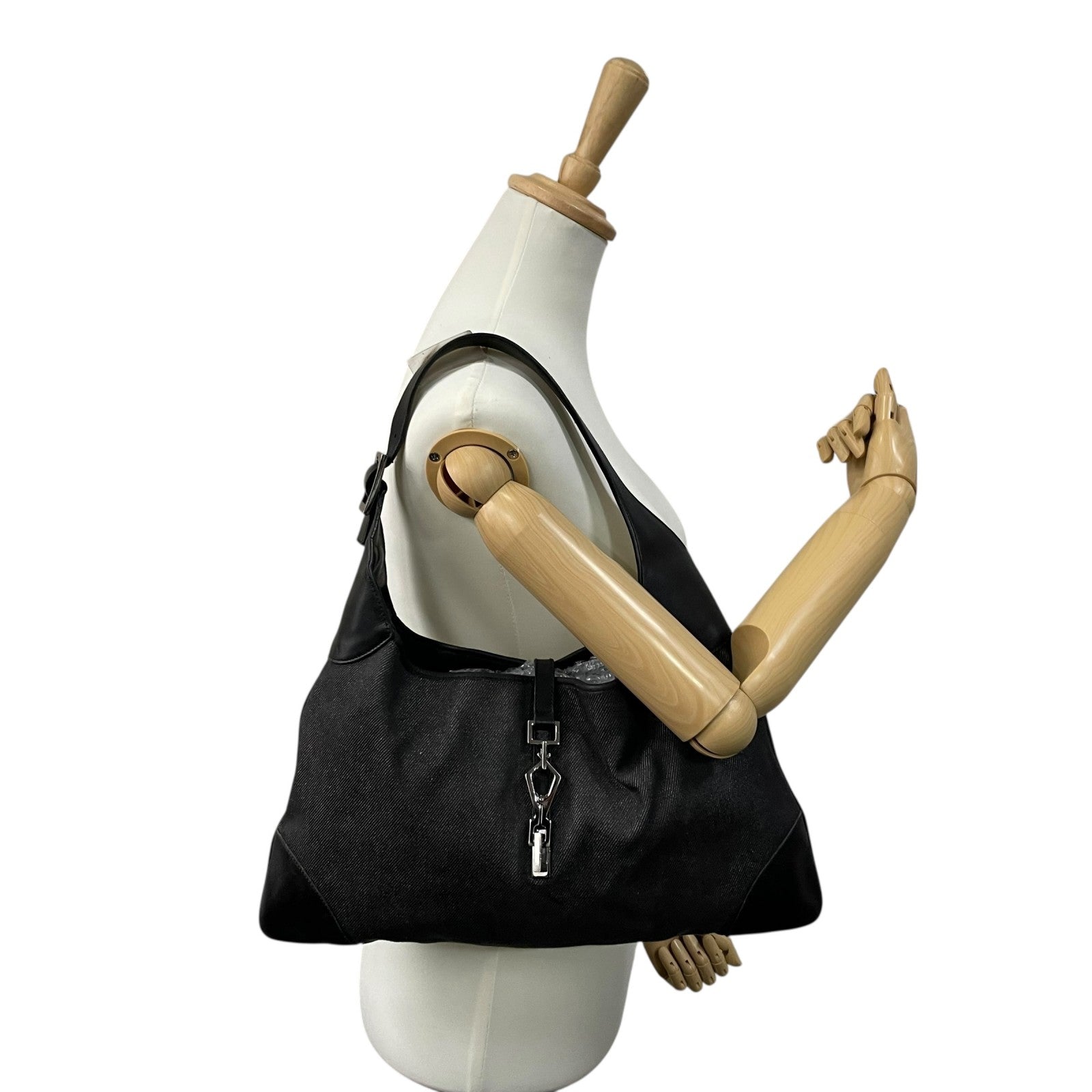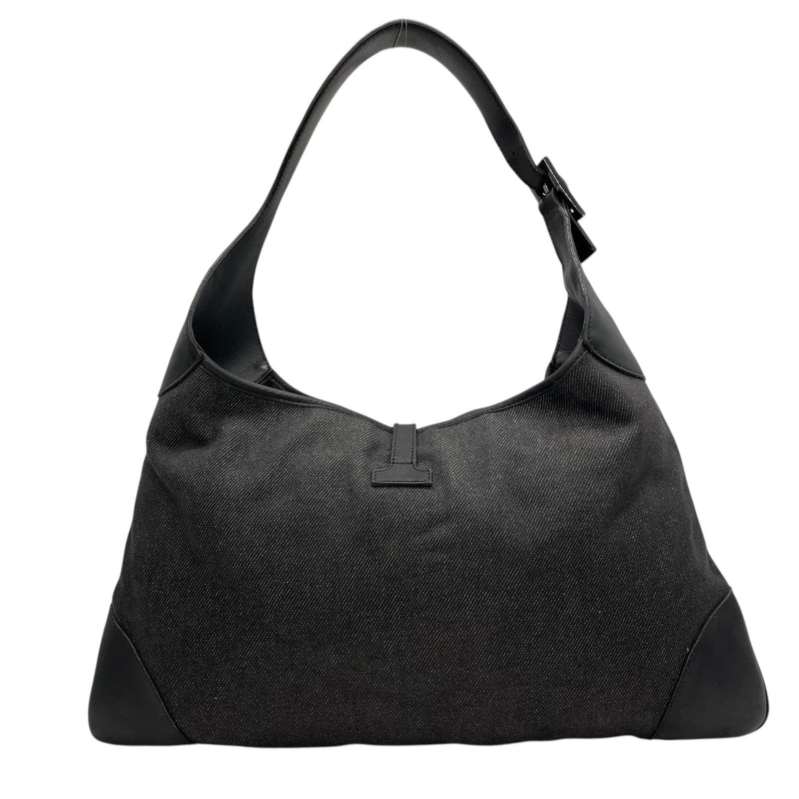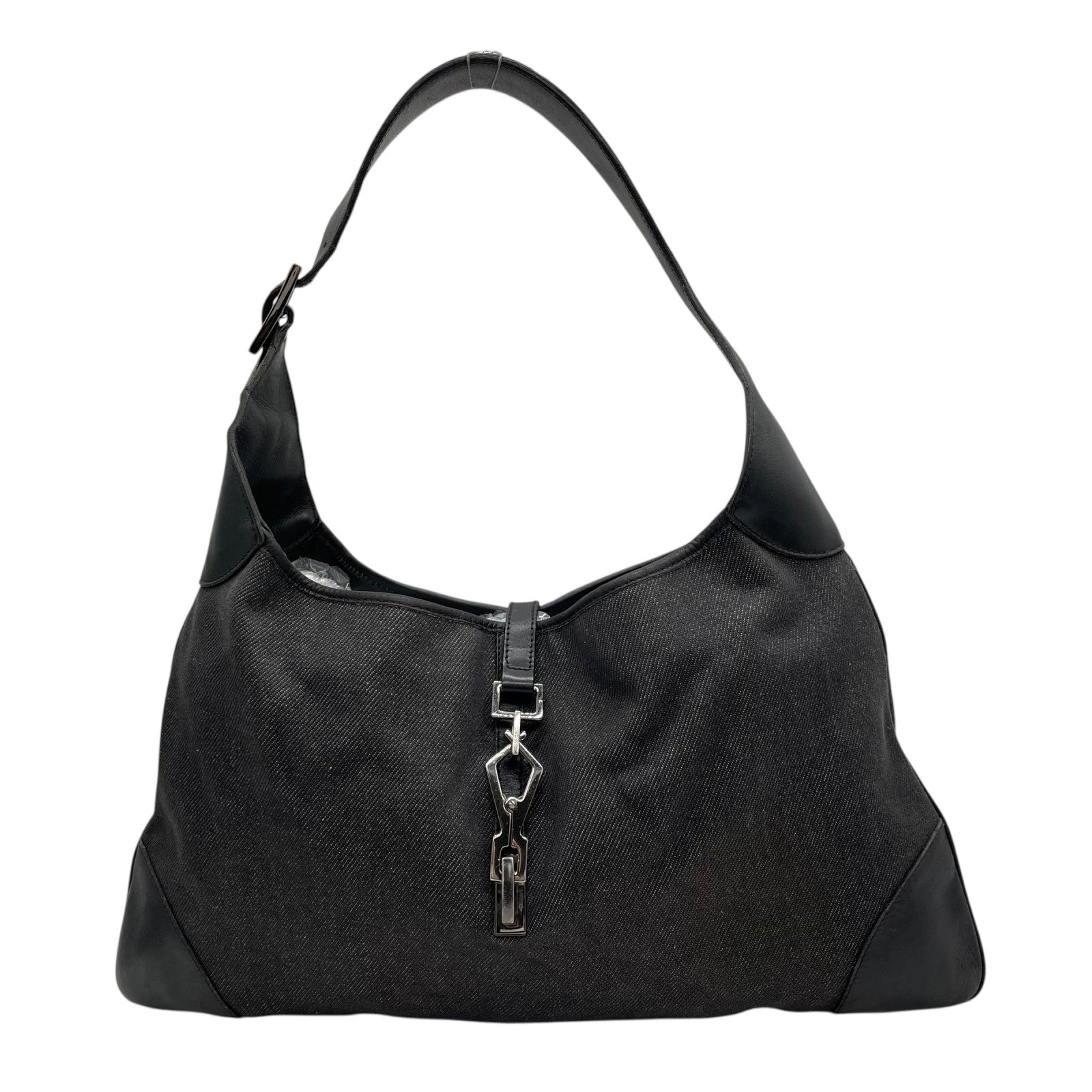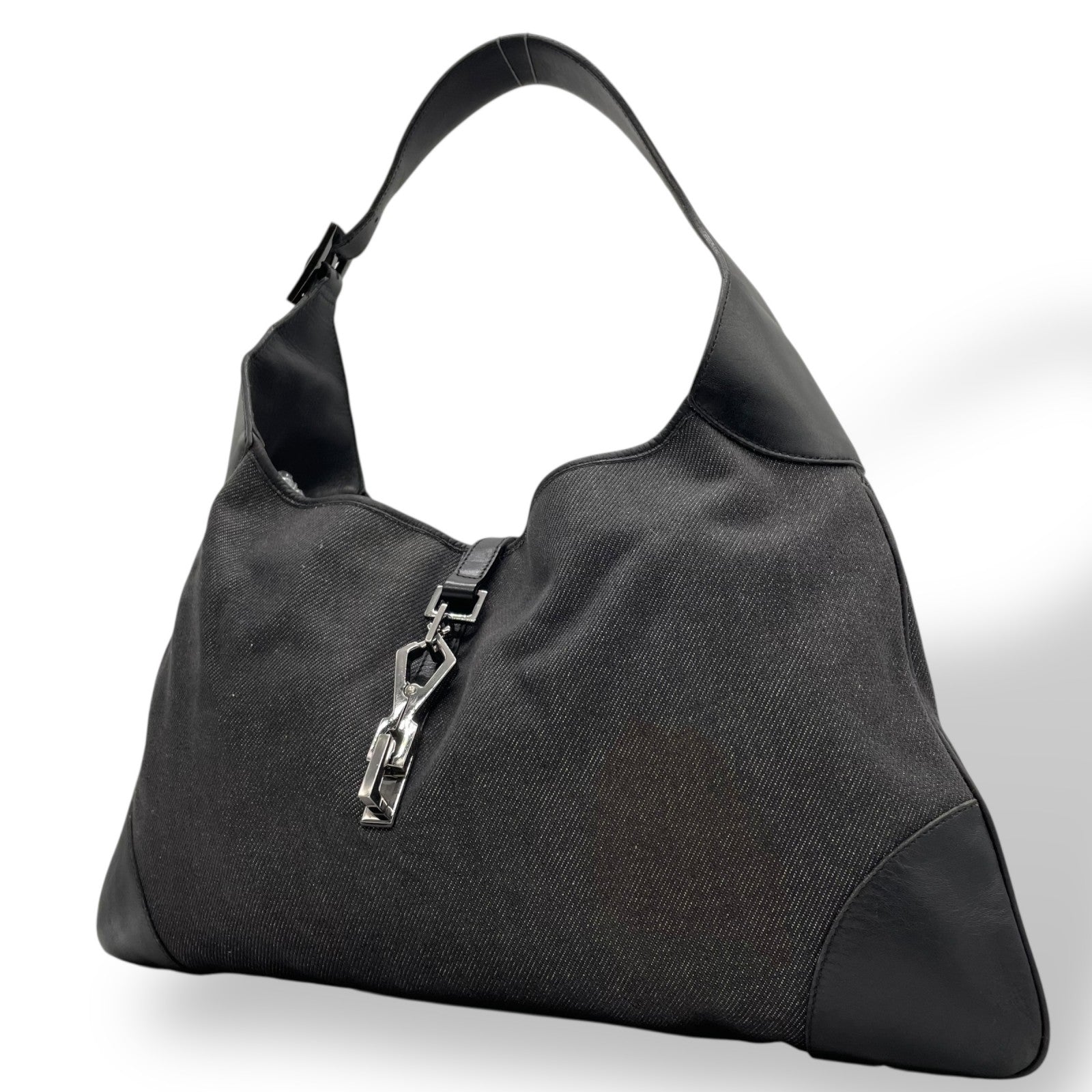 Excellent condition Gucci One Shoulder Bag 28629 Jackie, black canvas and leather with genuine leather logo. Black Metallic finish. Can be worn over the shoulder. Women's. Z3