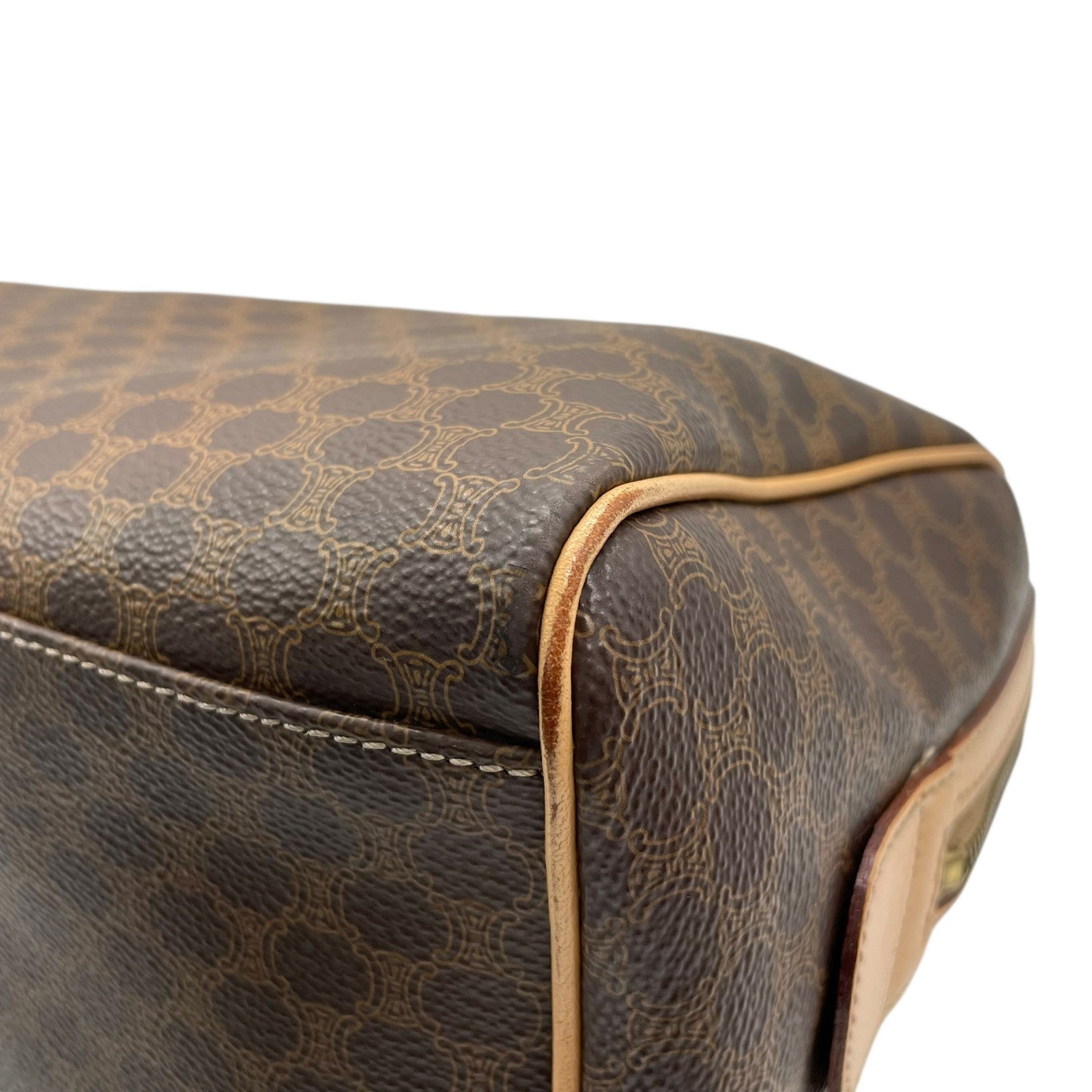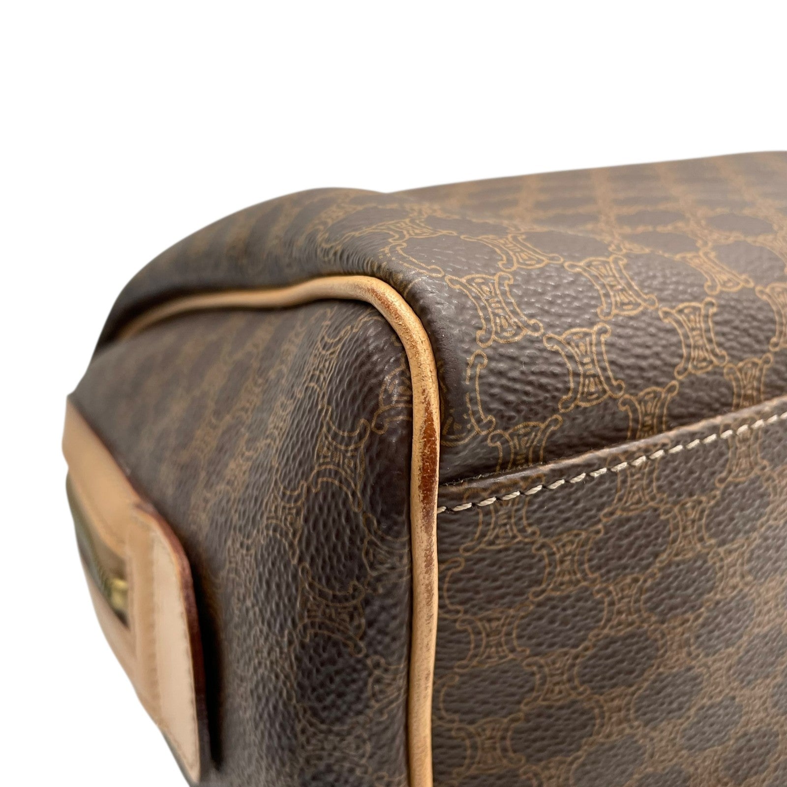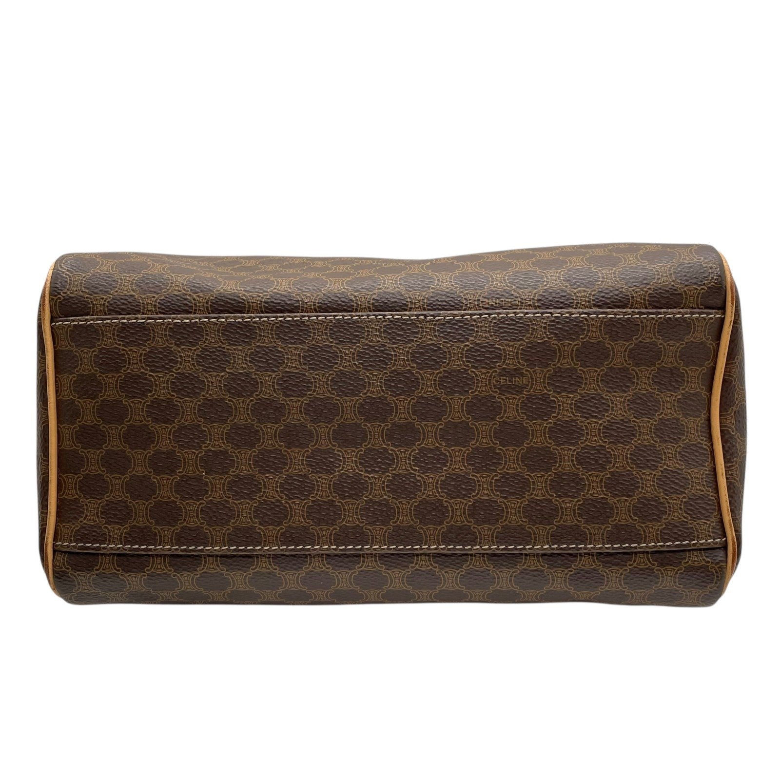 Excellent condition Celine Macadam Pattern 2-way handbag/mini Boston bag/shoulder bag in PVC and genuine leather with dark brown and gold metal zip closure. Can be worn crossbody. Women's Triomphe D.