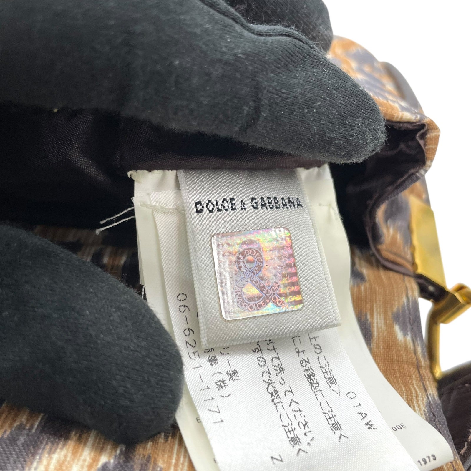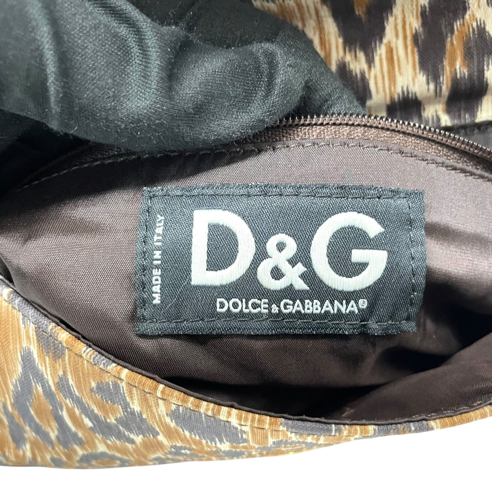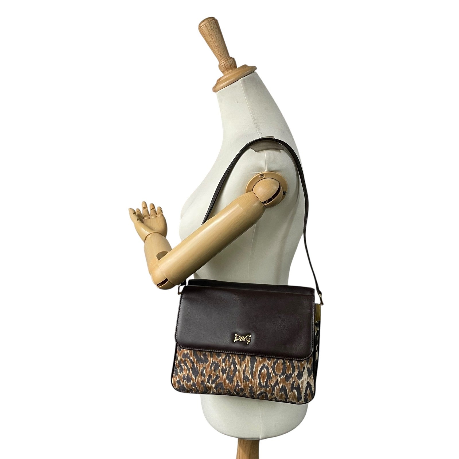 Excellent condition DOLCE & GABBANA Leopard Pattern Shoulder Bag in genuine leather and canvas, brown, with a D&G logo flap and gold metal accents. C5.