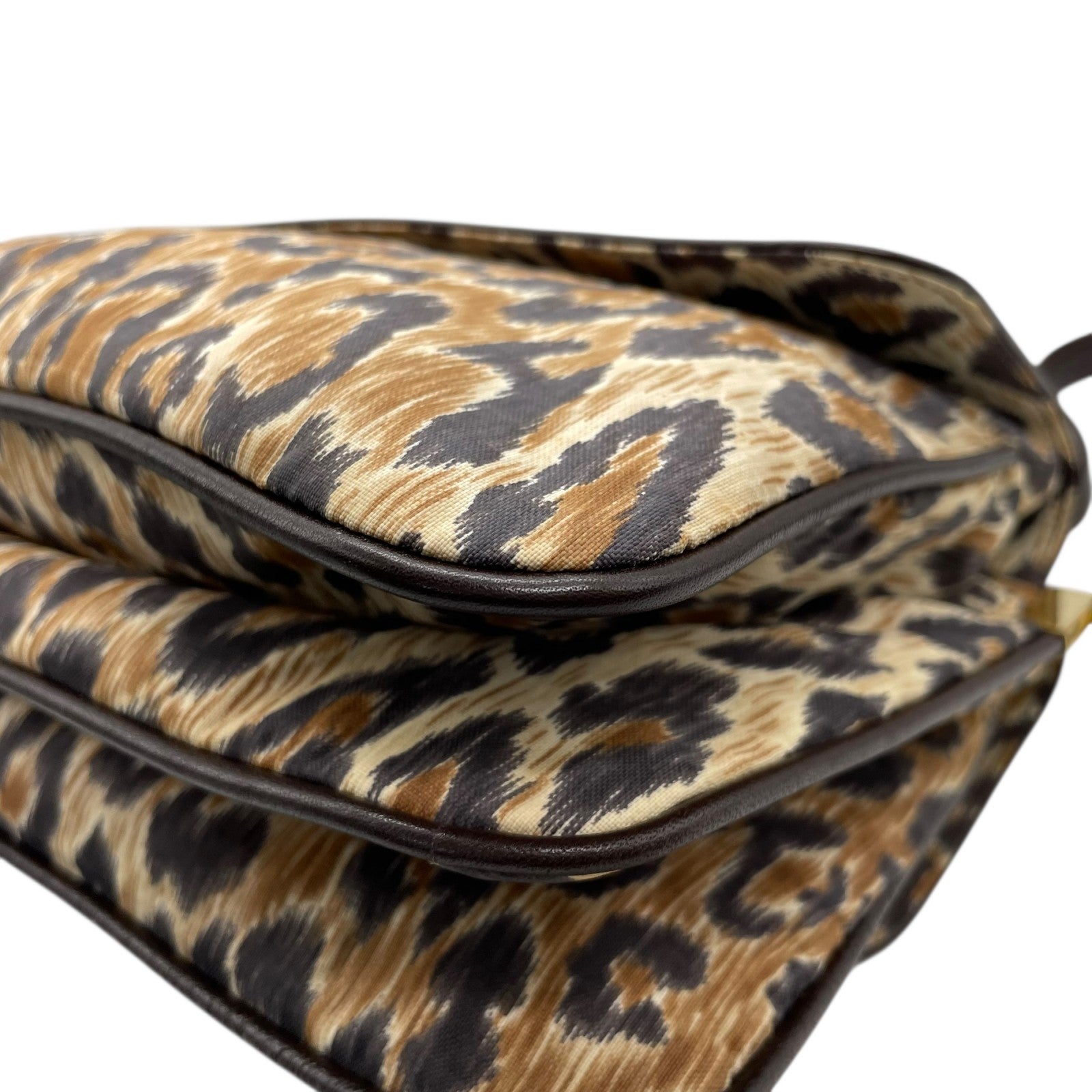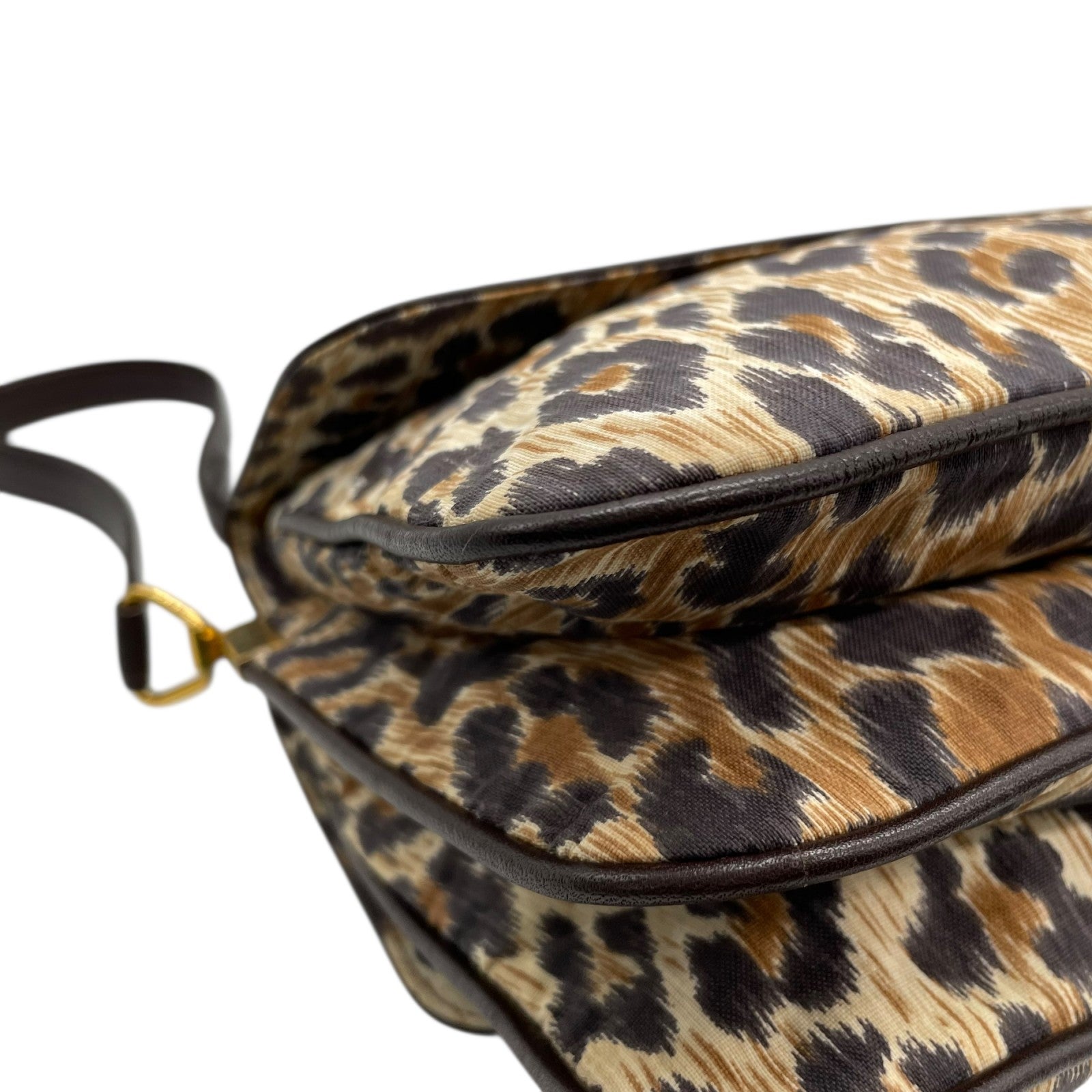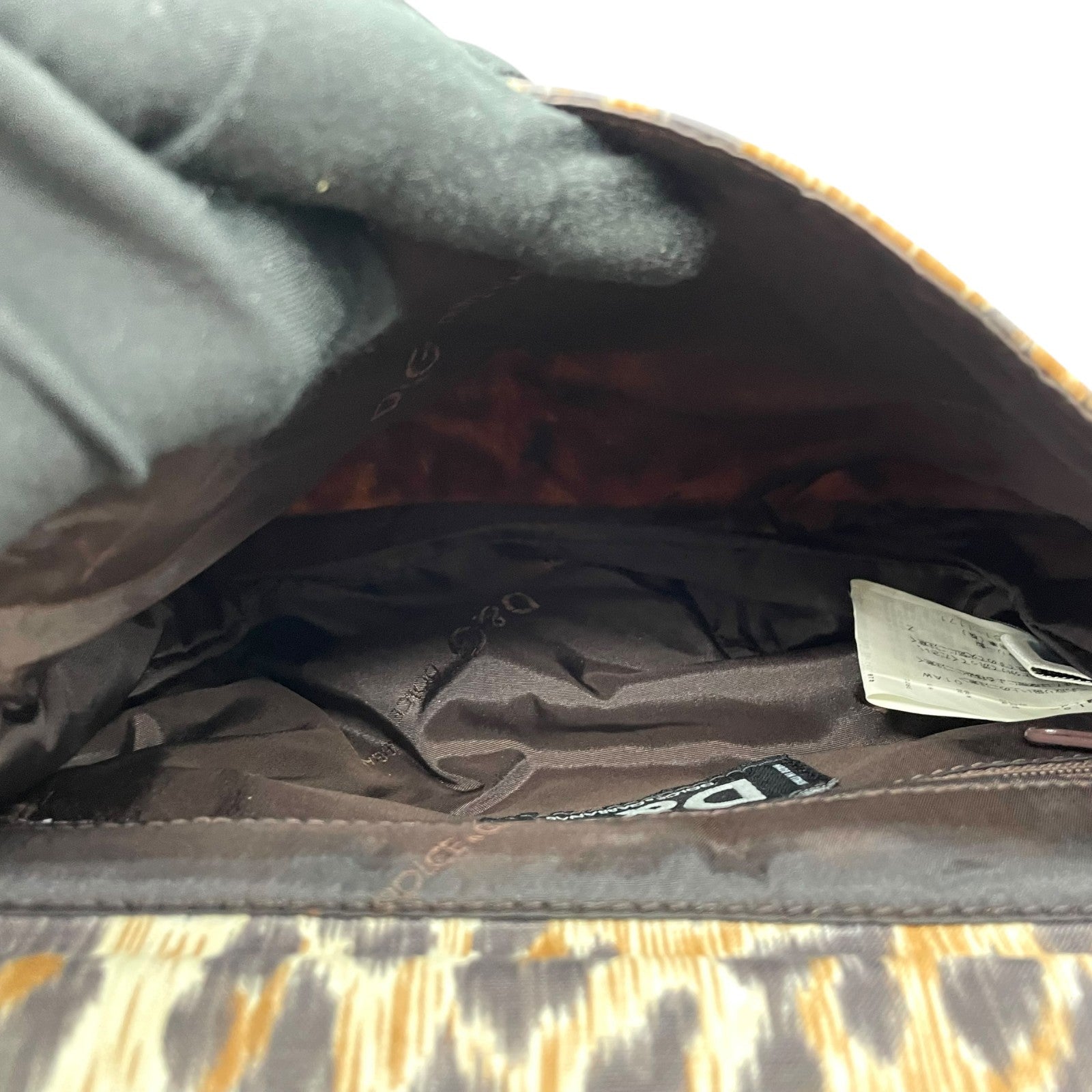 Excellent condition DOLCE & GABBANA Leopard Pattern Shoulder Bag in genuine leather and canvas, brown, with a D&G logo flap and gold metal accents. C5.