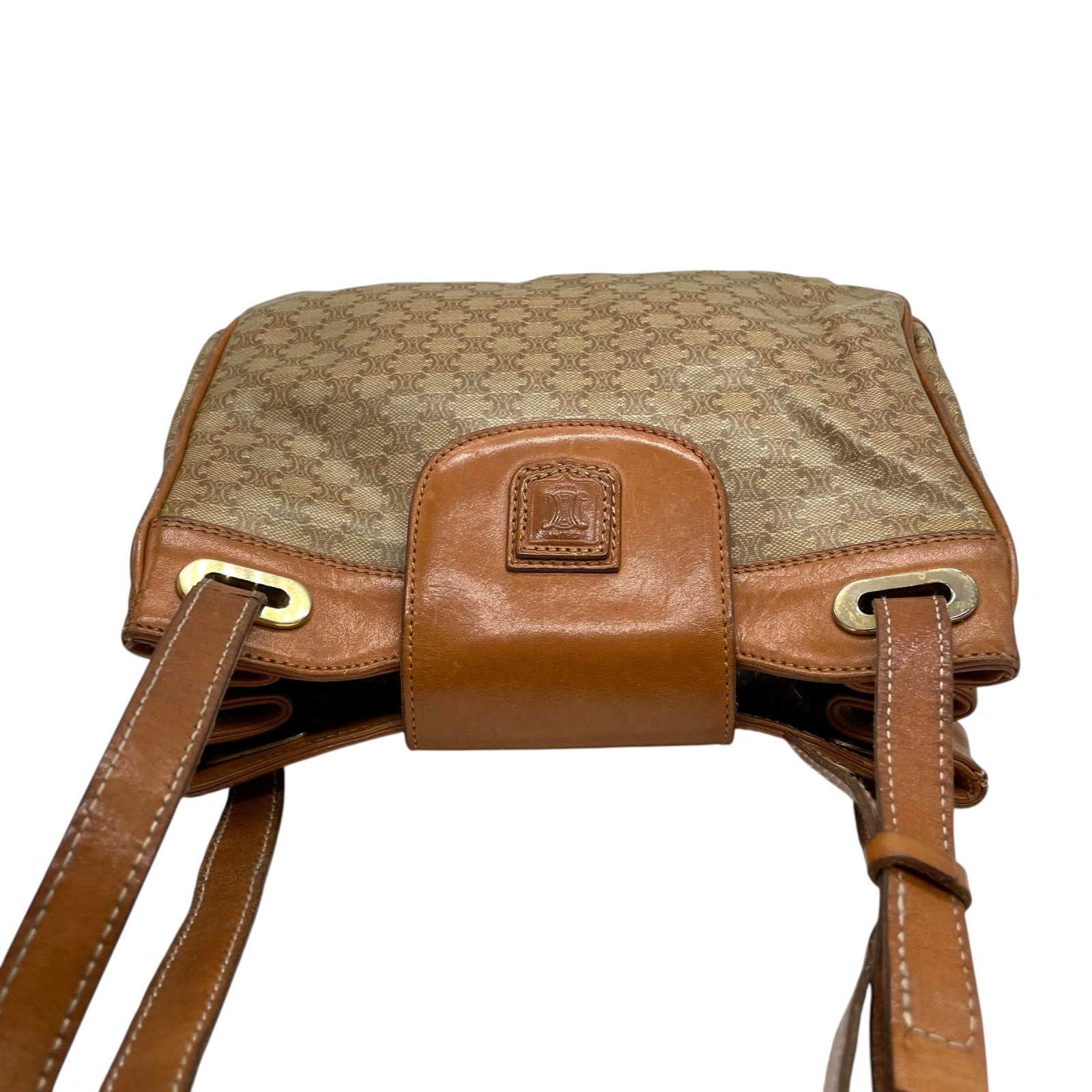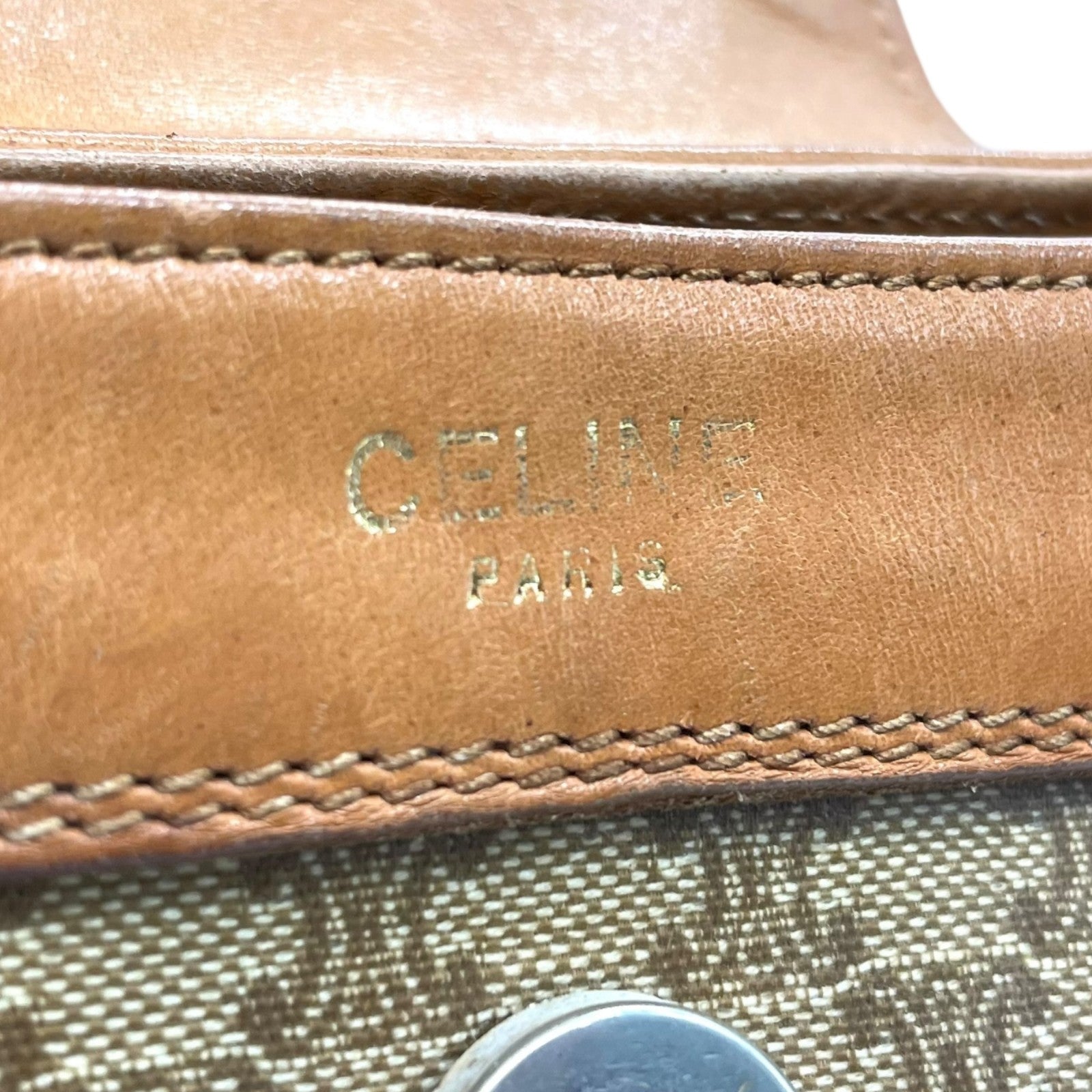 Authentic CELINE Macadam Trionf Shoulder Bag Beige Brown PVC Leather Gold Hardware Women's Flap
