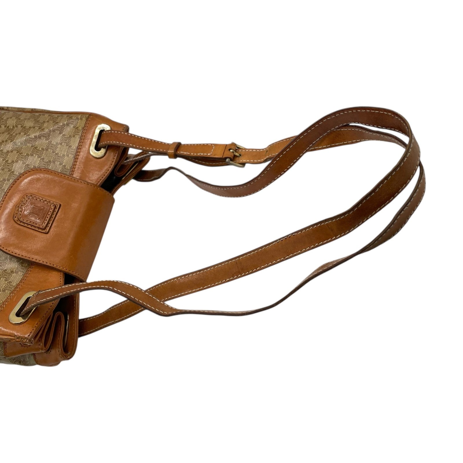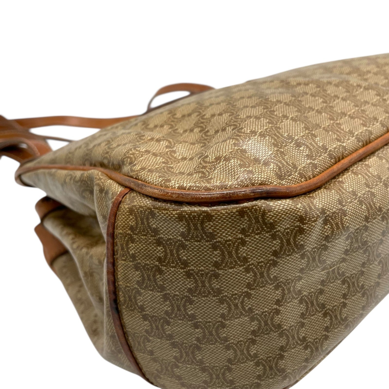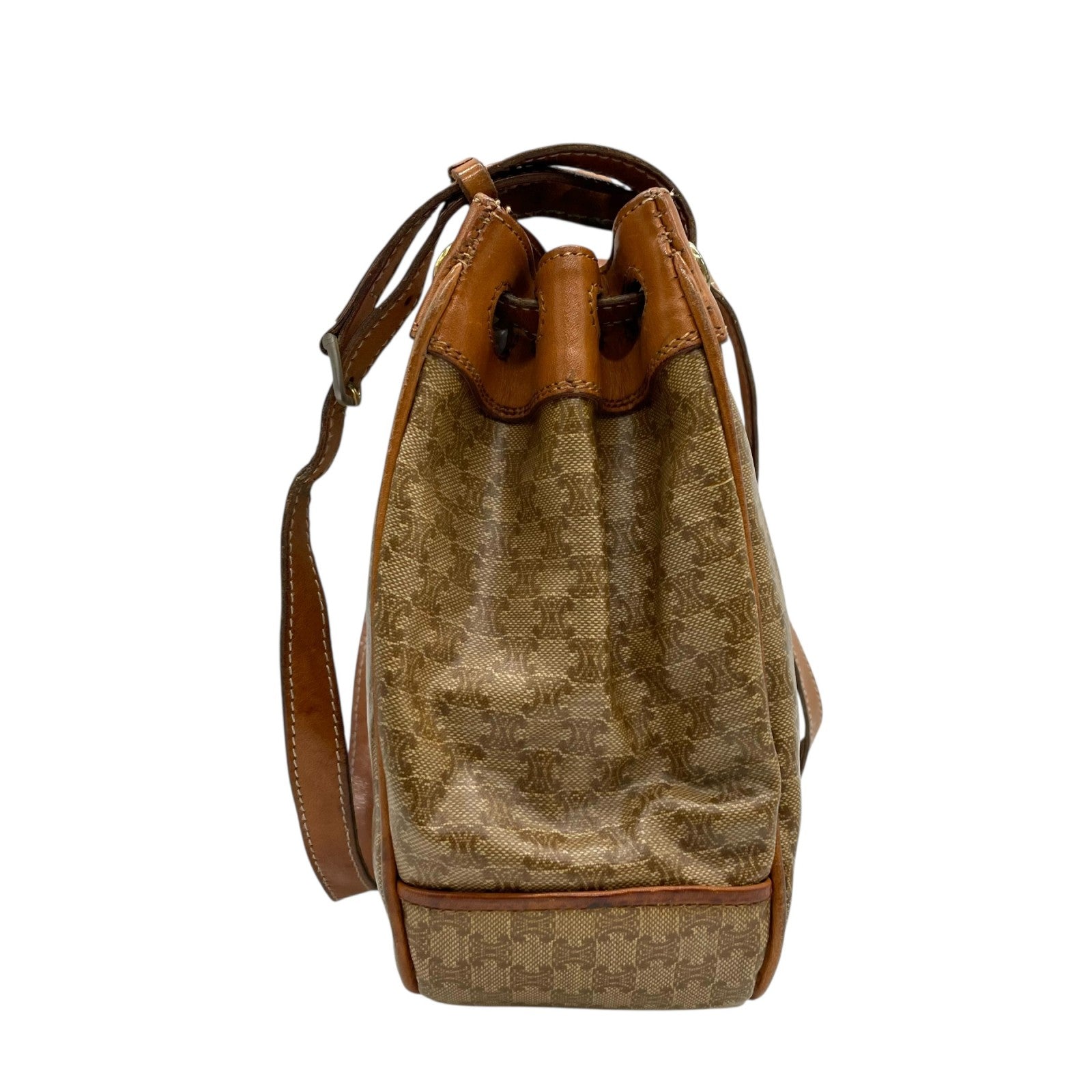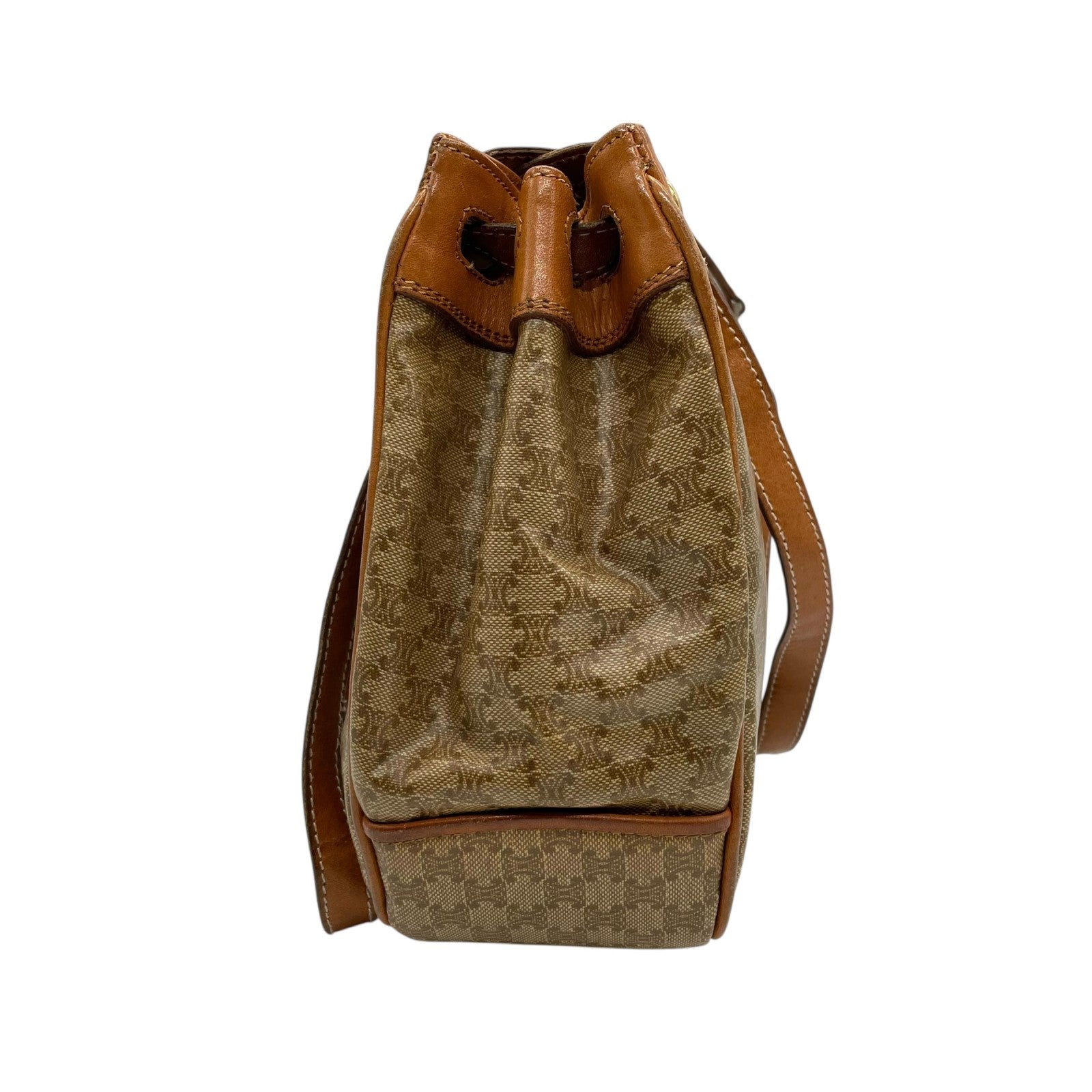 Celine Macadam Triomphe Shoulder Bag in Beige and Brown, PVC and Leather with Gold Metal Flap, Women's, D2