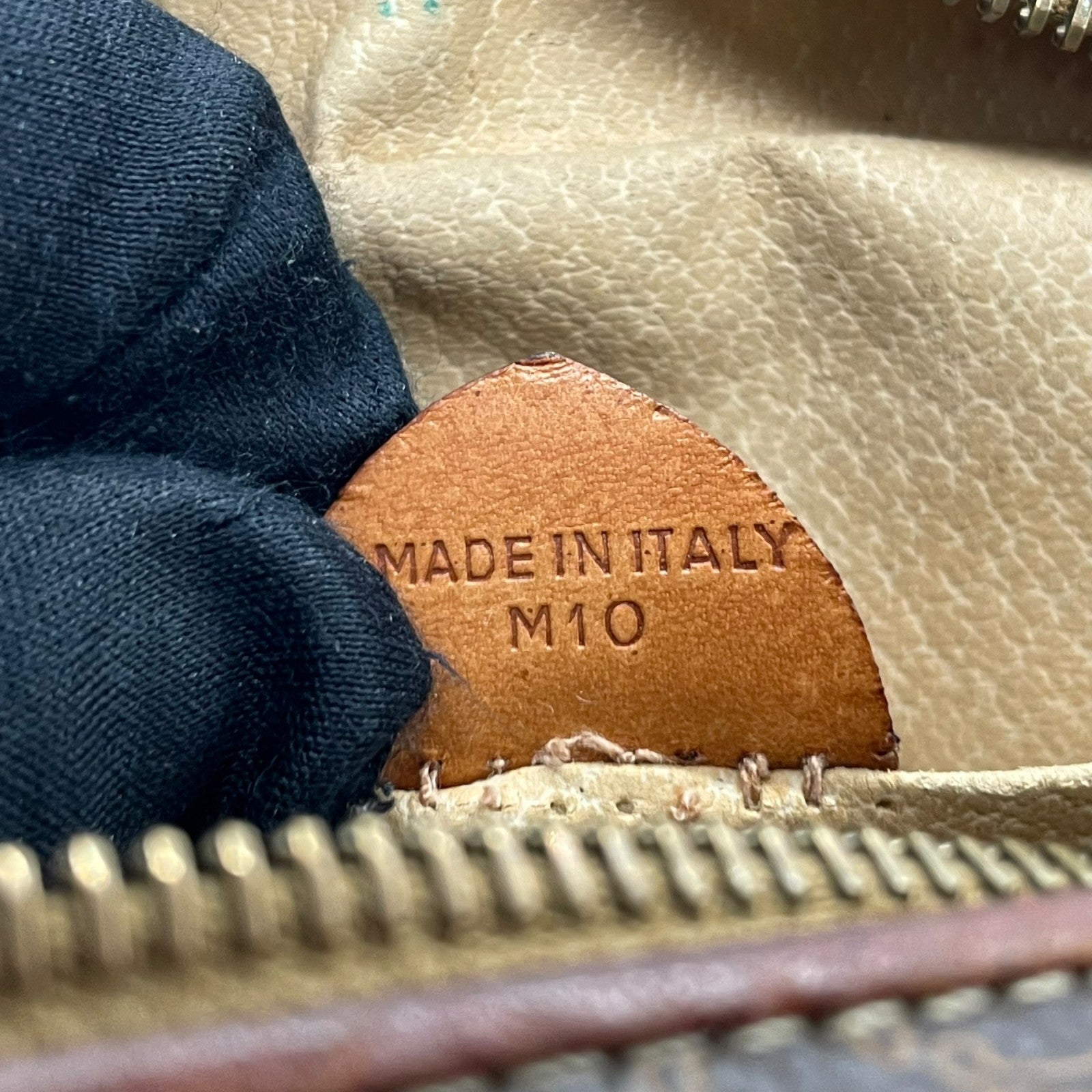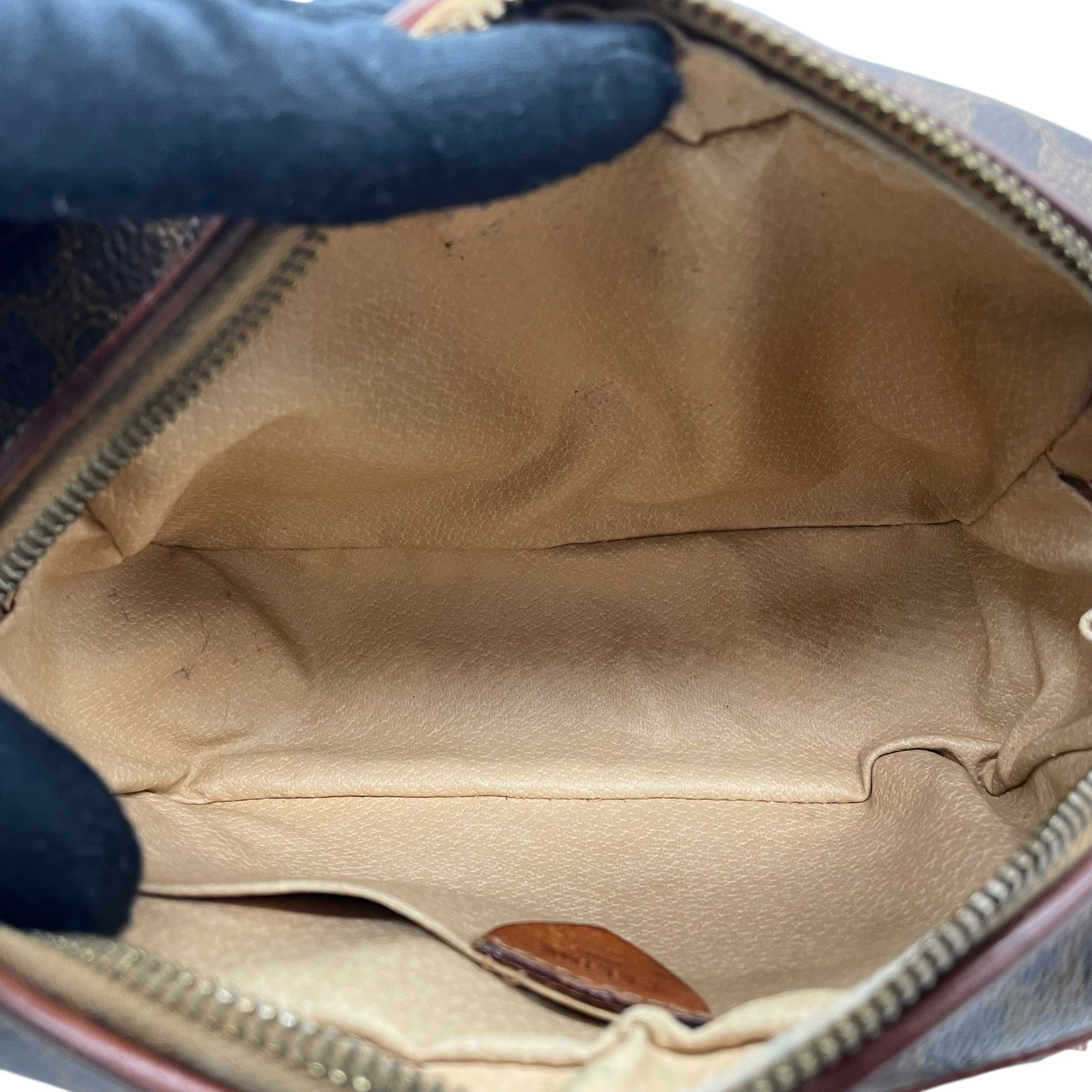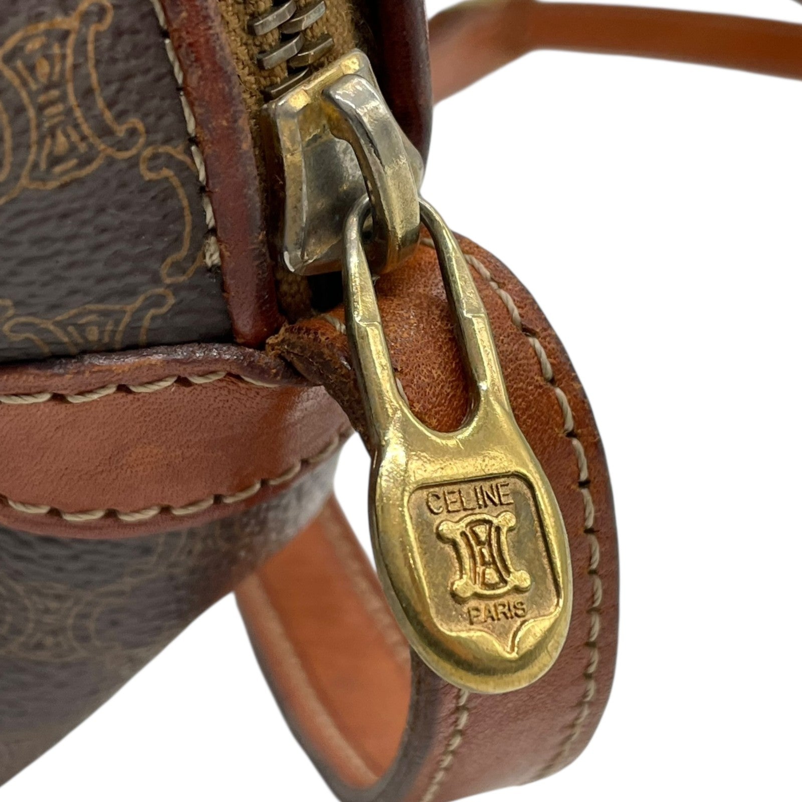 CELINE Macadam Pattern Shoulder Bag, Vintage, Brown and Gold Metal, Triomphe PVC and Leather, Women's, Crossbody, Circle Metal, B3