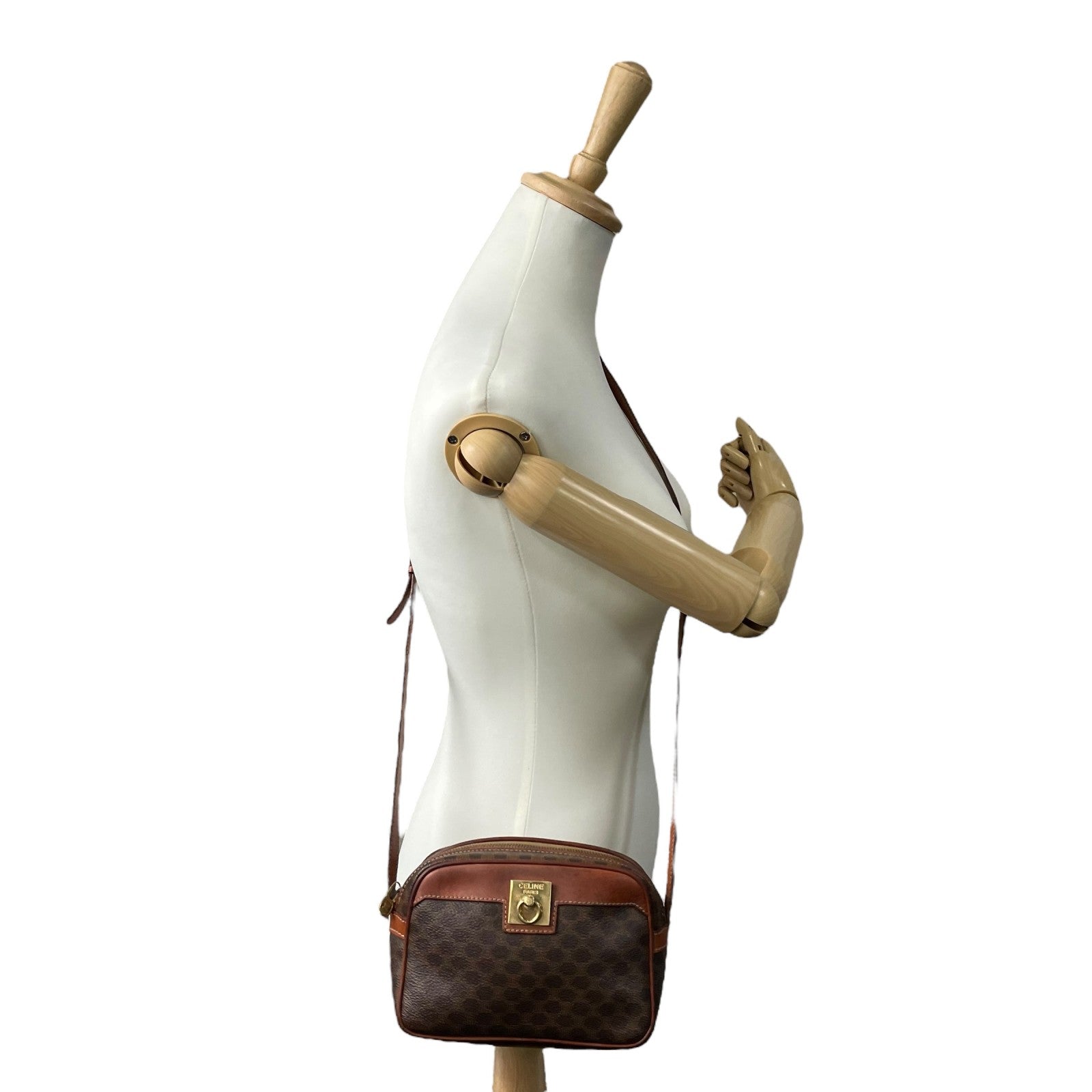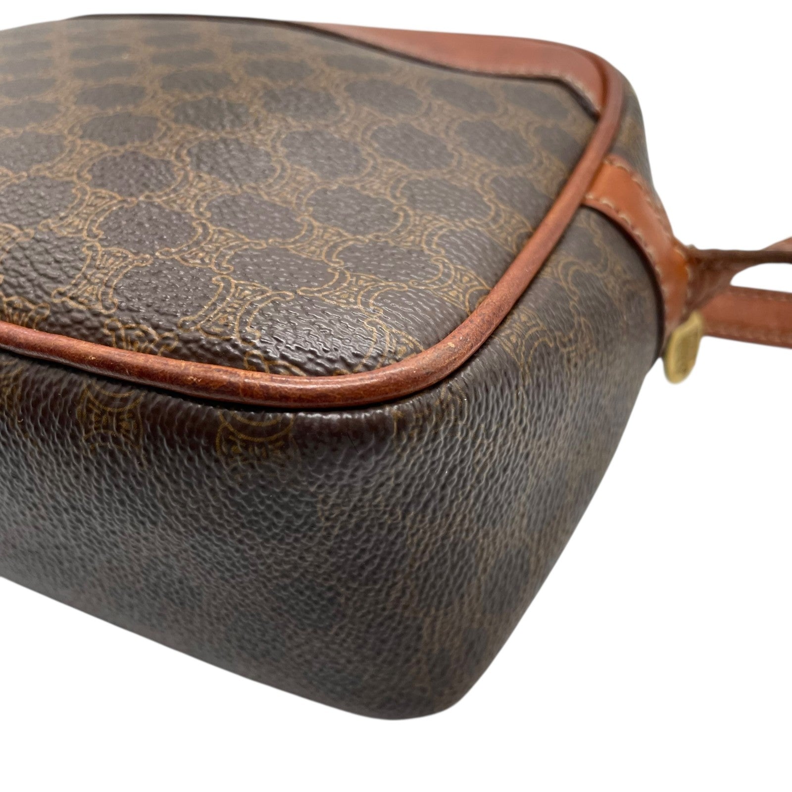 Authentic CELINE Vintage Macadam Shoulder Bag Trionf Camera Bag Brown PVC Leather Gold Hardware Women's Adjustable Strap Crossbody
