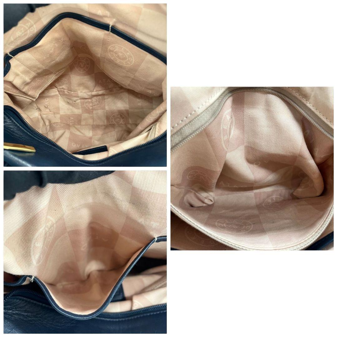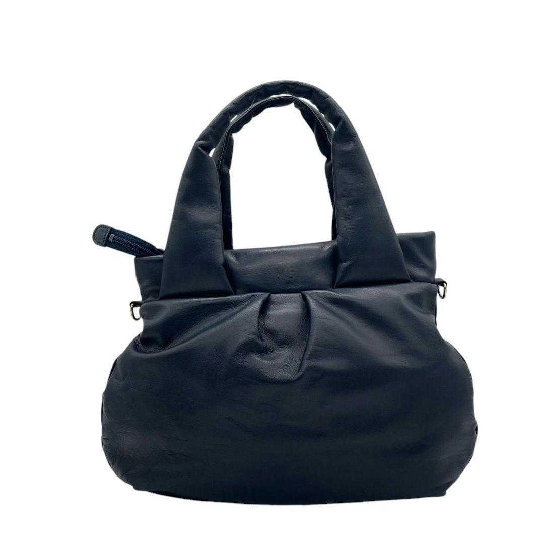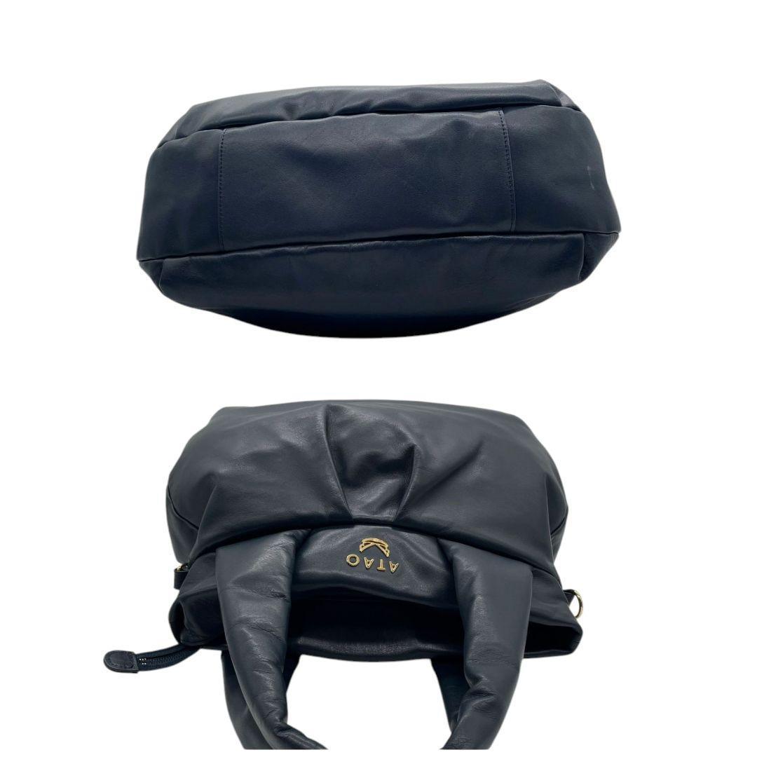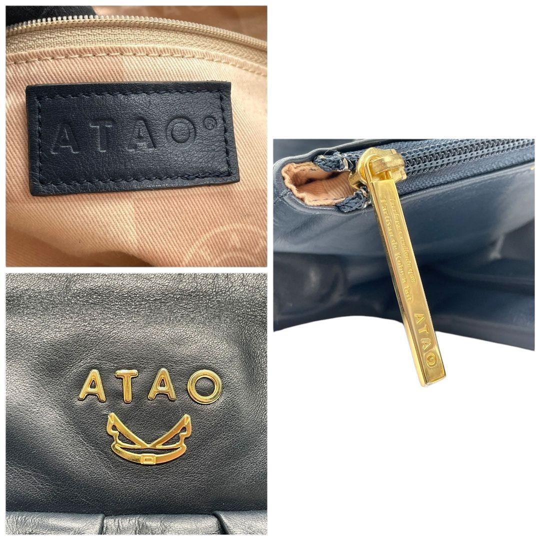 アタオ ハンドバッグ 2way 紺 エミュ レザー ギャザー A4収納 斜め掛け可 ゴールド金具 ロゴプレート 自立可 ATAO ショルダーバッグ トートバッグ