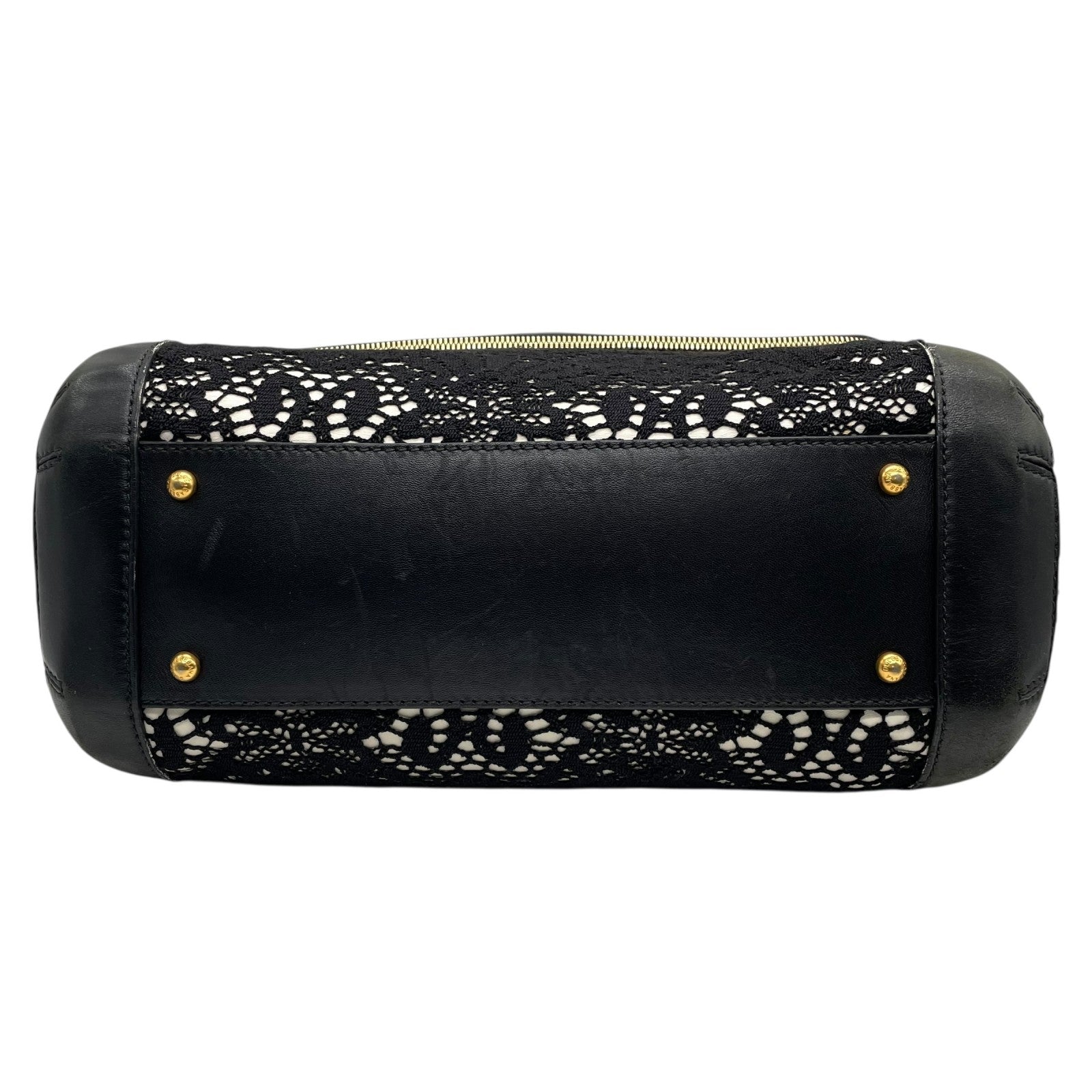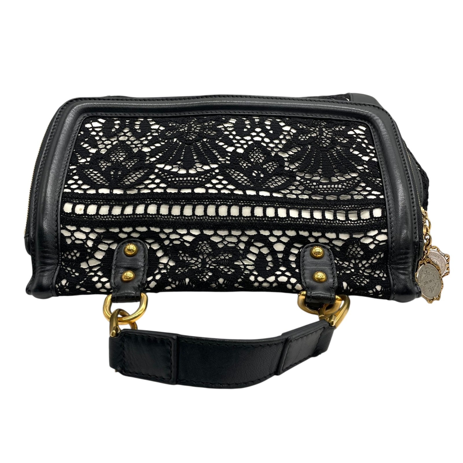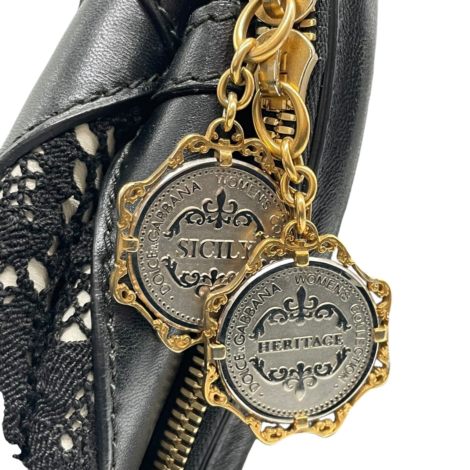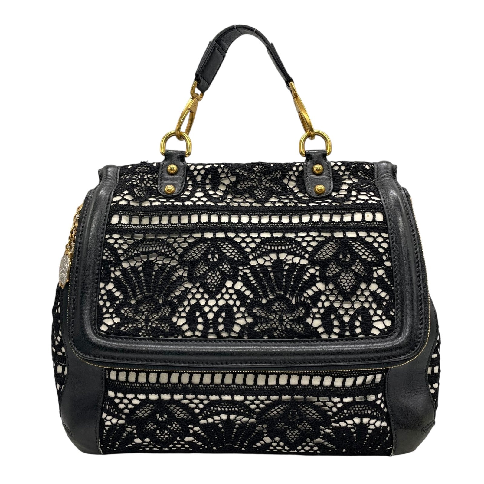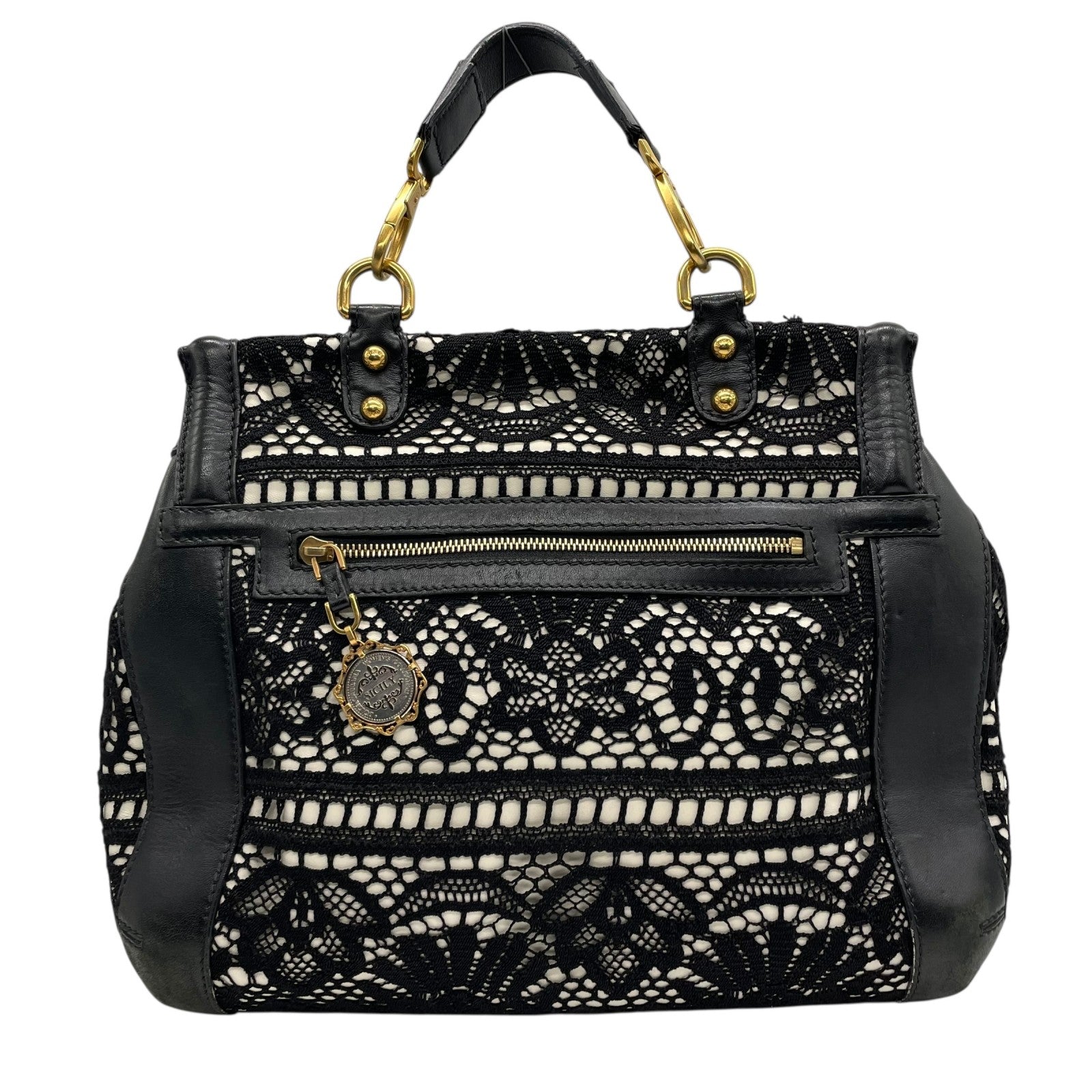 Authentic DOLCE&GABBANA Sicily Heritage 2WAY Handbag Tote Shoulder Bag Black White Ivory Lace Leather Gold Hardware Women's