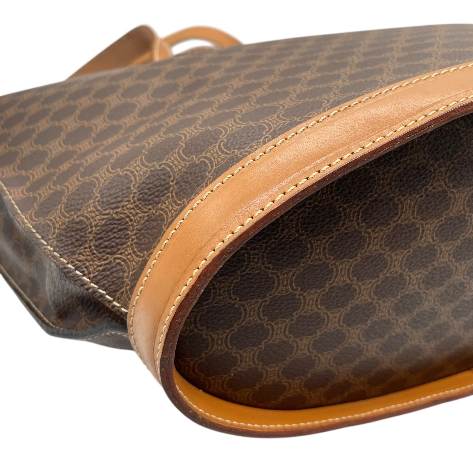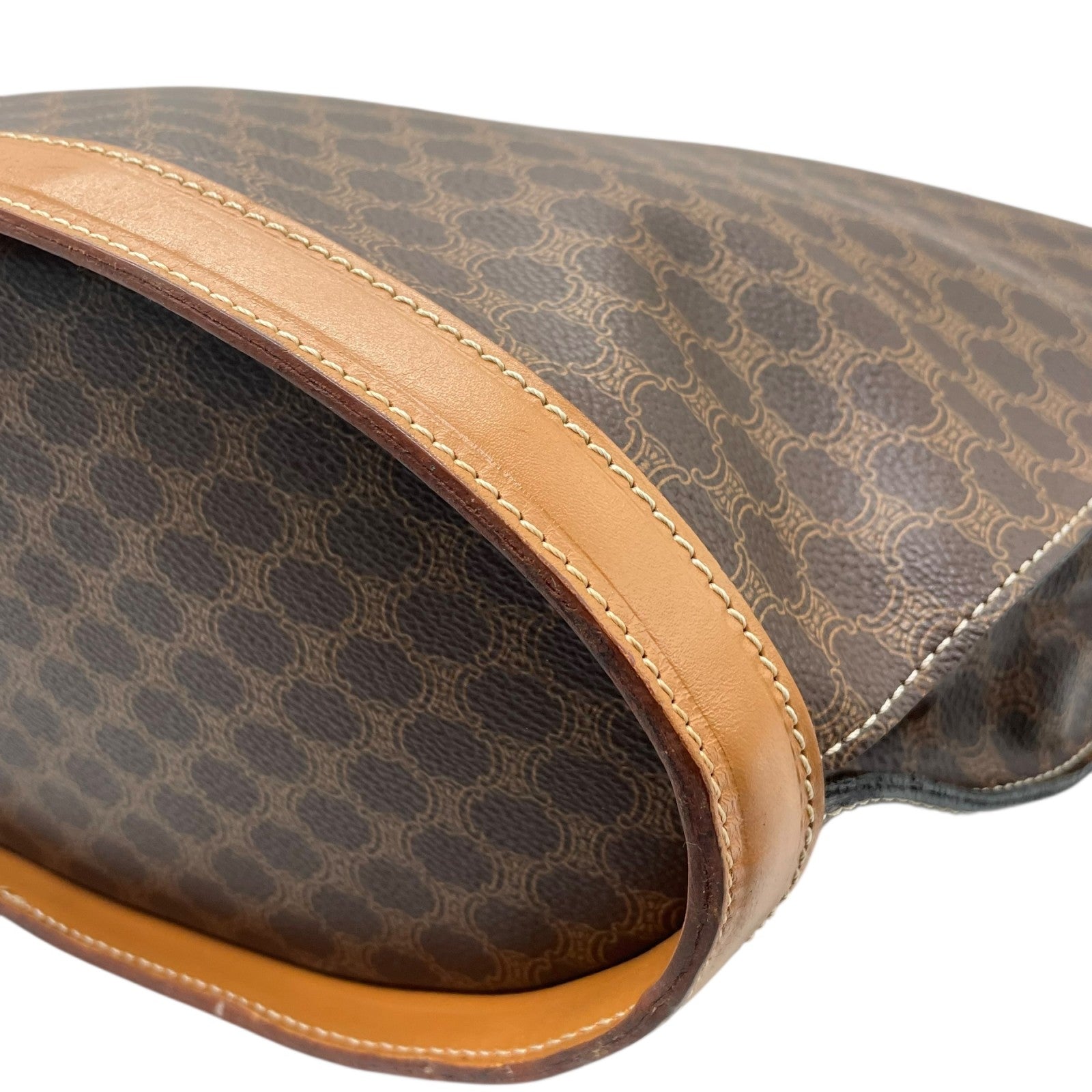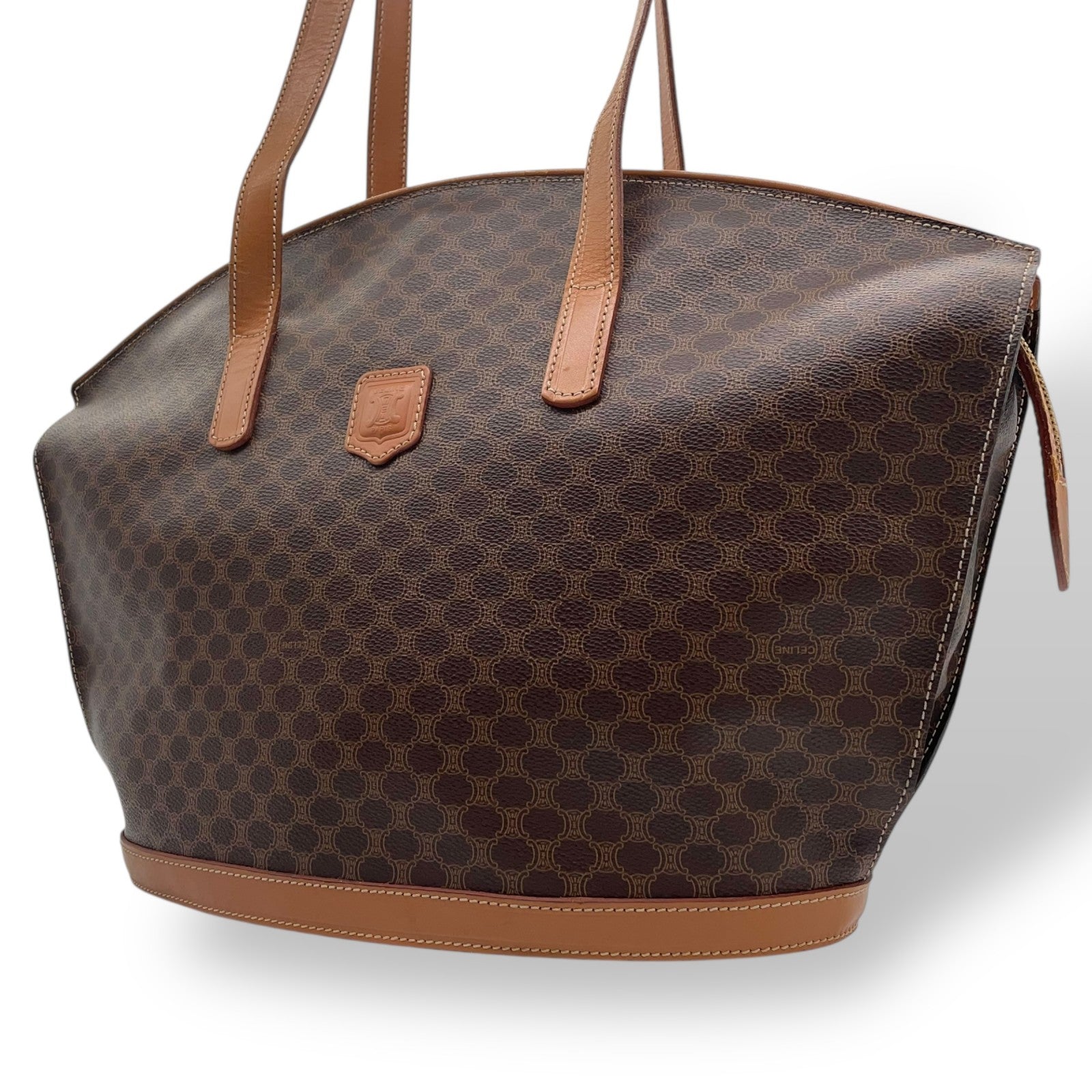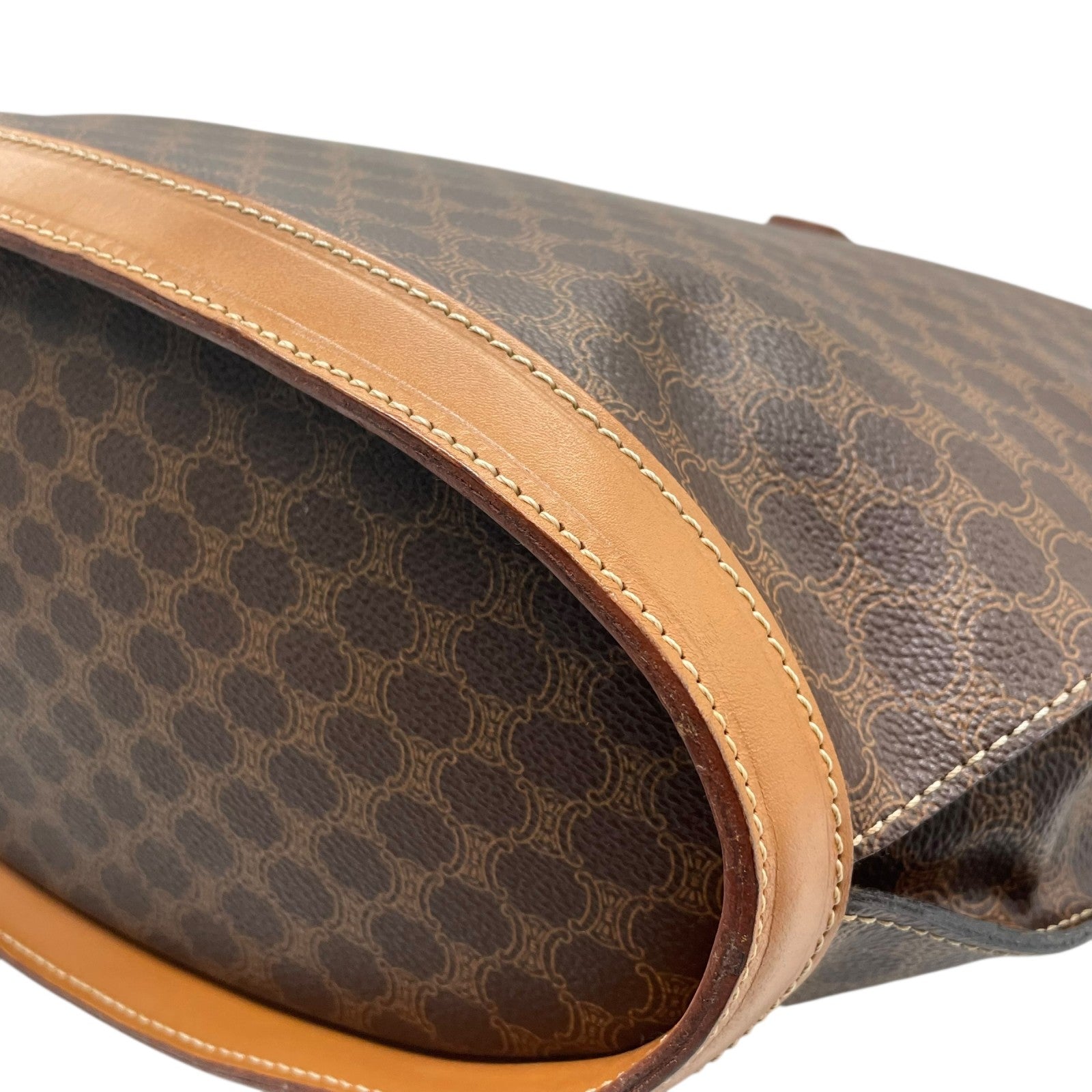 美品 CELINE セリーヌ マカダム ハンドバッグ トートバッグ PVC レザー 茶 ブラウン ゴールド金具 ワンショルダー 肩掛け可 ヴィンテージ オールドセリーヌ レディース B1