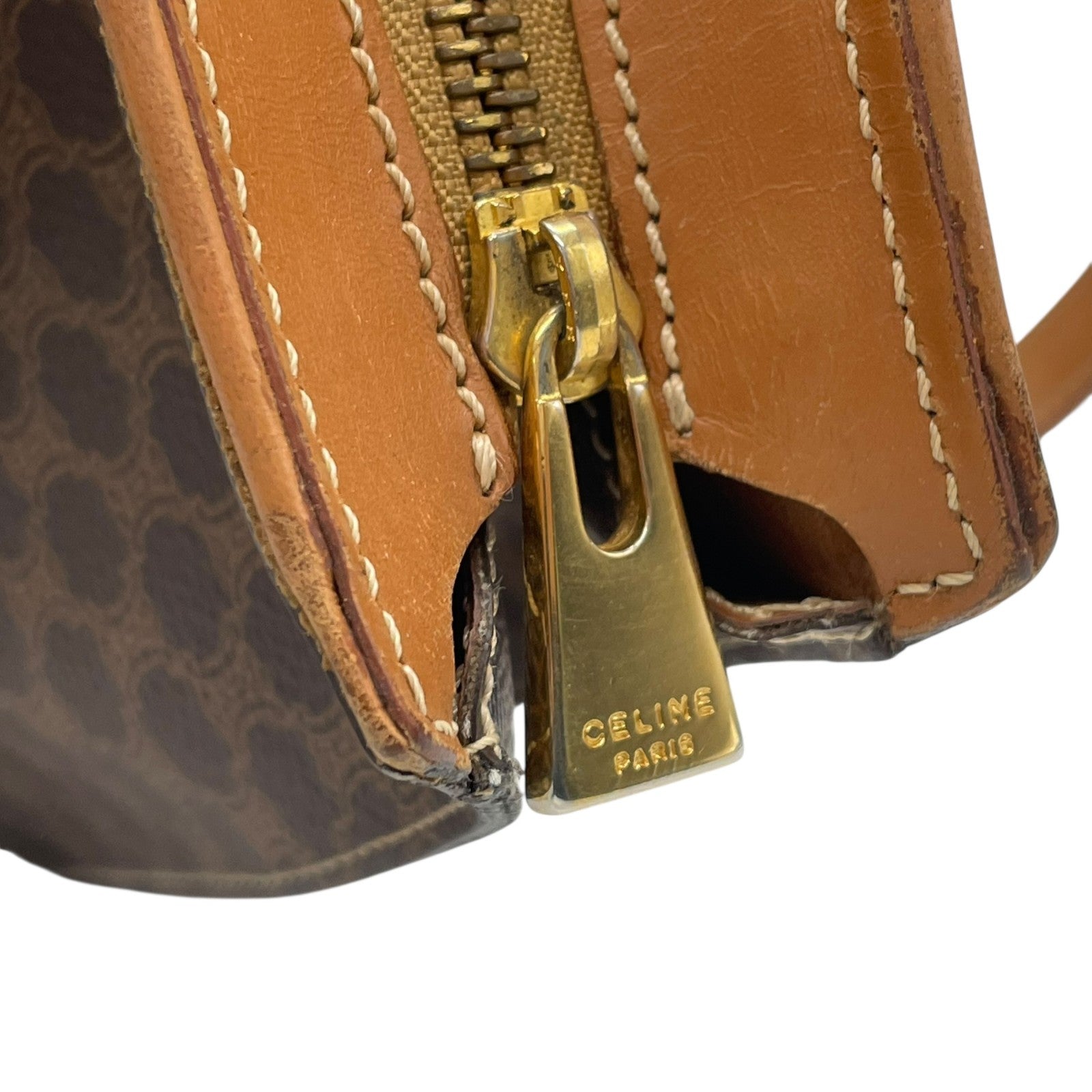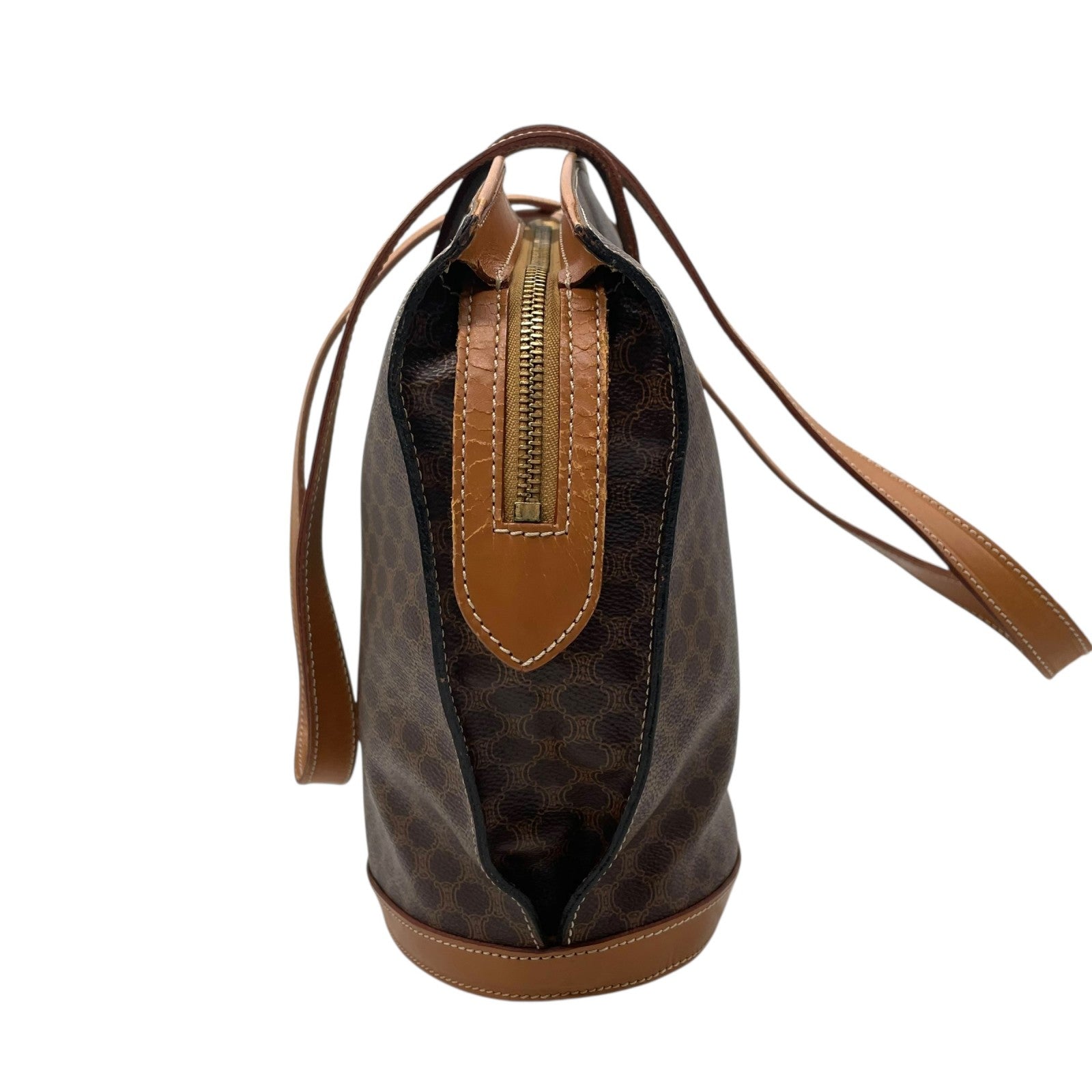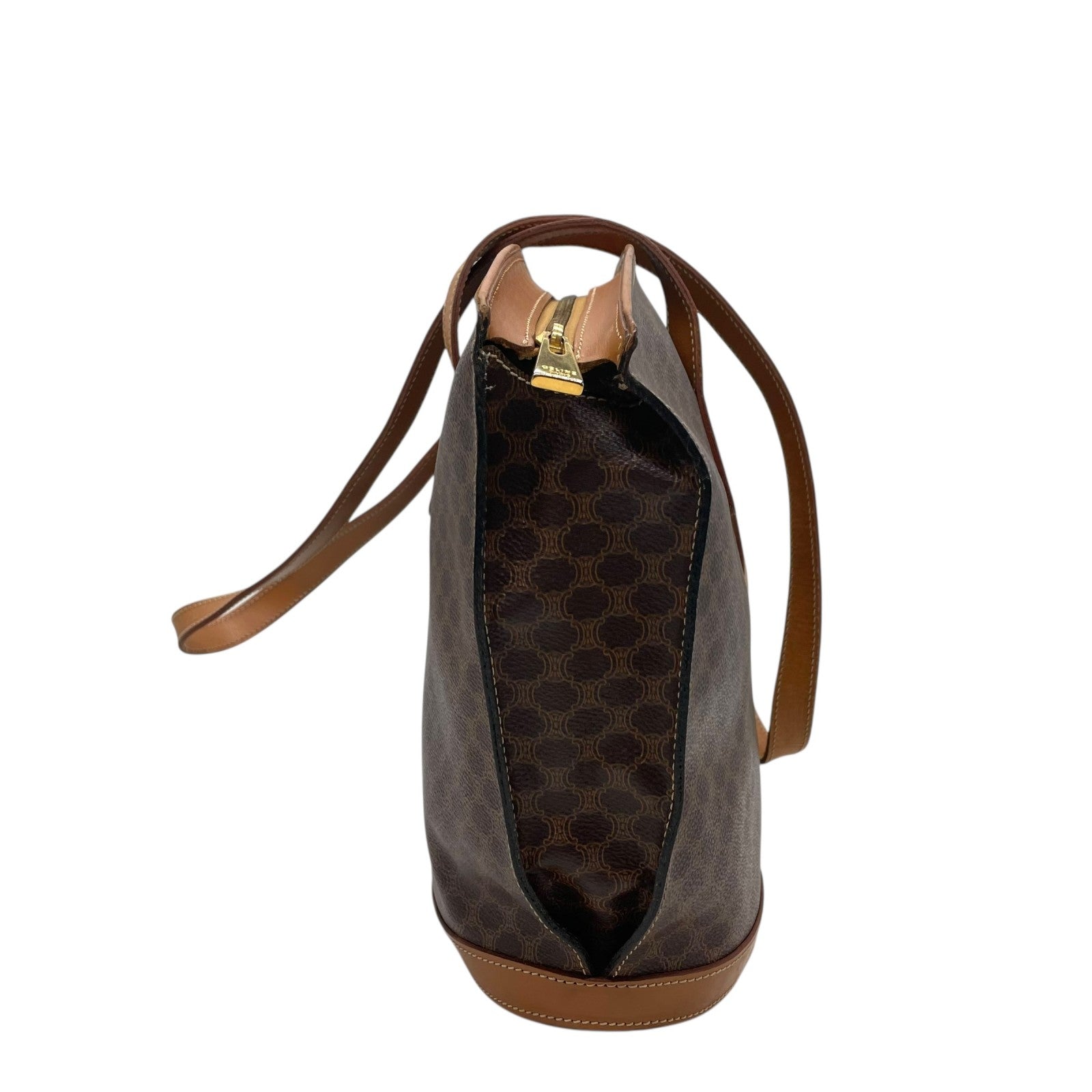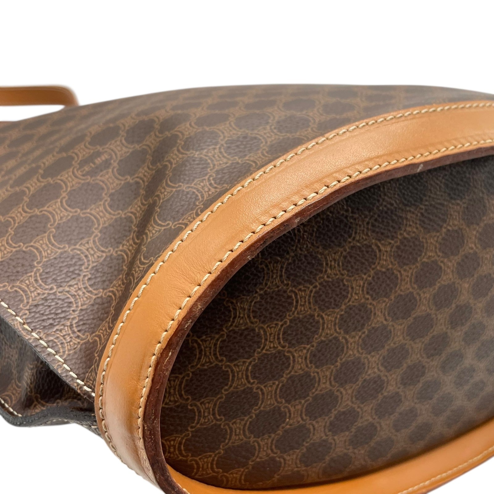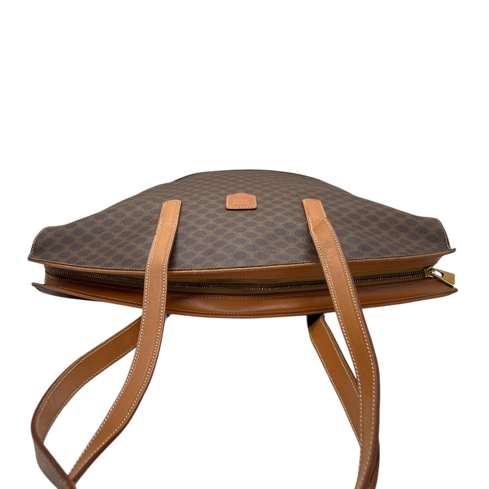 美品 CELINE セリーヌ マカダム ハンドバッグ トートバッグ PVC レザー 茶 ブラウン ゴールド金具 ワンショルダー 肩掛け可 ヴィンテージ オールドセリーヌ レディース B1
