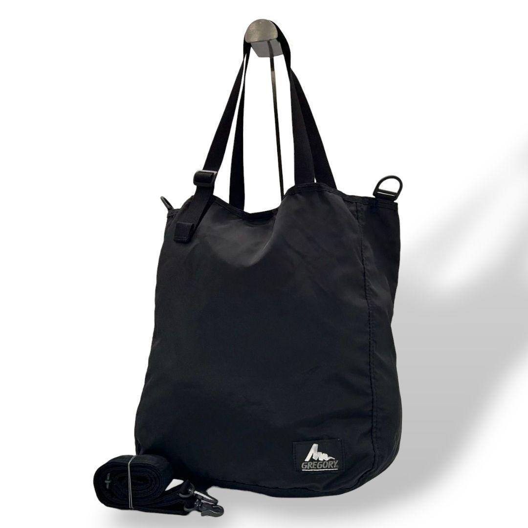 グレゴリー ショルダーバッグ 黒 ナイロン ロゴ 2way A4収納 大容量 s23 斜め掛け可 GREGORY ハンドバッグ トートバッグ ブラック ロゴタグ