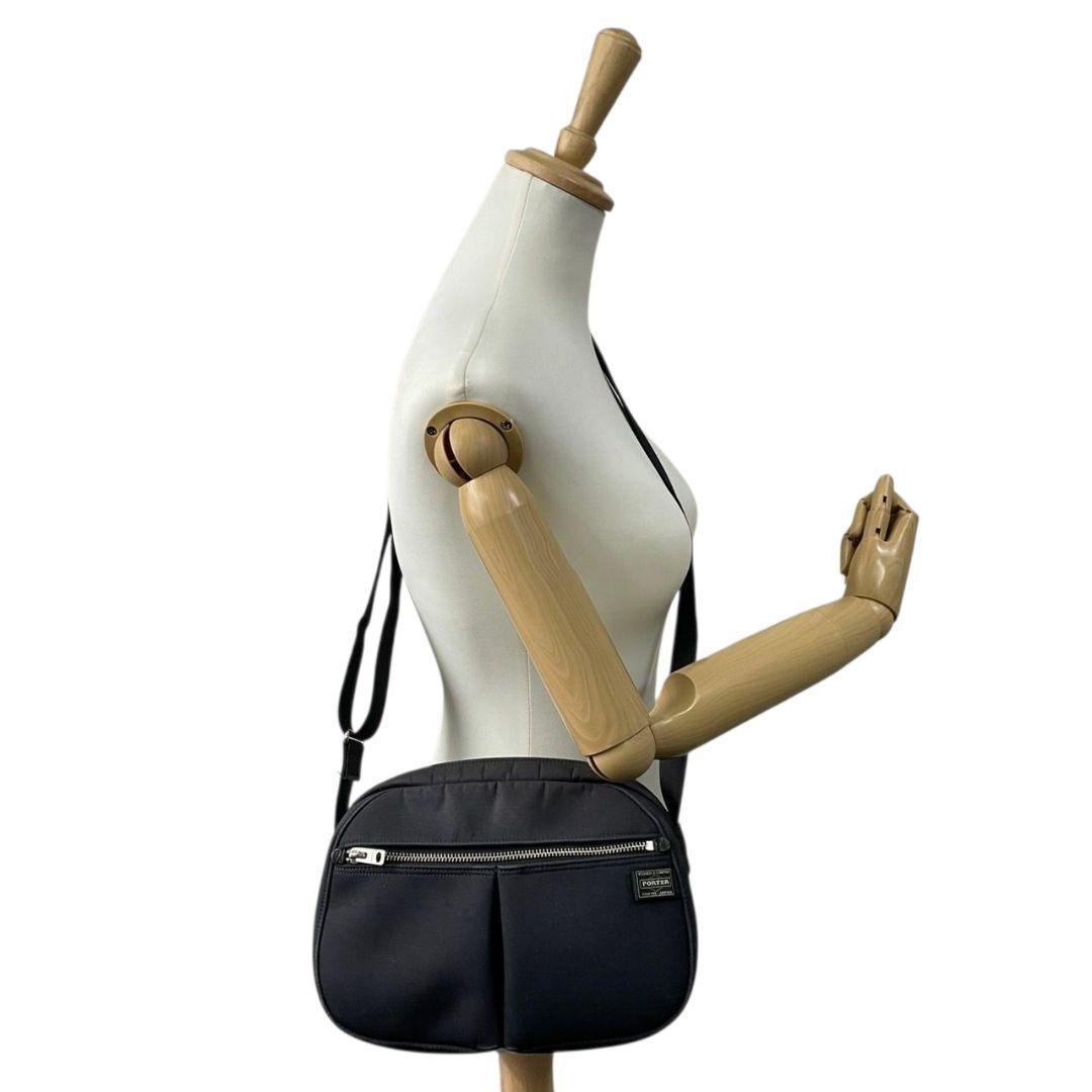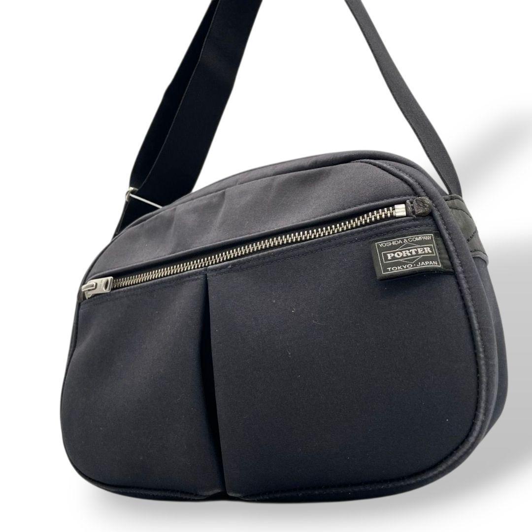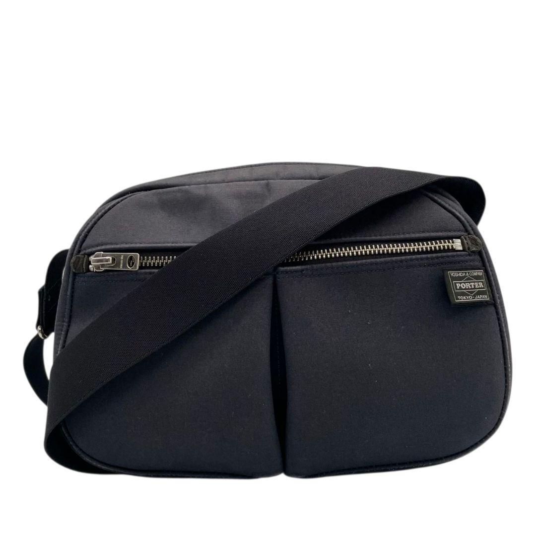 ポーター ショルダーバッグ 黒 ブラック ナイロン 斜め掛け可 ロゴパッチ シルバー金具 軽量 シンプル カジュアル PORTER s22