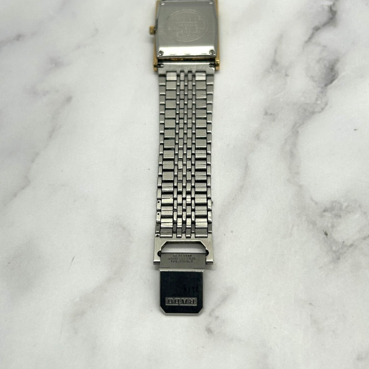 | Production features | [Beautiful condition/working] This product is the elegant FLORENCE watch from RADO. It is a classic and elegant dress watch featuring a sophisticated rectangular case. Feature Brand: RADO Model: FLORENCE Model number: 135.3368.2 Movement: Quartz Case shape: Rectangular Case color: Gold Dial Color: Gold Material: Stainless steel / Sapphire crystal Specifications: 4P diamond / Analog display / Combi bracelet Condition: Working / Cleaned The gold dial is set with 4P diamonds, creating a luxurious look. The gold and silver combination strap matches any outfit and adds a touch of glamour to your wrist. It has been cleaned and is ready to use. |