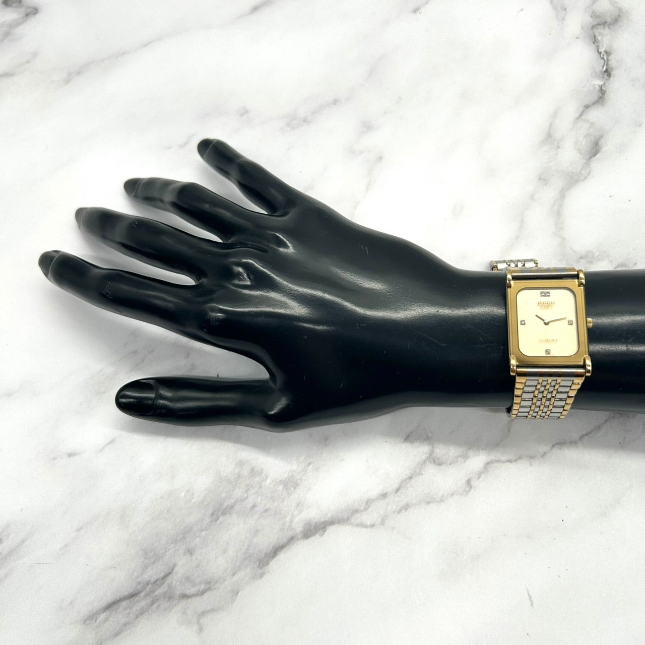 [Excellent Condition/Working] RADO Florence 135.3368.2 Wristwatch with 4 Diamonds, Gold Dial, Quartz, Rectangular, Two-Tone, Unisex Dress Watch, Elegant, Classic, Vintage, Cleaned i8