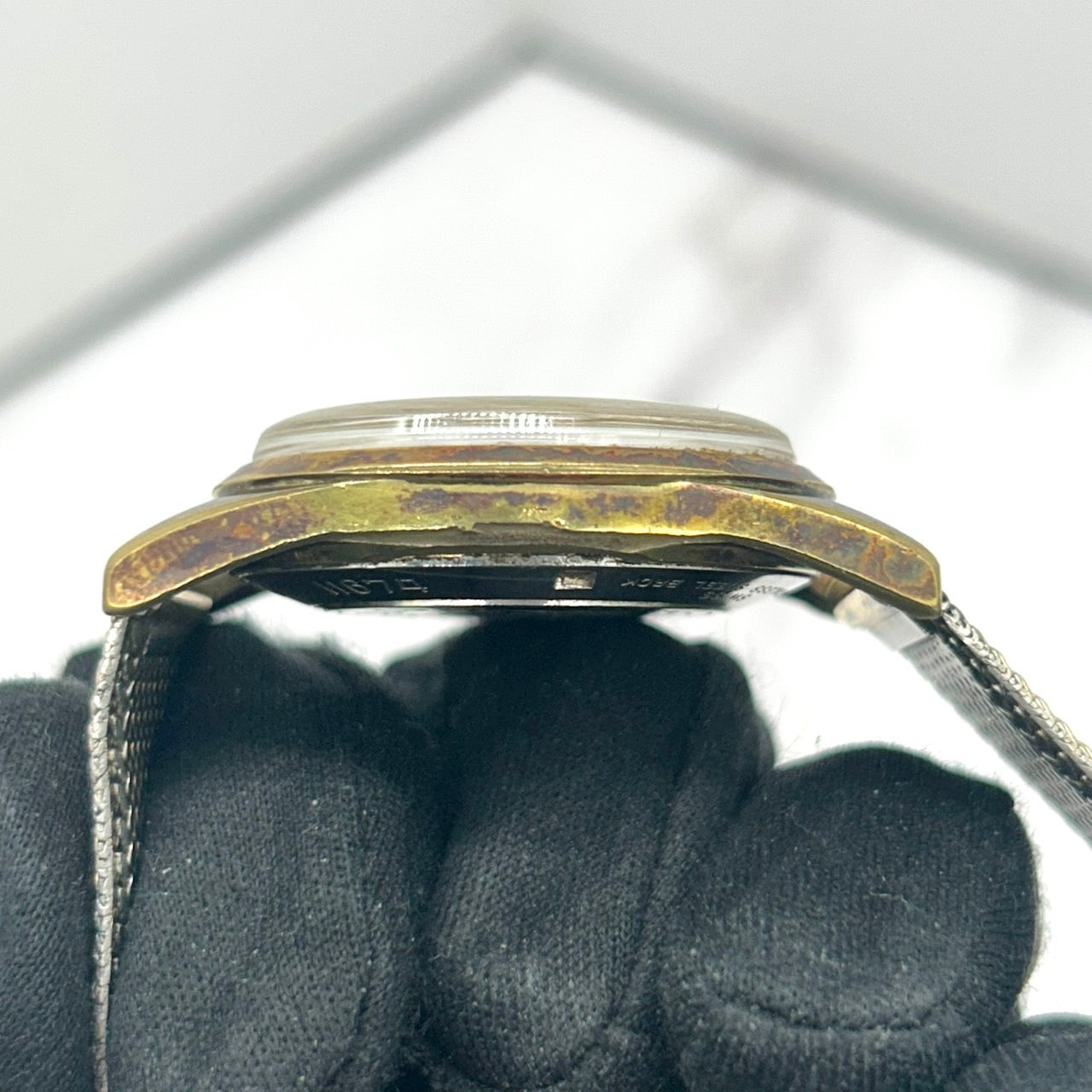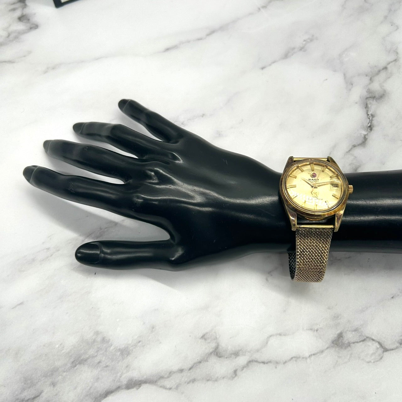 | Production features | [Working item] This product is a vintage mechanical automatic wristwatch from RADO's "Golden Horse" series, a masterpiece that symbolizes the company's history. Feature Brand: RADO Model: Golden Horse Model number: 11674 Movement: Mechanical Automatic (30 JEWELS) Case Shape: Round Case color: Gold Dial Color: Gold Material: Stainless steel Specifications: Date display / Analog display / SWISS MADE Condition: Working / Cleaned This high-end model is equipped with a 30-jewel movement, and the gold-colored dial and case give it a heavy, antique feel. It also has a date function, making it a practical item. The unique texture and style that comes with age is an irresistible attraction for vintage watch fans. |