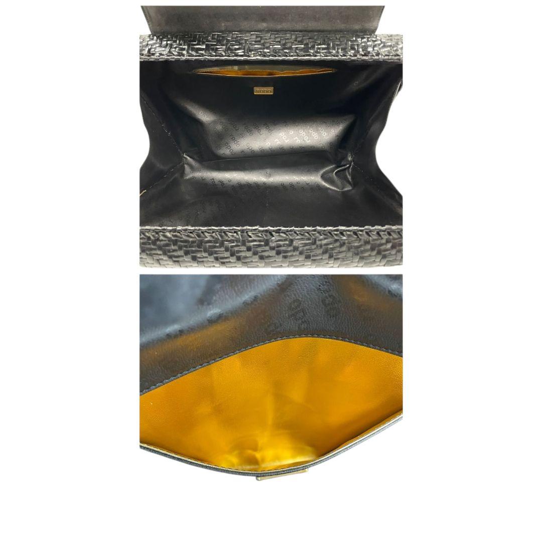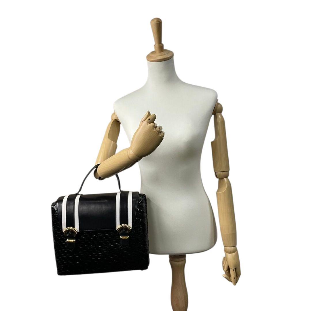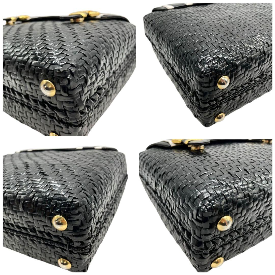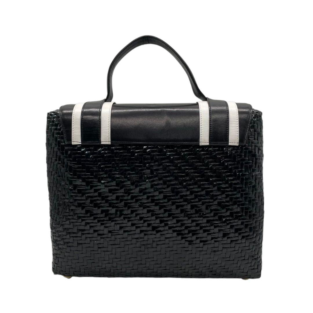 ロド ハンドバッグ 黒 白 編み込み カゴバッグ バイカラー トートバッグ レザー 本革 自立可 ゴールド金具 ロゴプレート RODO