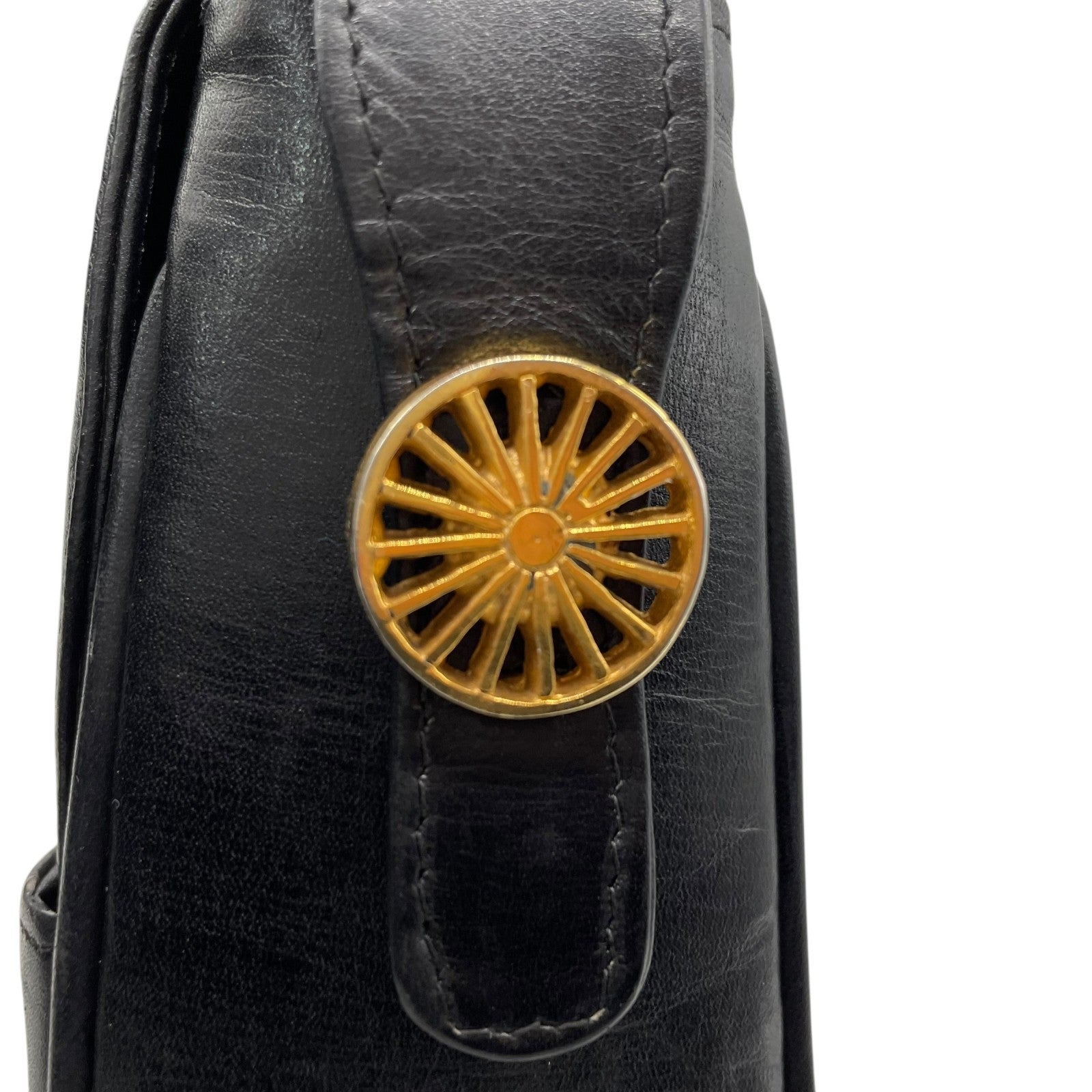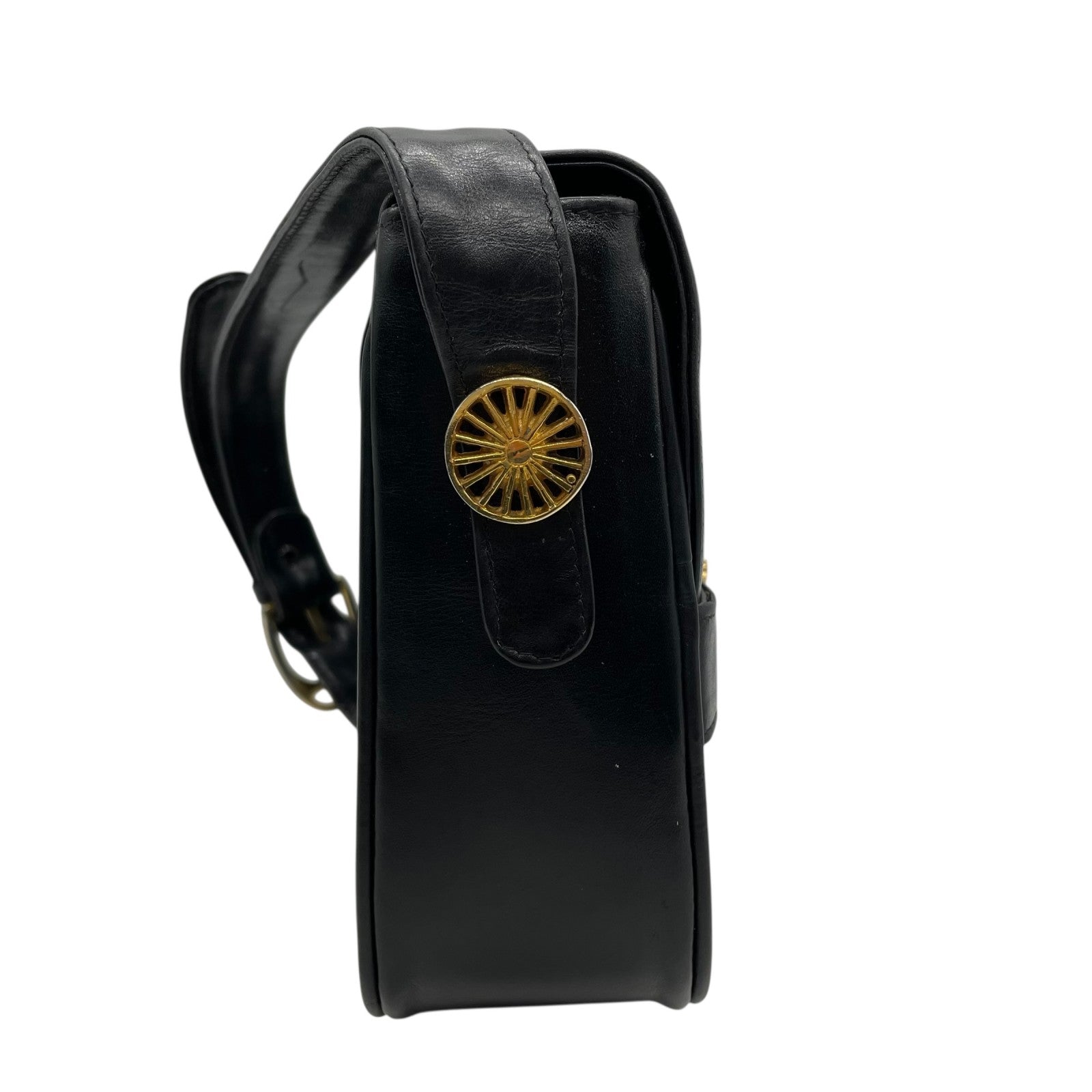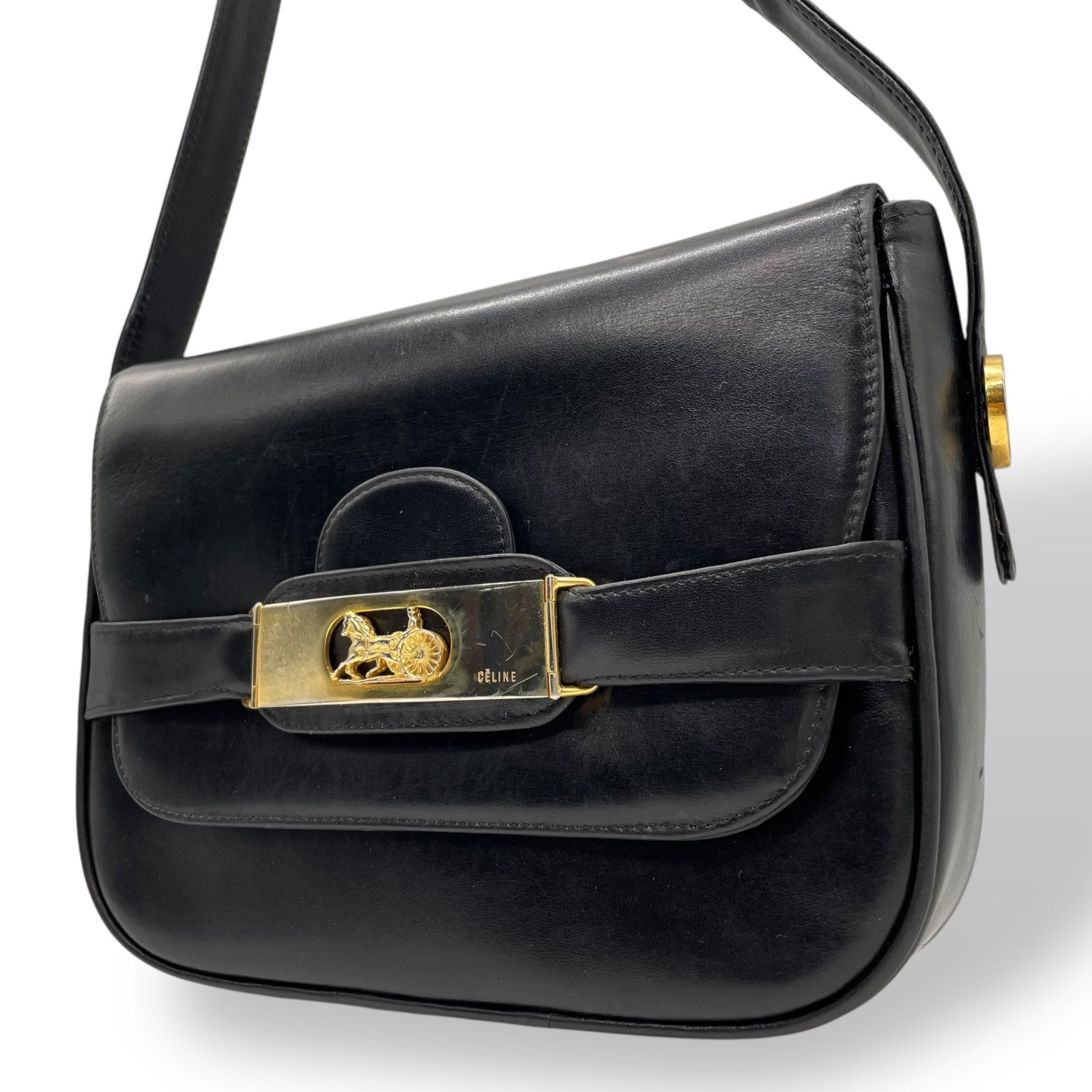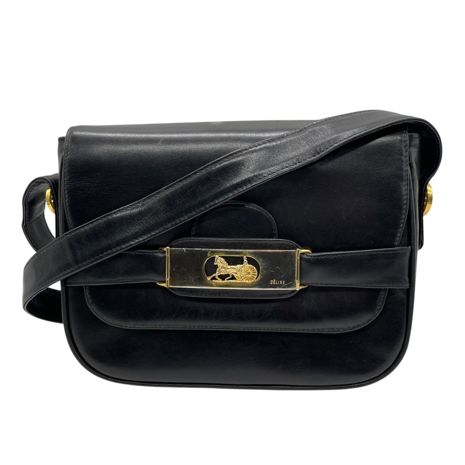Authentic CELINE Shoulder Bag Black Leather Horse Carriage Gold Hardware Vintage Women's Crossbody