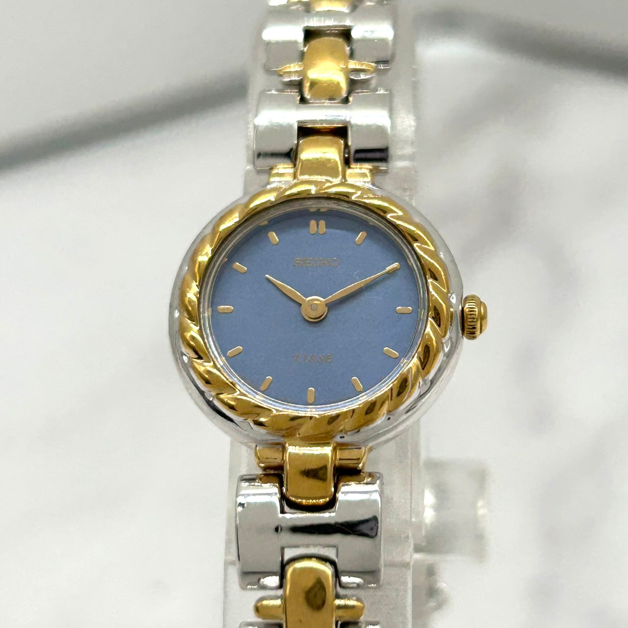 【美品/電池交換済】SEIKO TISSE セイコー ティセ レディース 腕時計 1F20-1A80 クオーツ ブルー文字盤 ゴールド シルバー コンビカラー ビンテージ クラシック エレガント ドレスウォッチ アナログ クリーニング済み i2