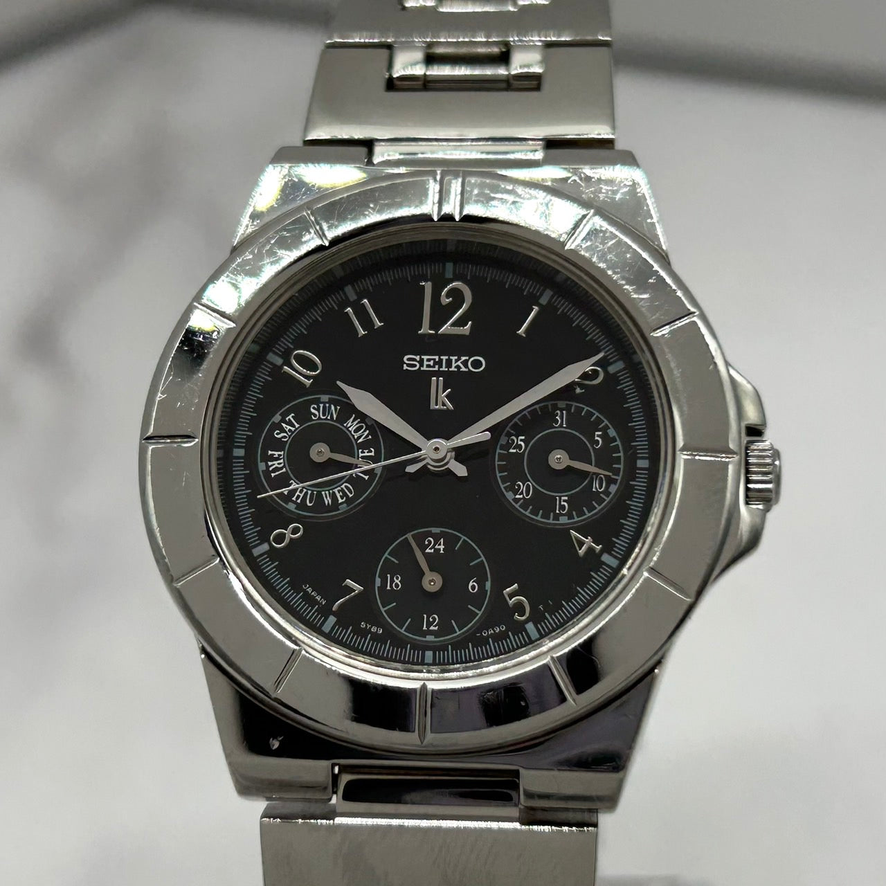 【電池交換済/美品】セイコー ルキア 腕時計 5Y89-0B30 クオーツ 多機能 ネイビー文字盤 アナログ デイデイト 24時間計 メンズ レディース ユニセックス ドレスウォッチ ビジネス カジュアル クリーニング済 SEIKO LUKIA i2