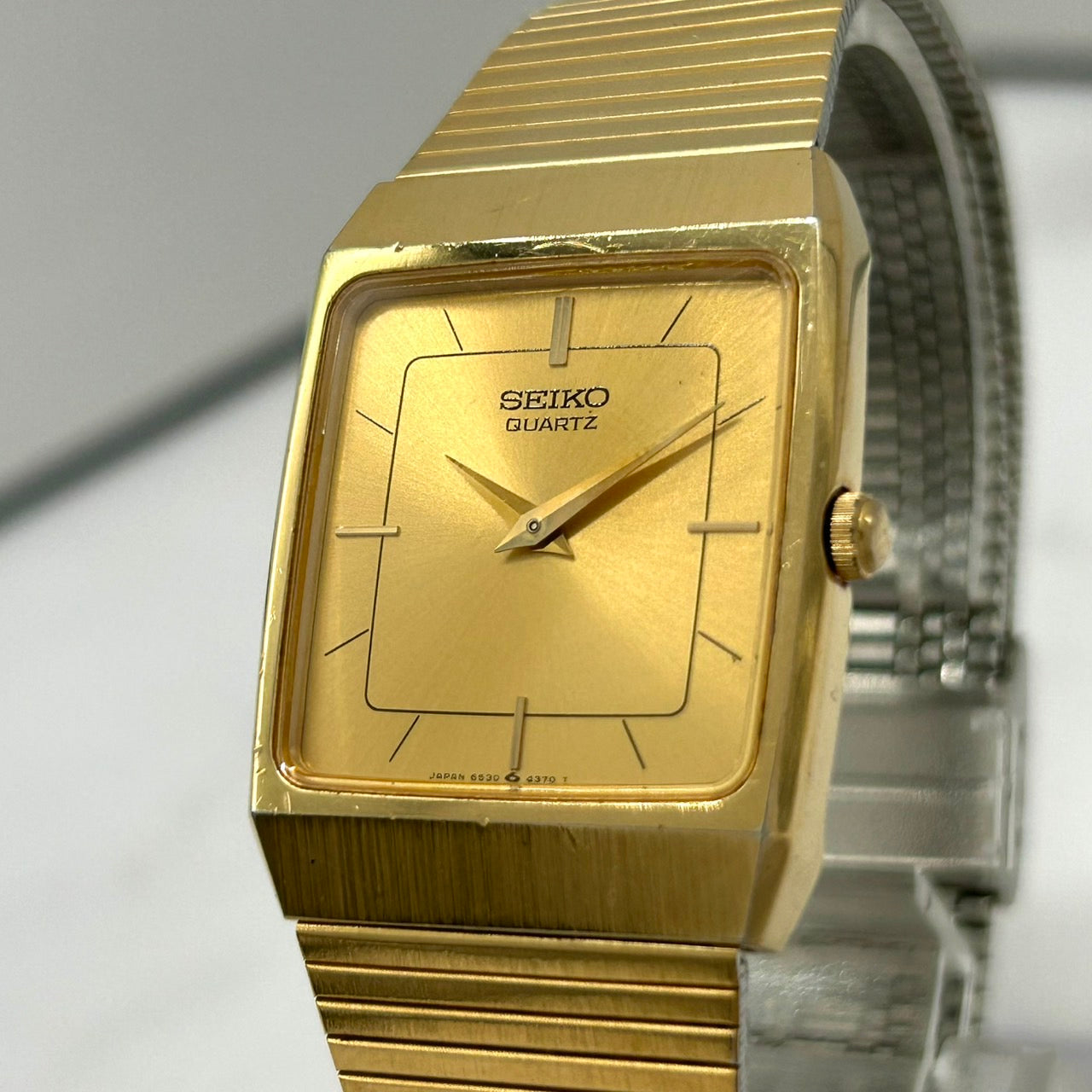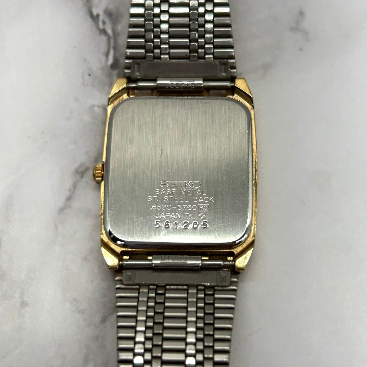 【稼働品】seiko セイコー 腕時計 6530-5760 ゴールド スクエア クオーツ ビンテージ メンズ レディース ユニセックス アナログ ドレスウォッチ エレガント 薄型 クラシック レトロ 金色 クリーニング済み i2