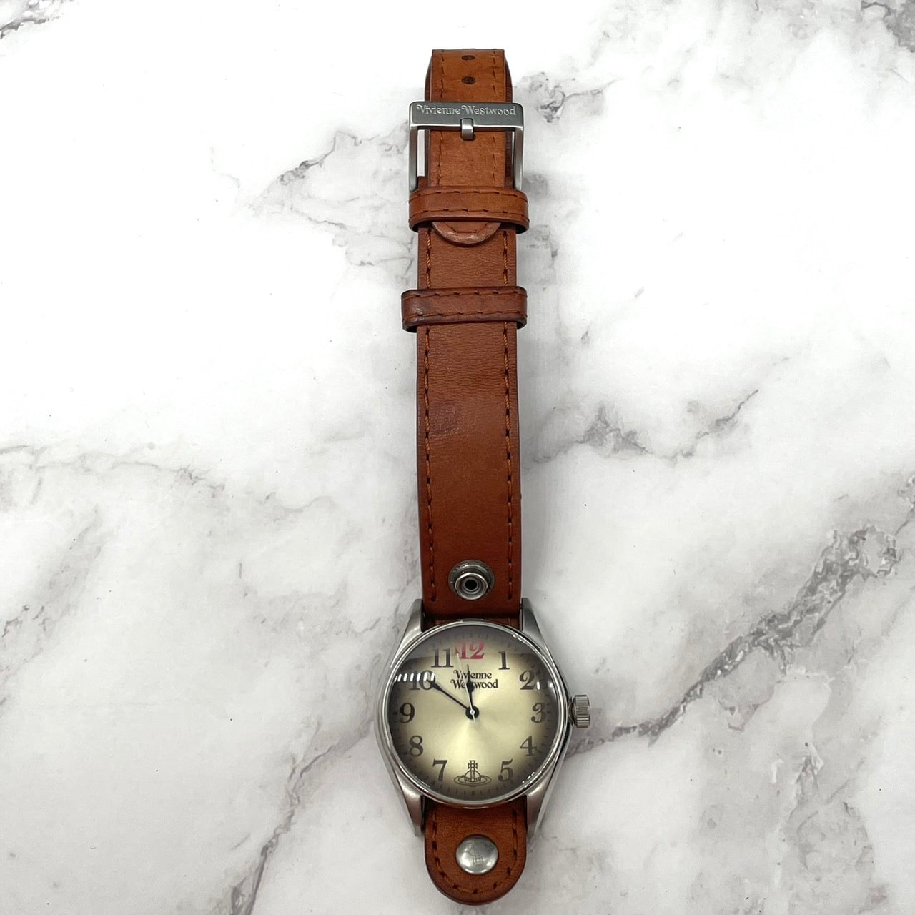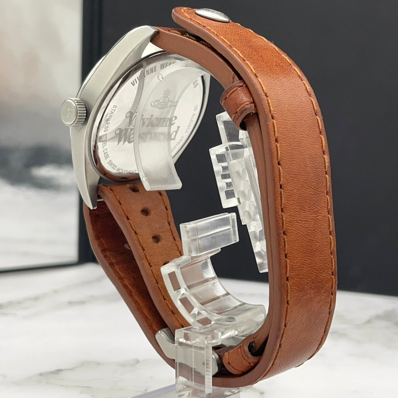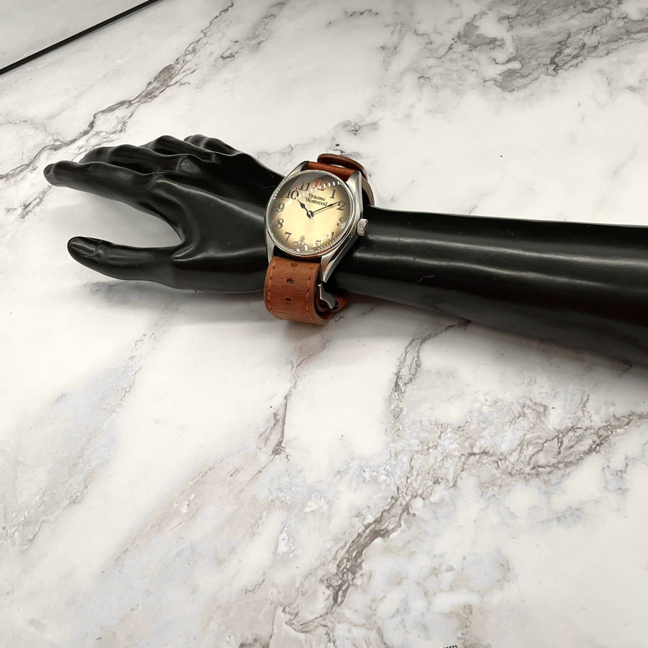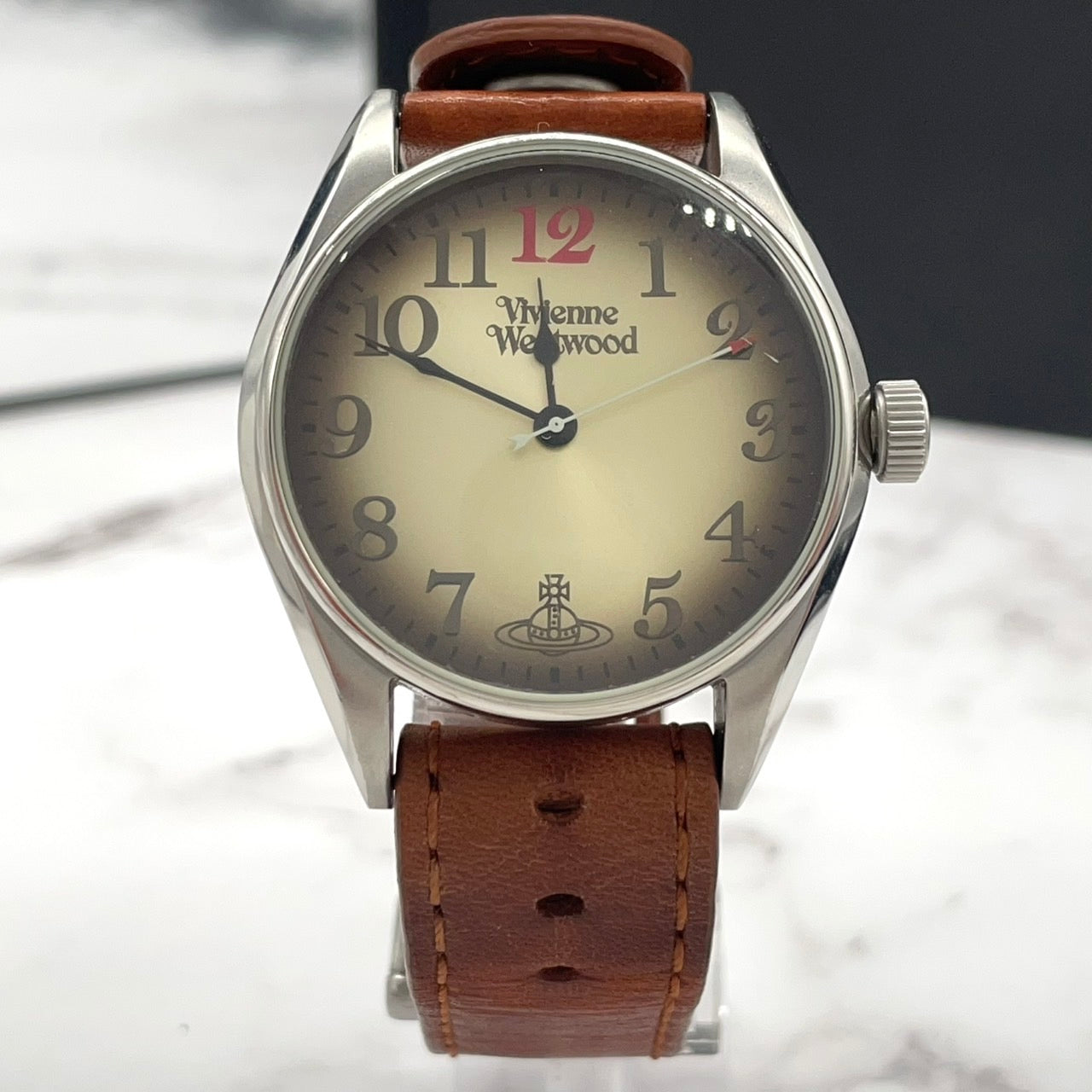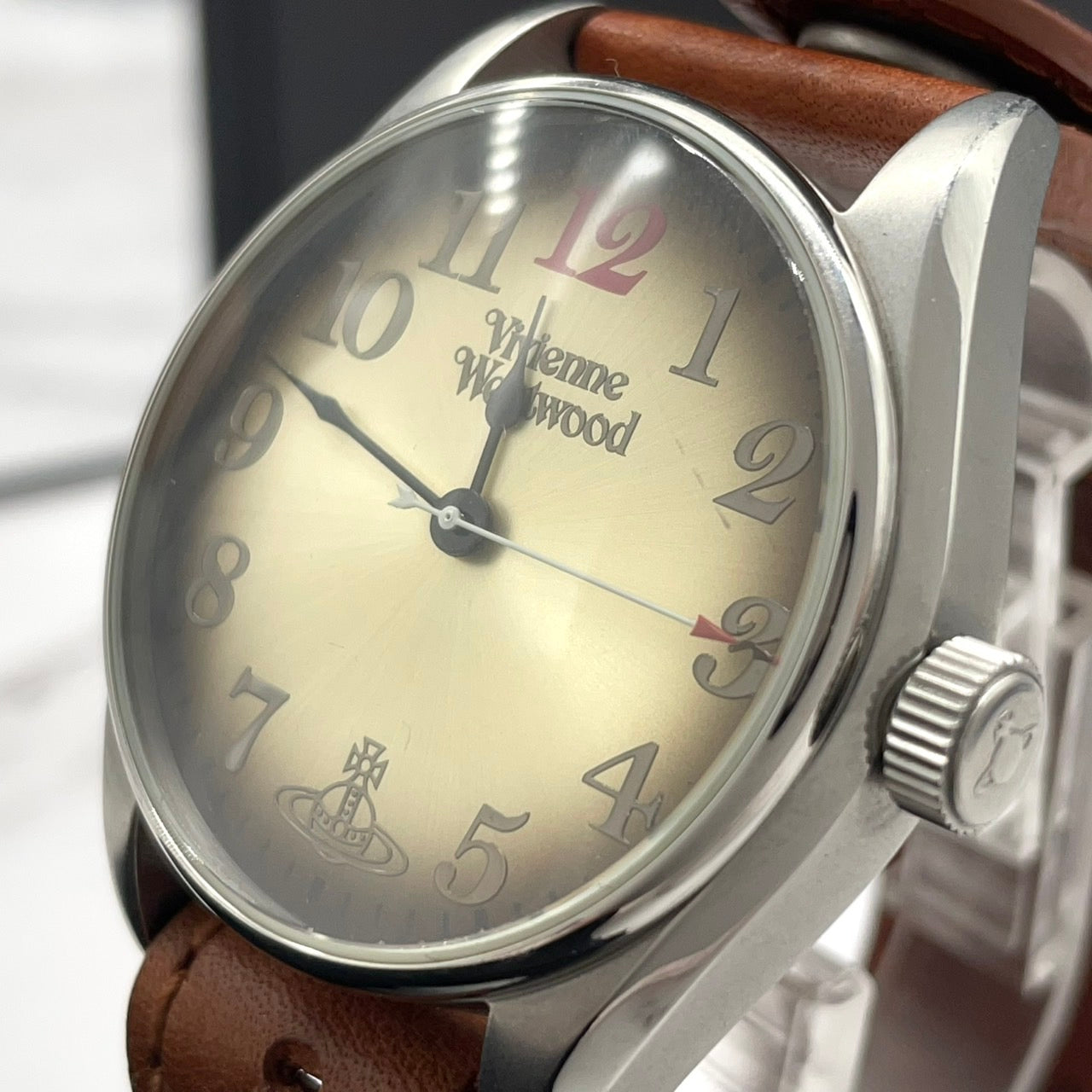 電池交換済/稼働ヴィヴィアンウエストウッド 腕時計 メンズ ゴールド文字盤 レザーベルト ブラウン オーブ アナログ クオーツ クラシック ヴィンテージ Vivienne Westwood VV012TN ヘリテージ G3