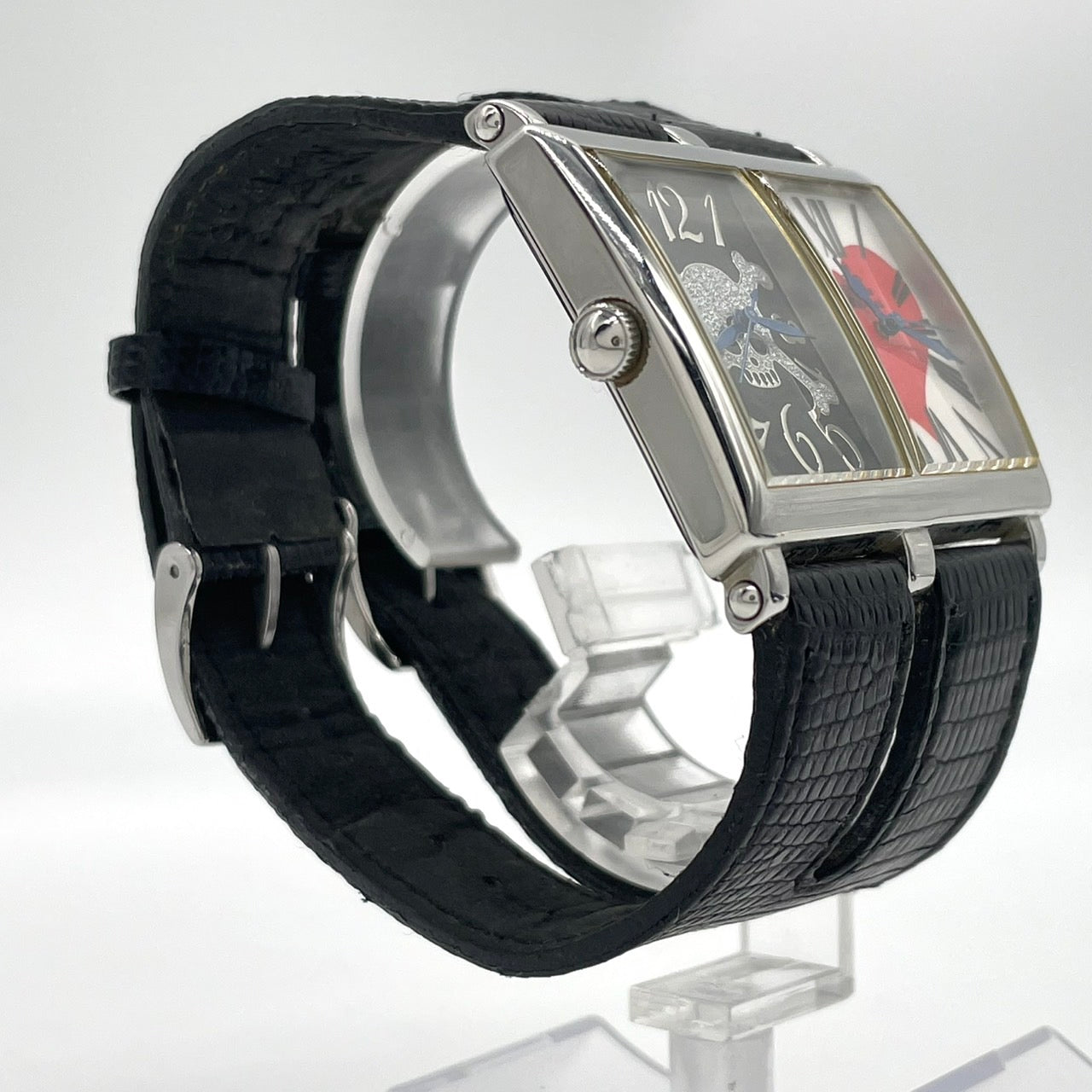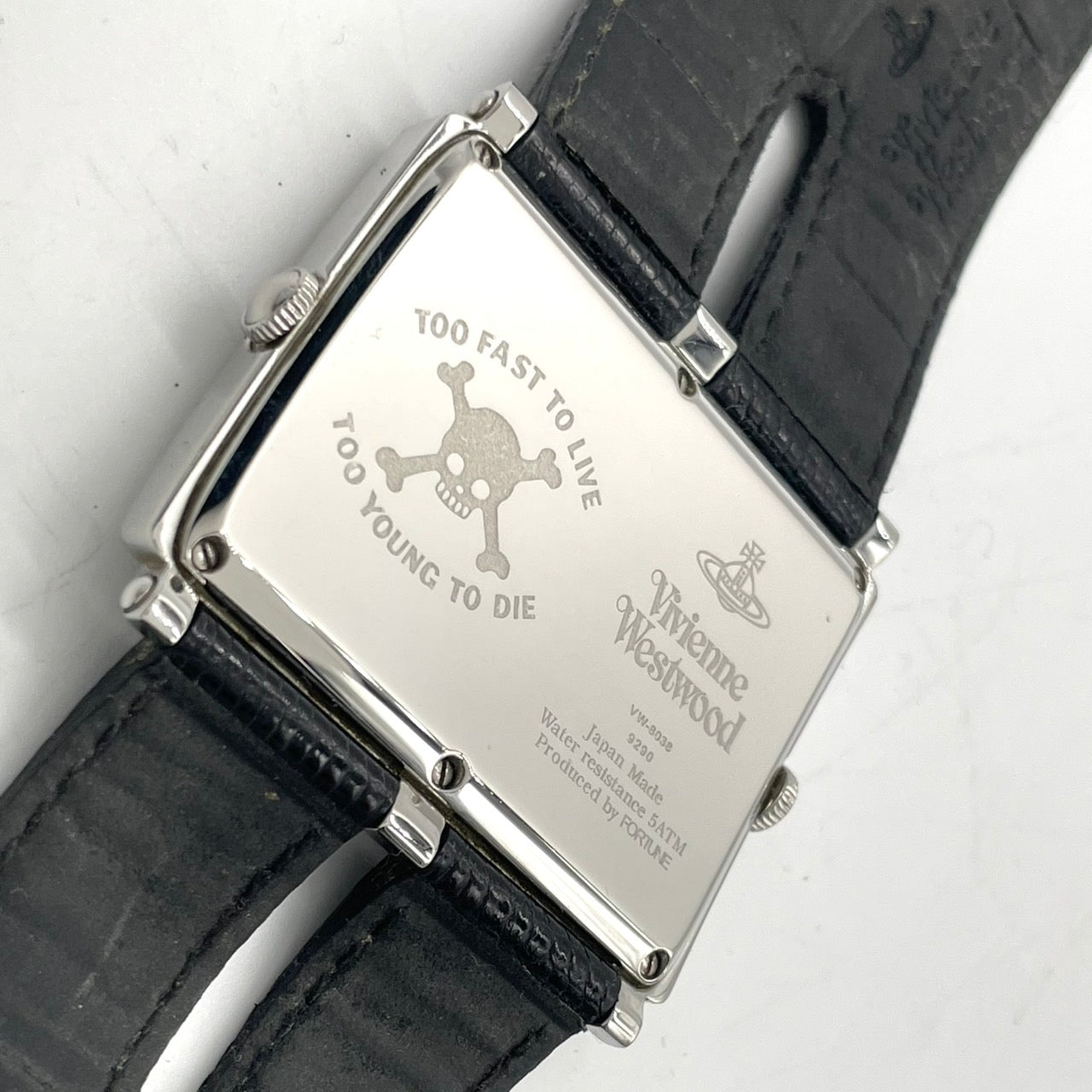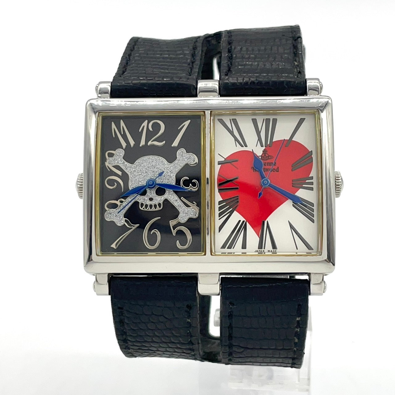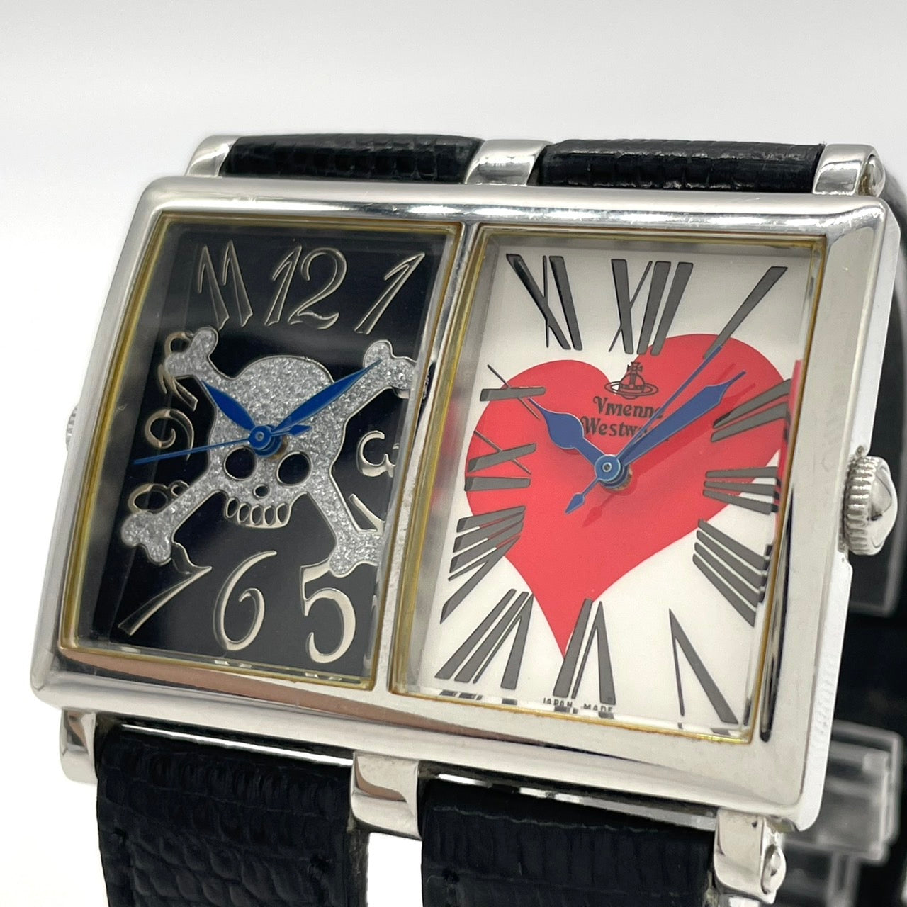 【電池交換済/稼働品】ヴィヴィアンウエストウッド 腕時計 ダブルフェイス デュアルタイム スカル&ハート VW-9038 スクエア メンズ レディース TOO FAST TO LIVE アナログ クオーツ パンク ロックデザイン Vivienne Westwood G4