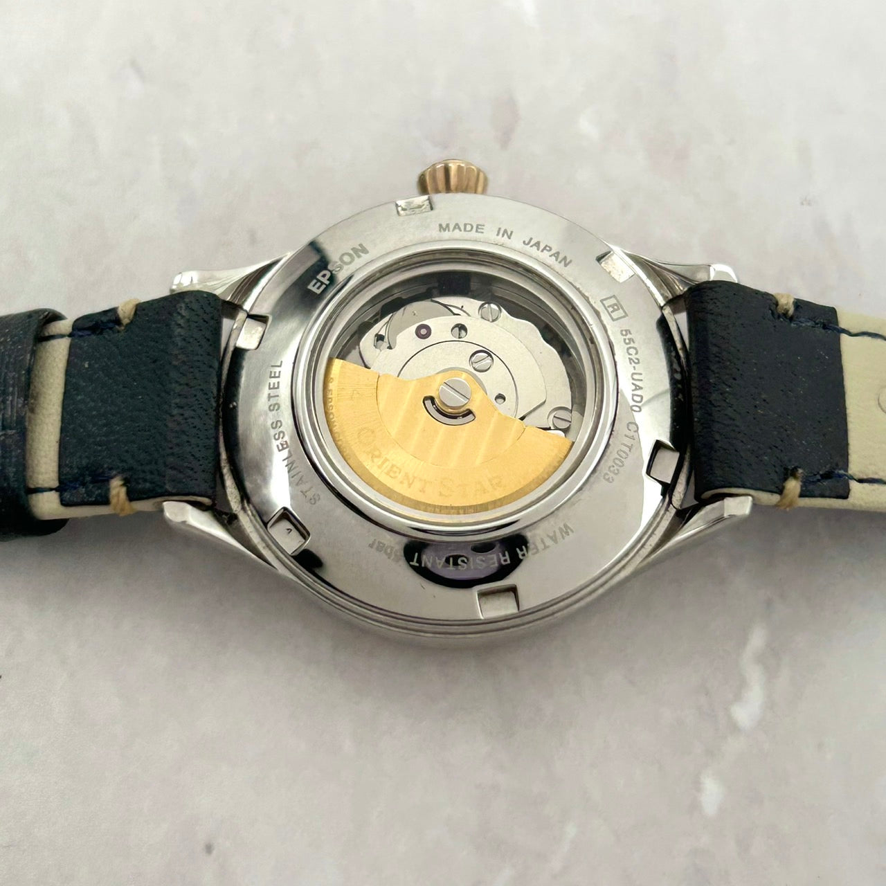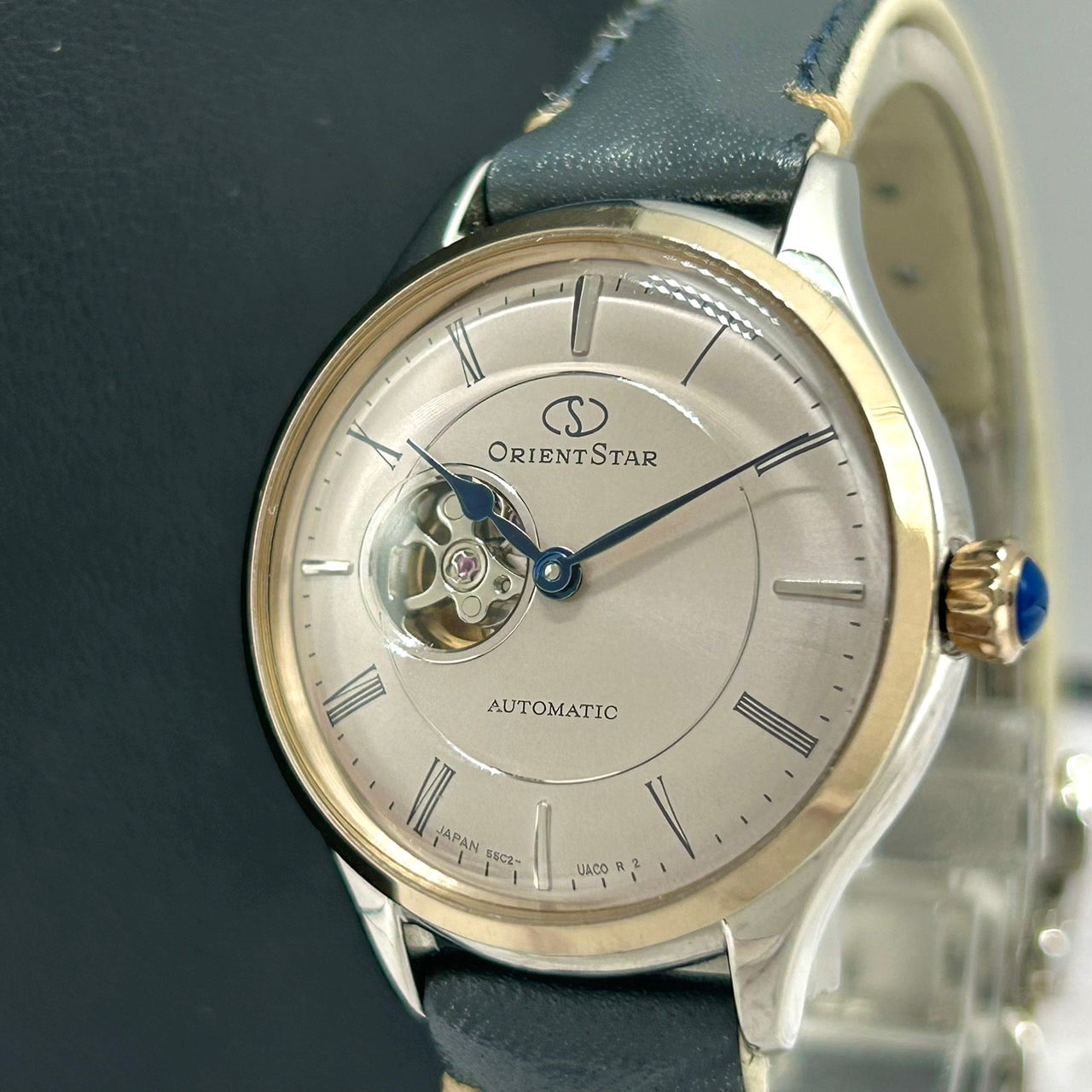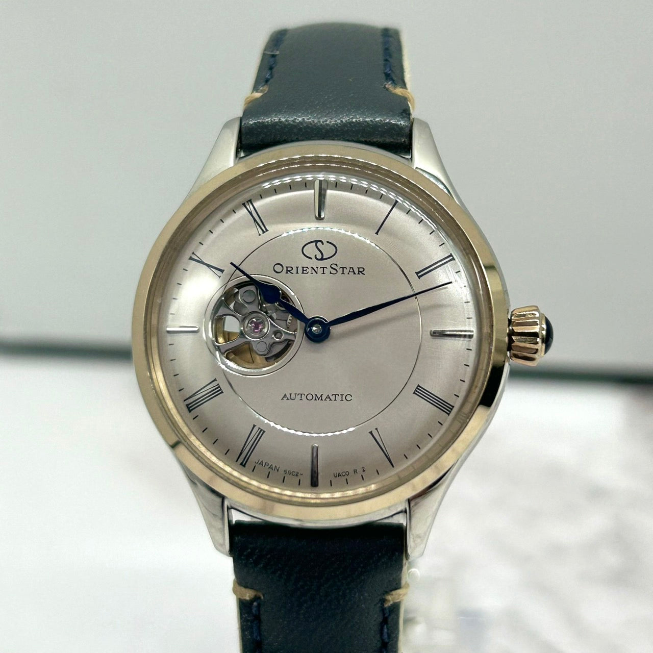 【未使用級/稼働品】オリエントスター クラシック 腕時計 レディース 自動巻き オープンハート セミスケルトン 裏スケ 55C2-UAD0 レザーベルト アナログ エレガント ドレスウォッチ コンビカラー シルバー ゴールド クリーニング済み G7