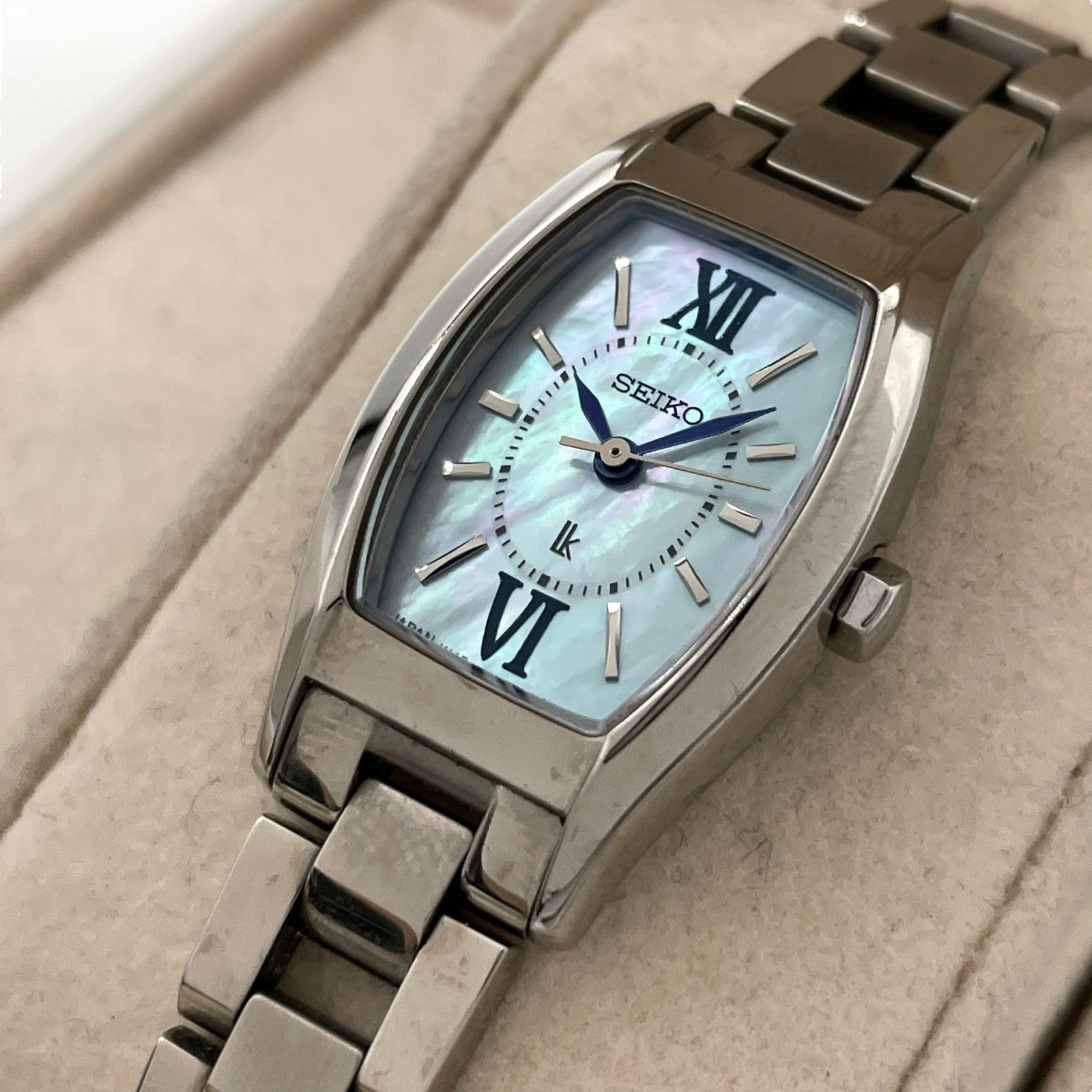 【美品/稼働品】セイコー ルキア 人気モデル SSVR131 腕時計 レディース ソーラー トノー型 シェル文字盤 MOP アナログ ローマン エレガント ドレスウォッチ ビジネス オフィス フォーマル クリーニング済 G