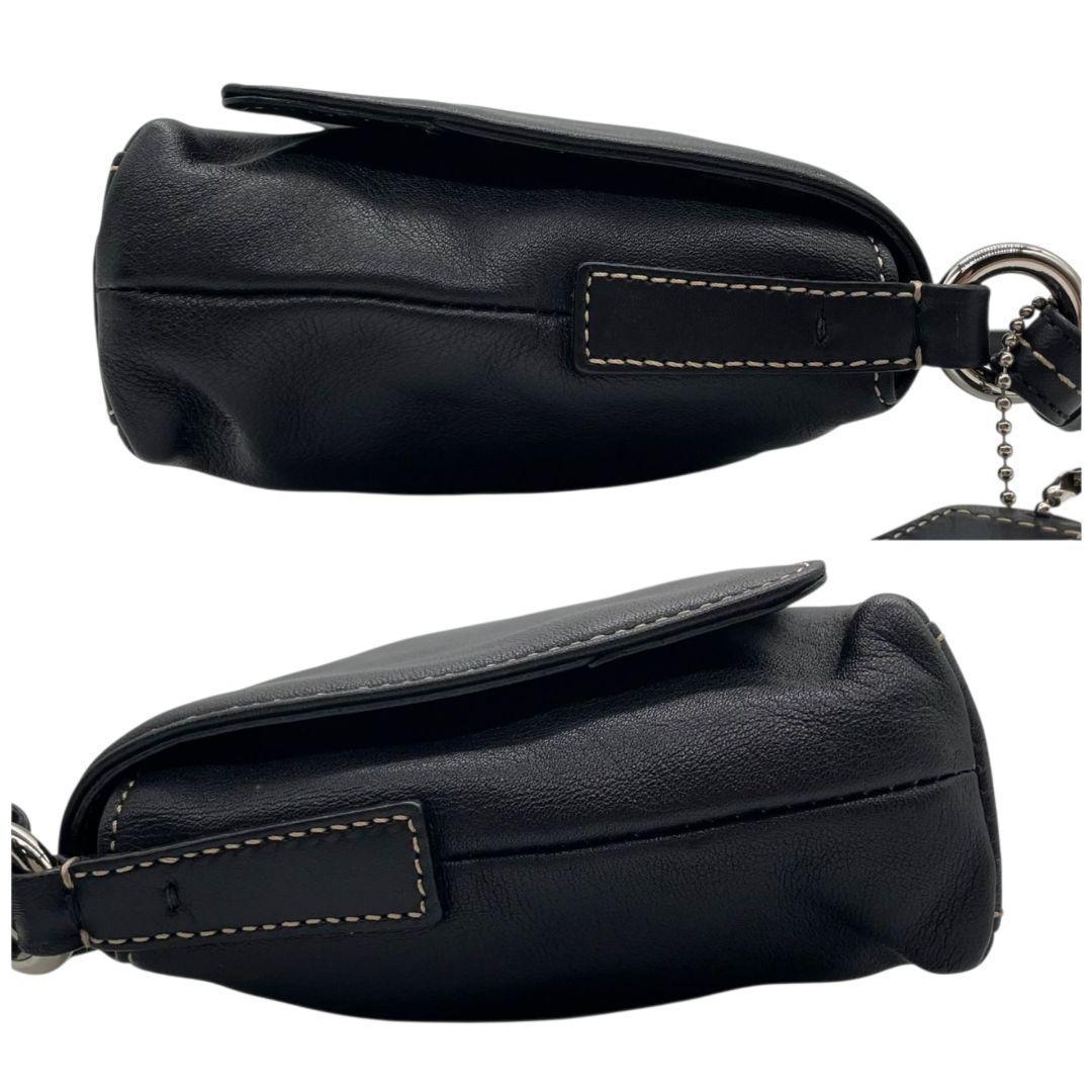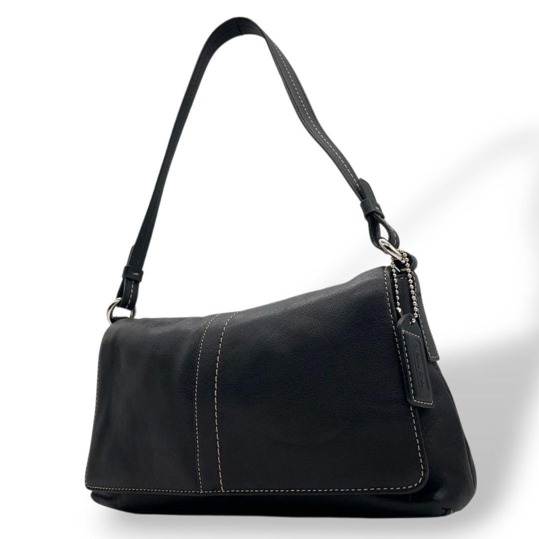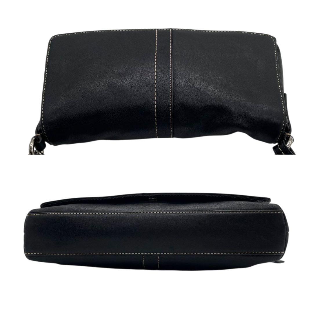 美品 コーチ ショルダーバッグ 黒 フラップ レザー 本革 s33 9722 肩掛け可 ブラック トートバッグ ロゴチャーム シルバー金具 COACH ハンドバッグ エレガント シンプル