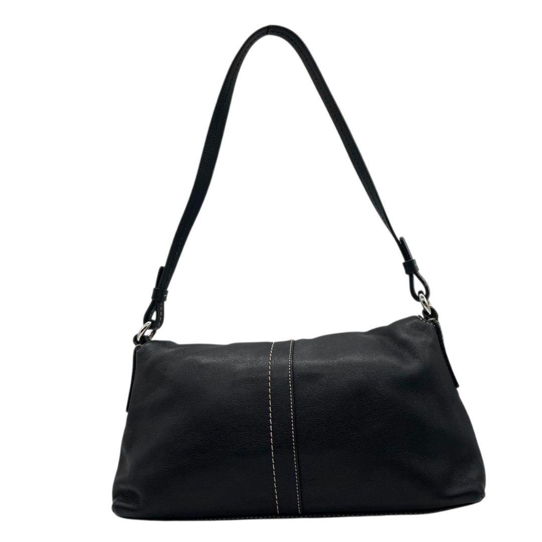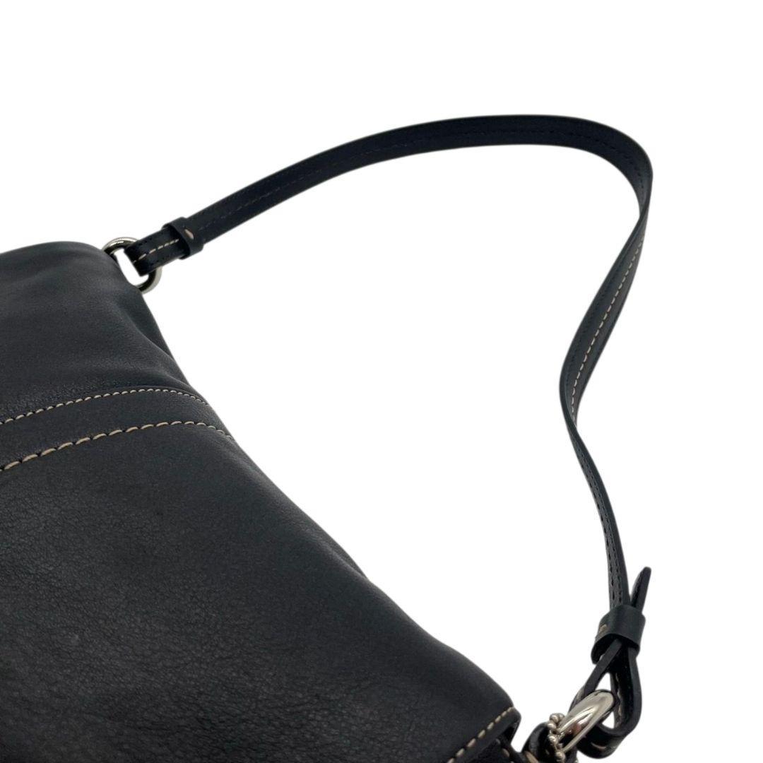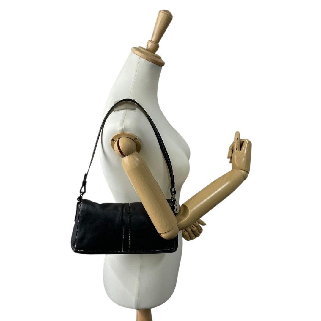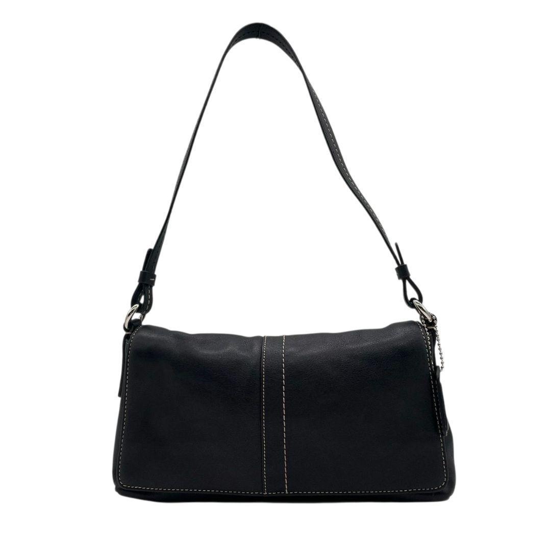 美品 コーチ ショルダーバッグ 黒 フラップ レザー 本革 s33 9722 肩掛け可 ブラック トートバッグ ロゴチャーム シルバー金具 COACH ハンドバッグ エレガント シンプル